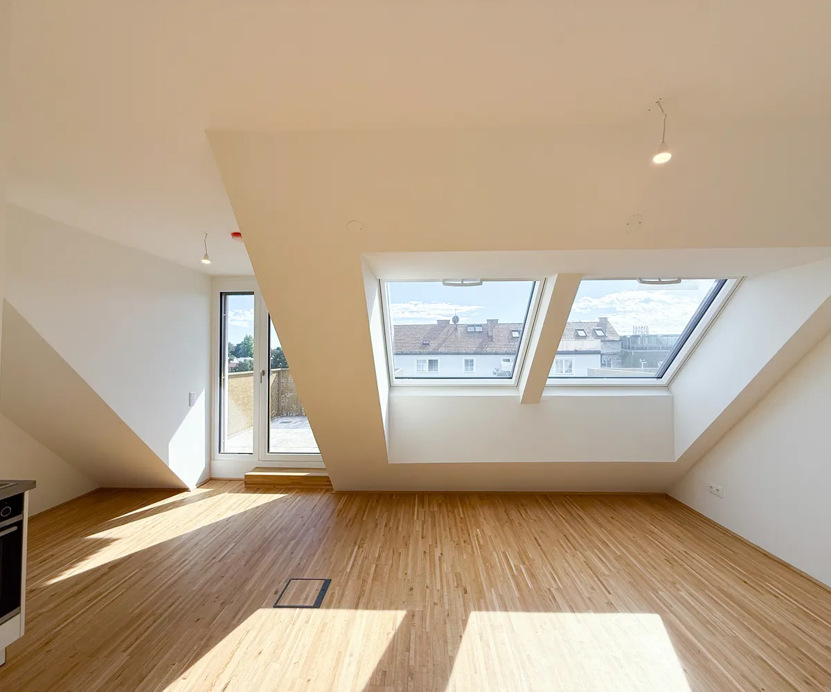 Diese moderne 2-Zimmer-Wohnung befindet sich im 2. Dachgeschoss des Projekts Am Langen Felde 24 in Kagran und überzeugt durch ihre helle Wohnküche, eine durchdachte Raumaufteilung sowie zwei großzügige Terrassen.