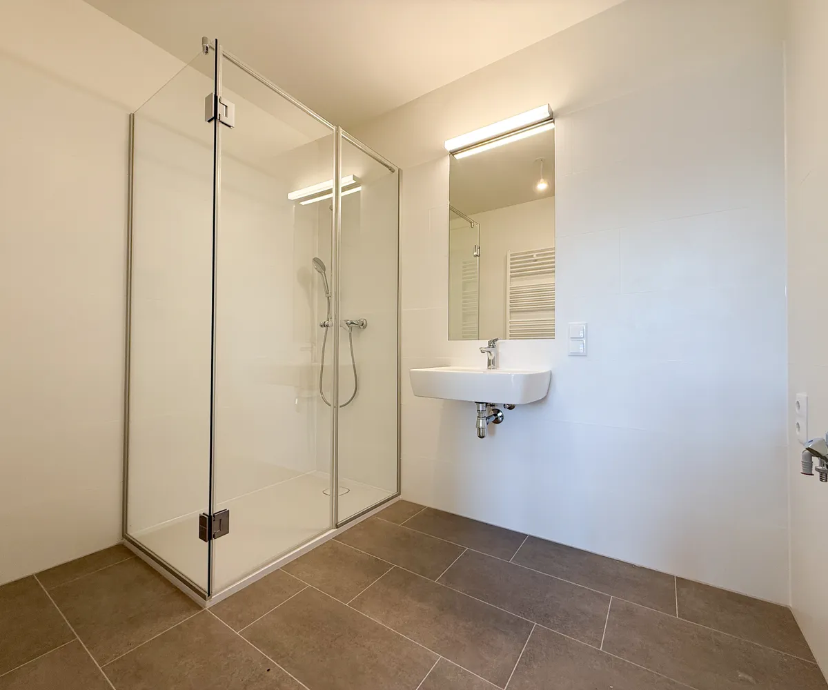 Die Wohnung ist mit hochwertigen Parkettböden in den Wohnräumen, modernen Fliesen in den Nassbereichen sowie zeitgemäßer Haustechnik ausgestattet. Großzügige Fensterflächen mit Sonnenschutz sorgen für viel Tageslicht und ein angenehmes Wohngefühl. Das Gebäude bietet außerdem Fahrradabstellplätze , Kinderwagenräume und ein begrüntes Flachdach .