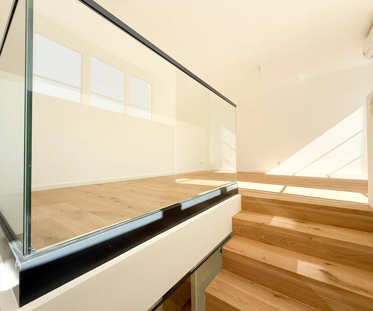 Stiegenaufgänge mit Glas-Handläufen