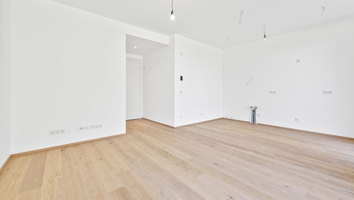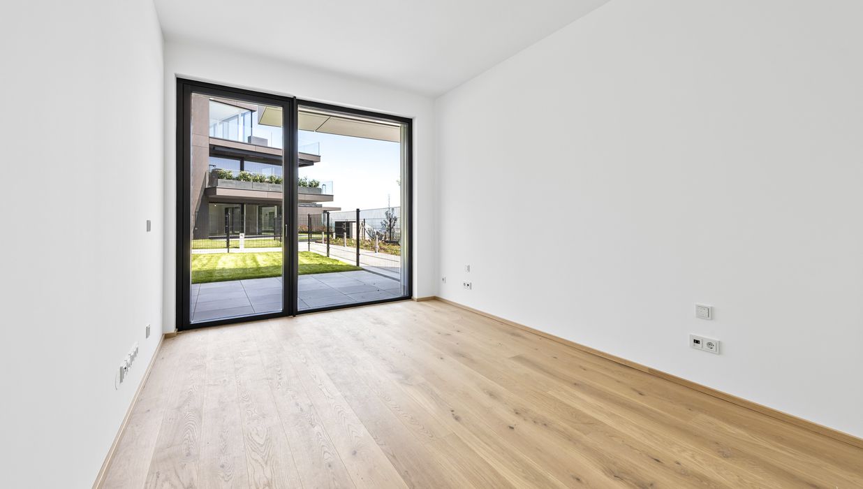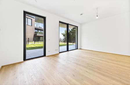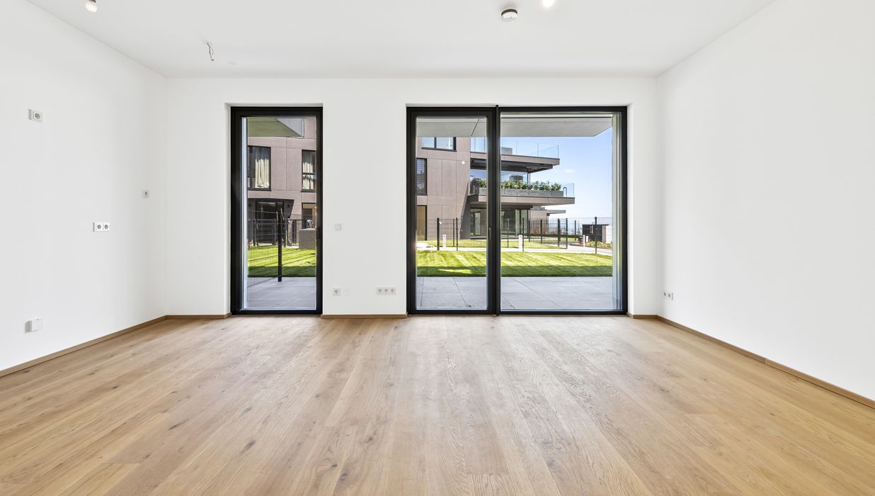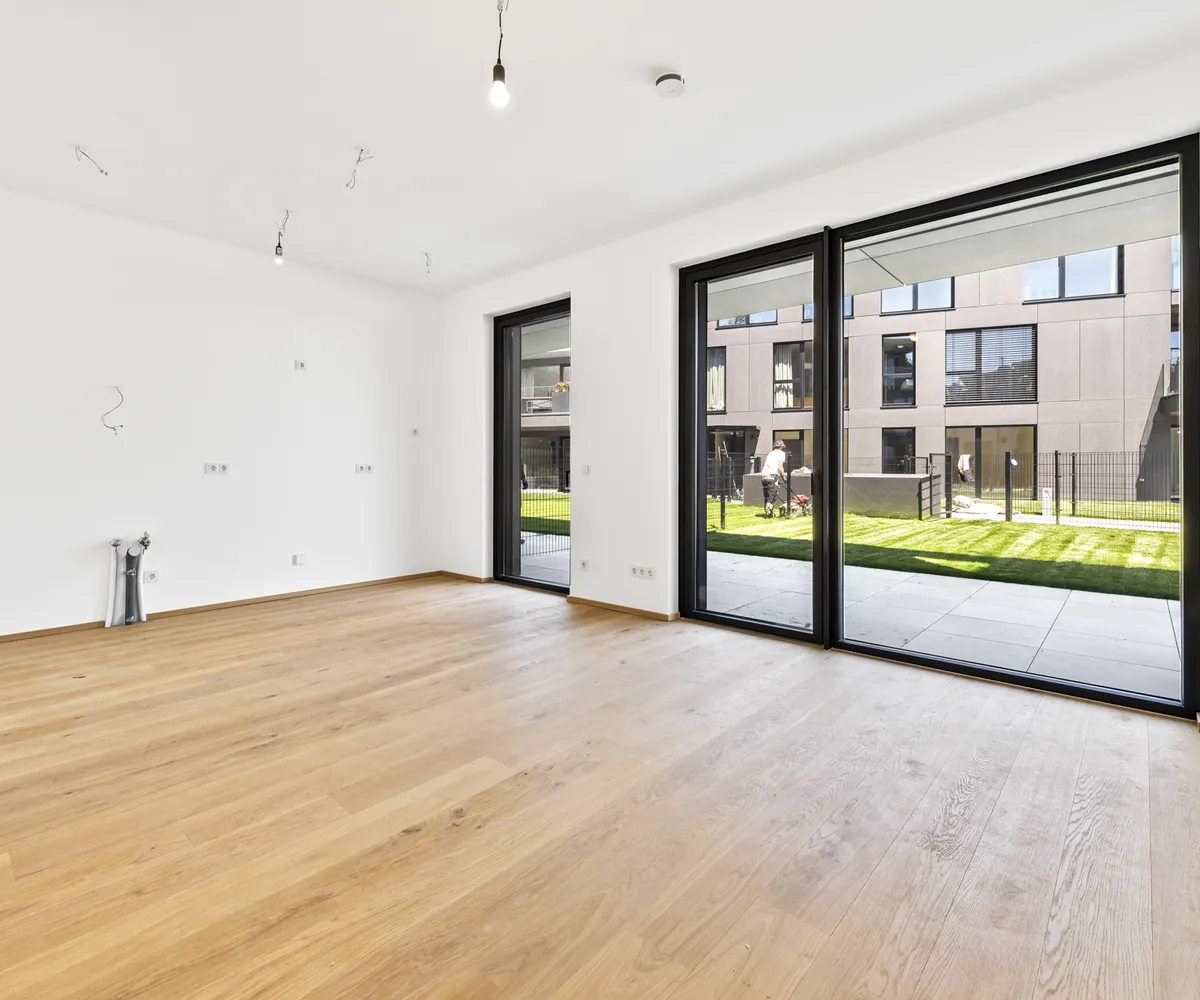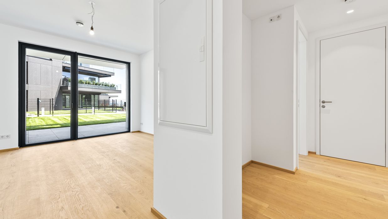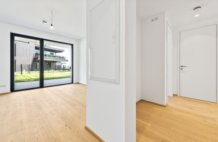 Die hier angebotene 2-Zimmer-Gartenwohnung im Erdgeschoss (Top 2) bietet auf ca. 49,16 m² Wohnfläche , einer Terrasse von ca. 26,5 m² sowie einem Eigengarten von ca. 56,2 m² eine seltene Kombination aus urbanem Luxus und privatem Rückzugsort im Grünen.