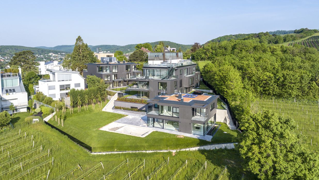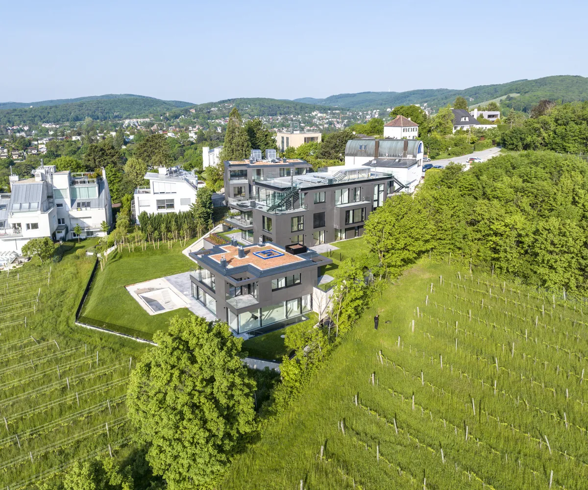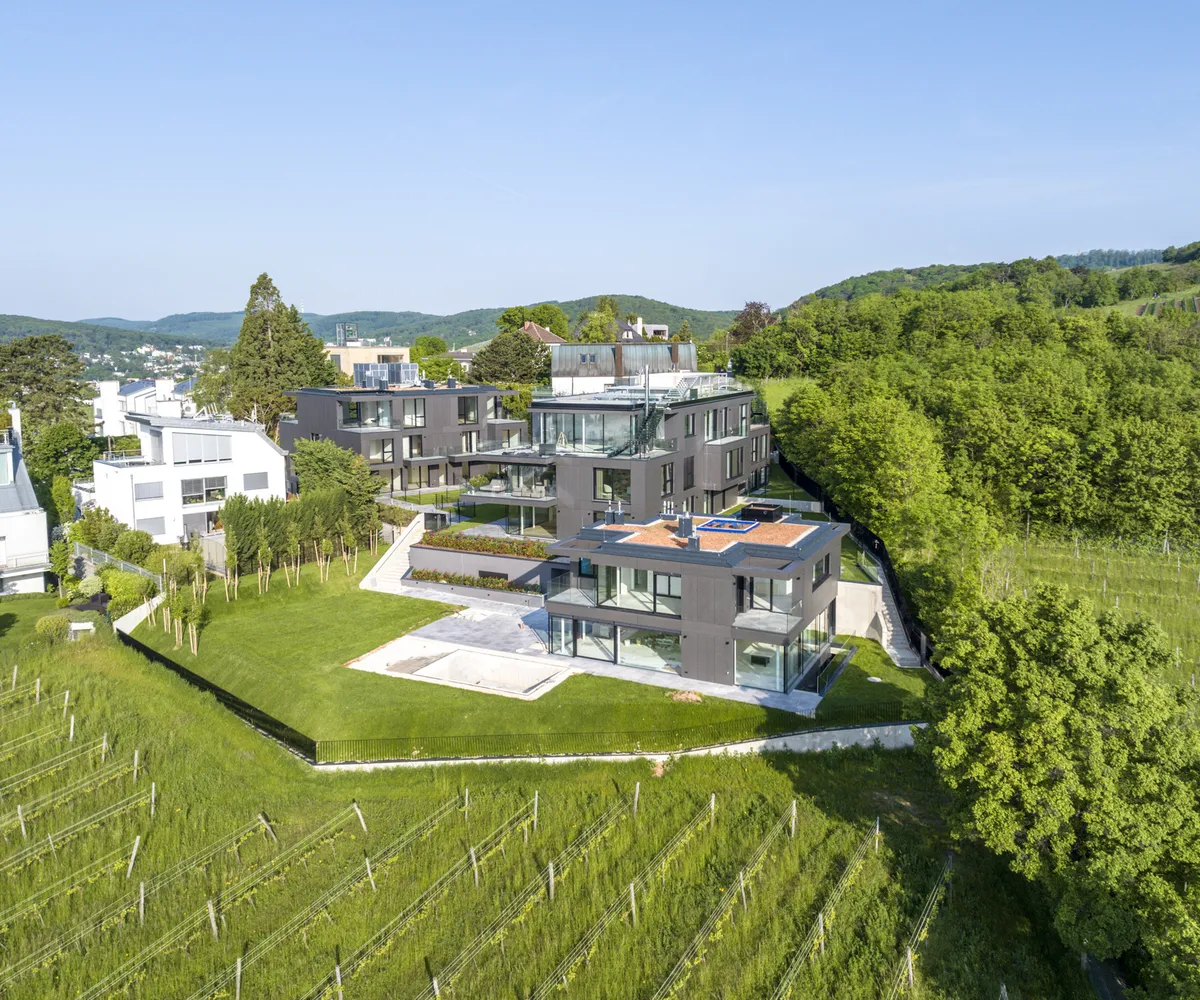 Inmitten der begehrten Weinberge von Döbling, am Fuße des Kahlenbergs, befindet sich dieses außergewöhnliche Wohnprojekt: die Villa Bellevue . Das architektonische Ensemble vereint modernste Bauweise, luxuriöse Ausstattung und eine unvergleichliche Lage mit atemberaubendem Blick über Wien – bereits von der Gartenebene aus.