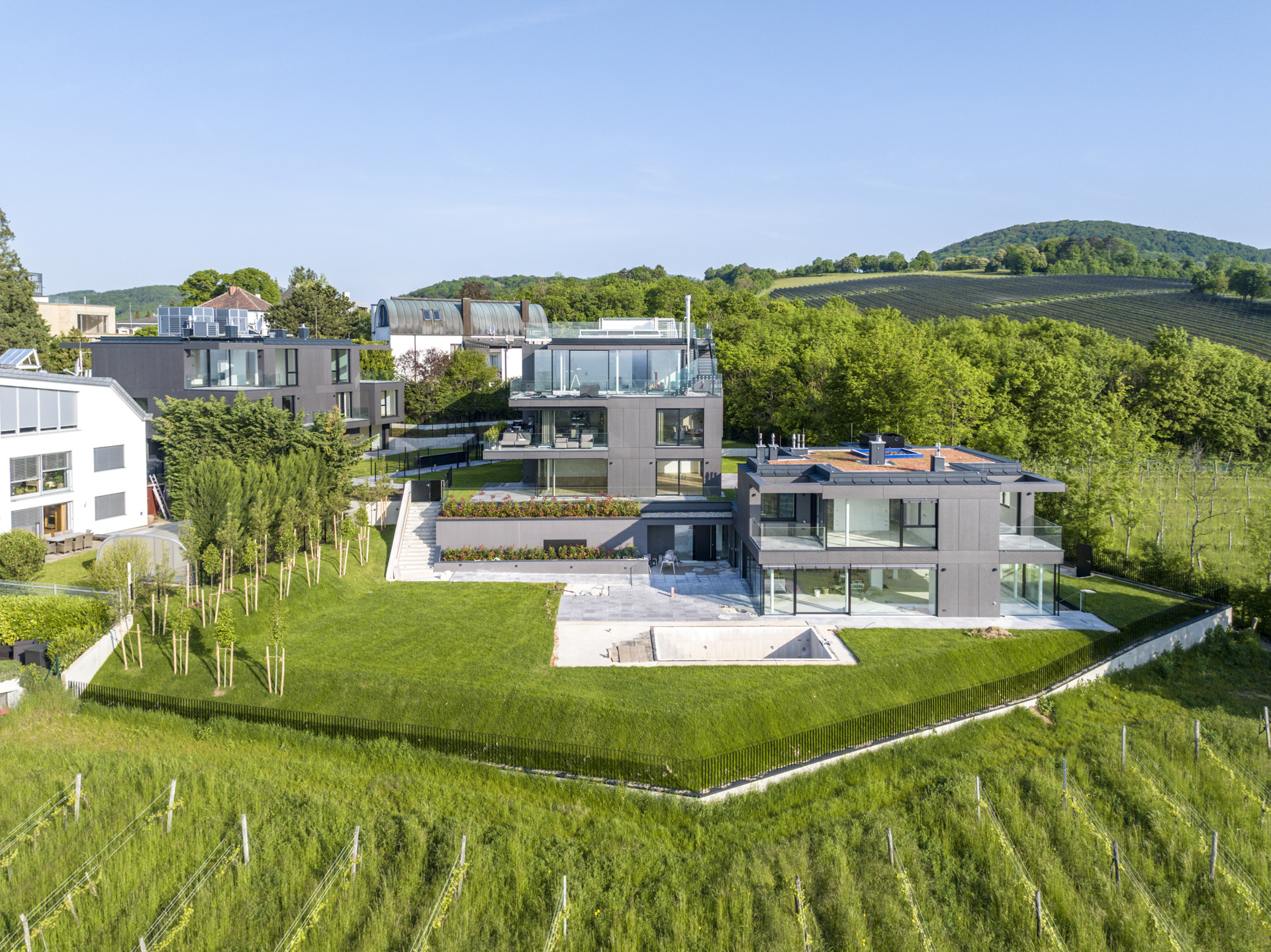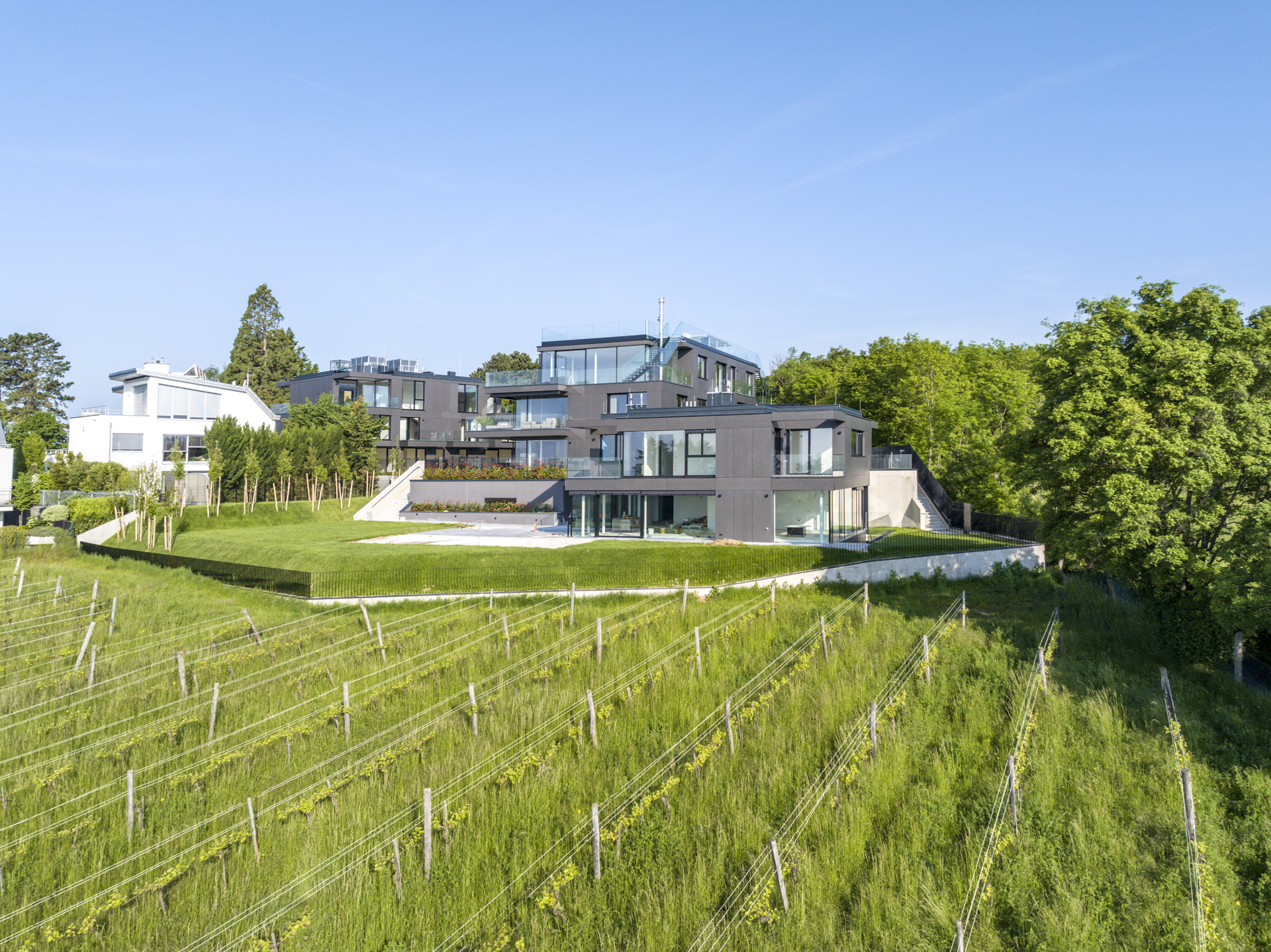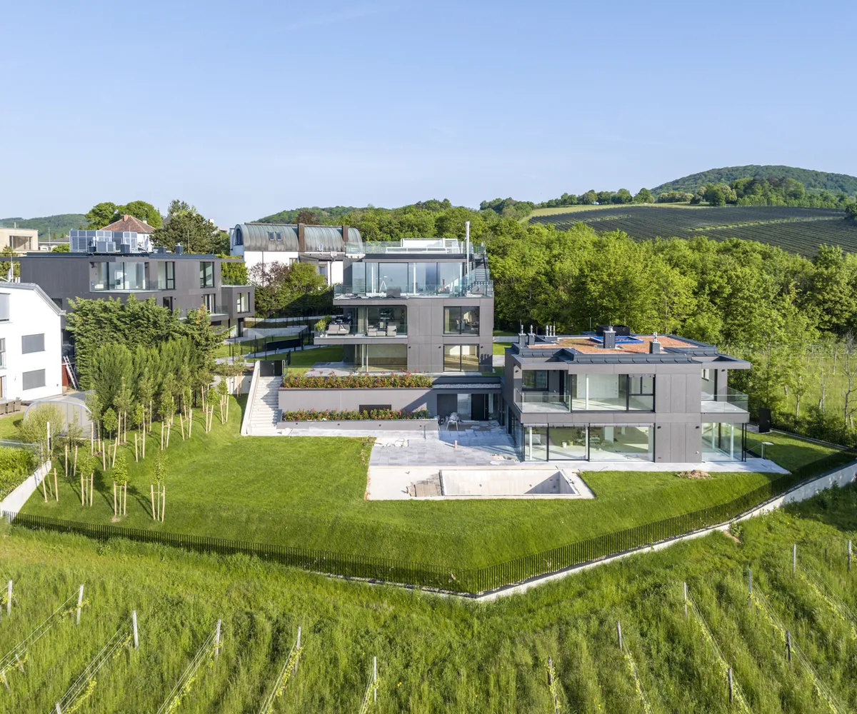 Inmitten der begehrten Weinberge von Döbling, am Fuße des Kahlenbergs, befindet sich dieses außergewöhnliche Wohnprojekt: die Villa Bellevue . Das architektonische Ensemble vereint modernste Bauweise, luxuriöse Ausstattung und eine unvergleichliche Lage mit atemberaubendem Blick über Wien – bereits von der Gartenebene aus.