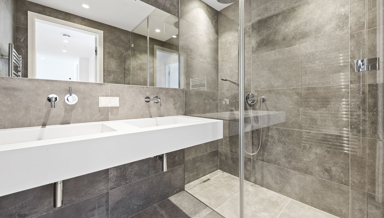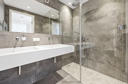 Badezimmer (ca. 4,02 m²) – mit Designer-Wanne/Dusche, Doppelwaschtisch und hochwertigen Armaturen