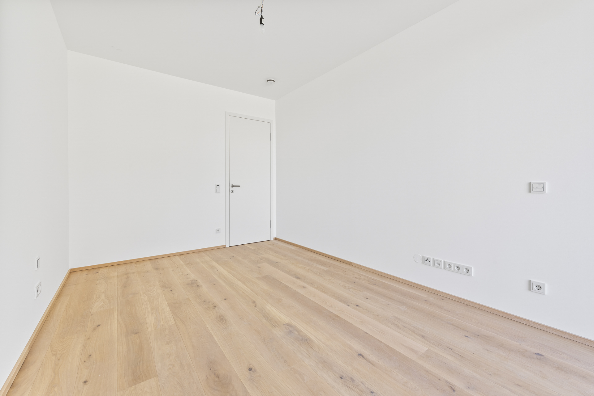 Böden: Edles Eichen-Parkett (Bauwerk Casapark, Eiche Farina, geölt) und großformatige Feinsteinzeug-Fliesen (Casalgrande Padana, 45×90 cm, Serie Manhattan)