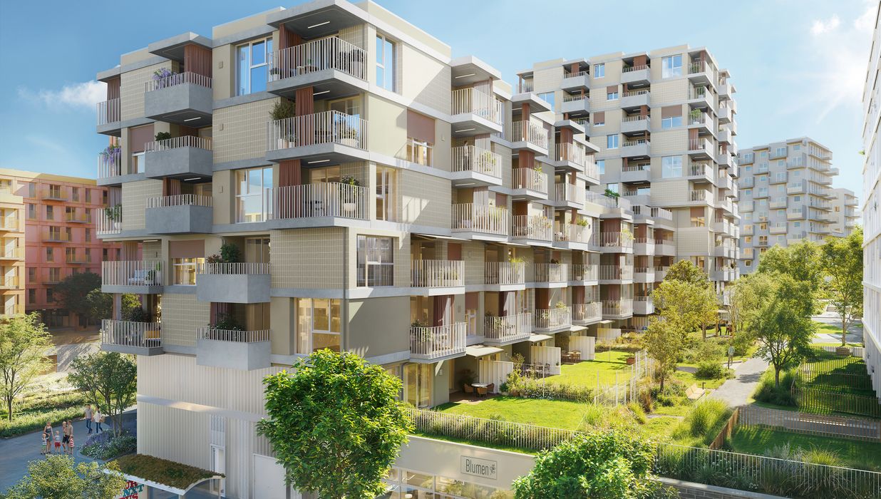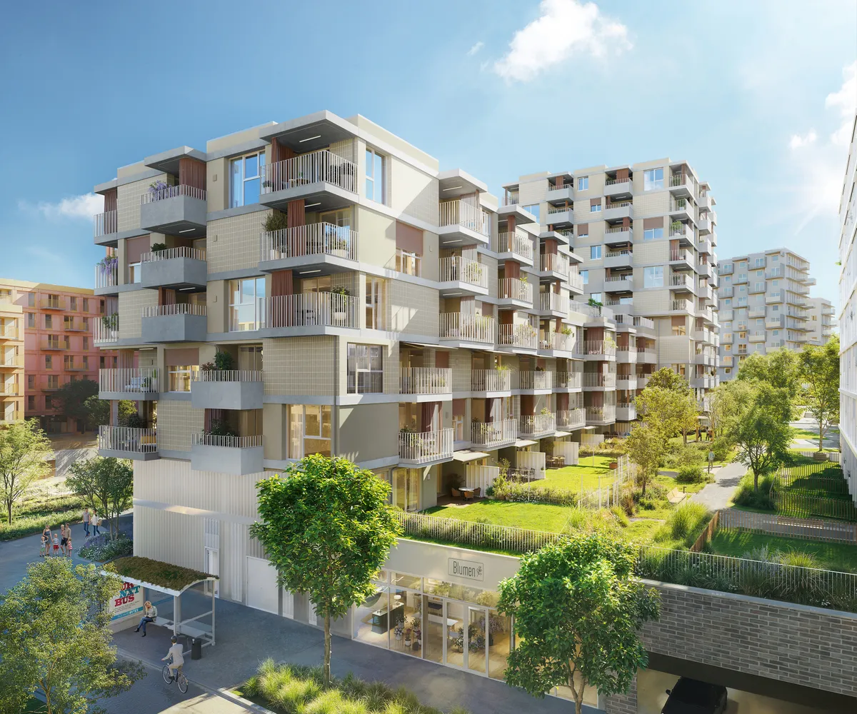 Das Baufeld 14B nimmt dabei eine besondere Rolle ein: Zwei Bauteile die sich zu einem Baukörper vereinen – sechs bzw. elf Geschosse hoch – fügen sich harmonisch in die Umgebung ein und eröffnen Platz für 109 Wohnungen mit zwei bis fünf Zimmern sowie zwei Gewerbeflächen im Erdgeschoss. Das Projekt spricht besonders Jene an, die zentrumsnah, urban und gleichzeitig naturnah wohnen möchten. Hier finden Familien, Paare, Singles wie auch ältere Generationen ein Zuhause, das den Wunsch nach Individualität mit dem Gefühl von Gemeinschaft verbindet.