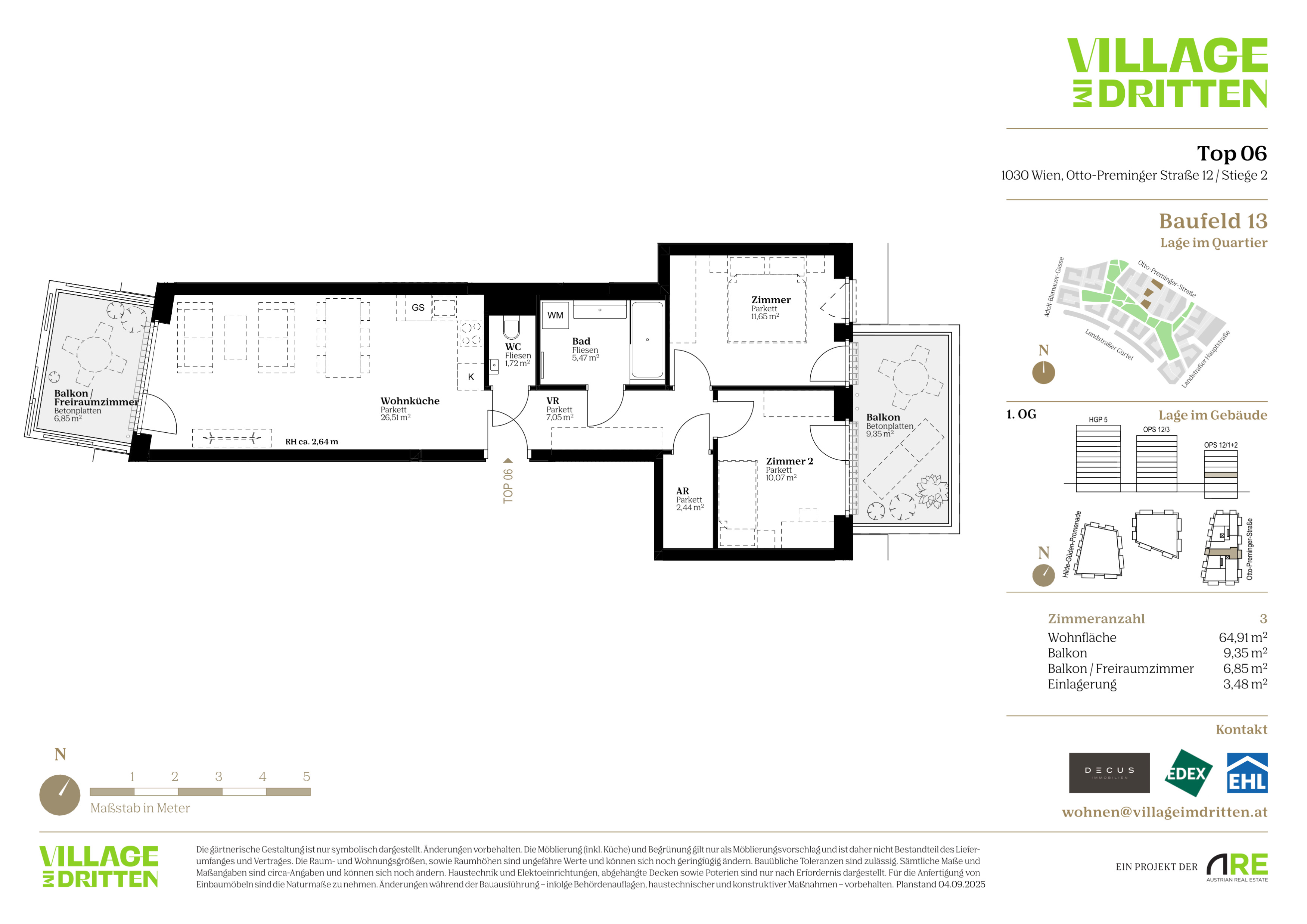 Im dritten Wiener Gemeindebezirk entsteht mit dem VILLAGE IM DRITTEN ein neues Stück Stadt – eines der größten Stadtentwicklungsgebiete Wiens . Auf über elf Hektar entwickelt die ARE Austrian Real Estate gemeinsam mit der Stadt Wien und dem wohnfonds_wien ein lebendiges, nahezu autofreies Quartier mit rund 2.000 Wohnungen, Büro- und Gewerbeflächen, Kinderbetreuung, Bildungseinrichtungen und Nahversorgung.