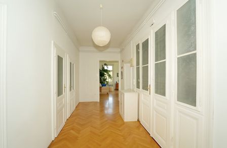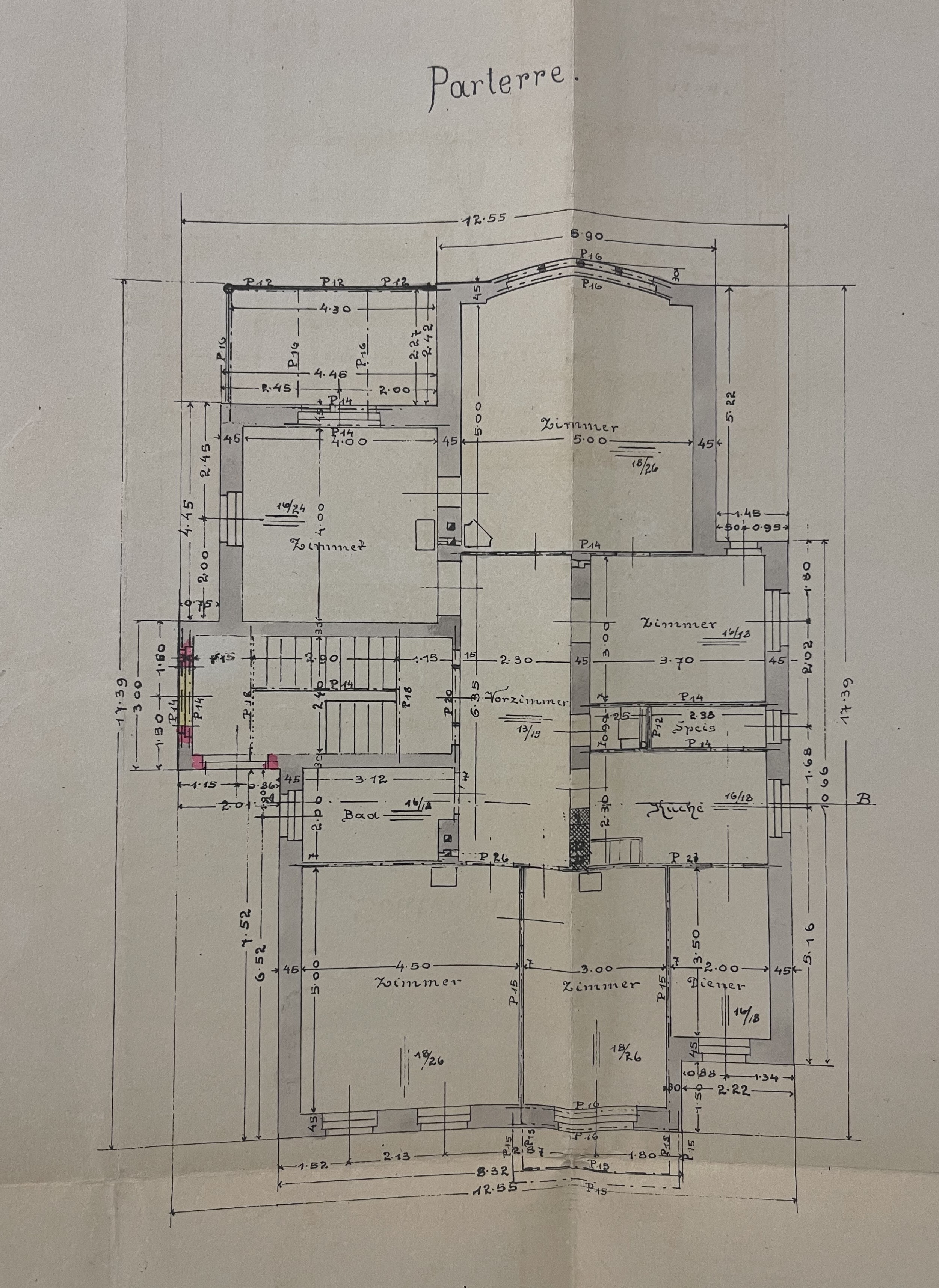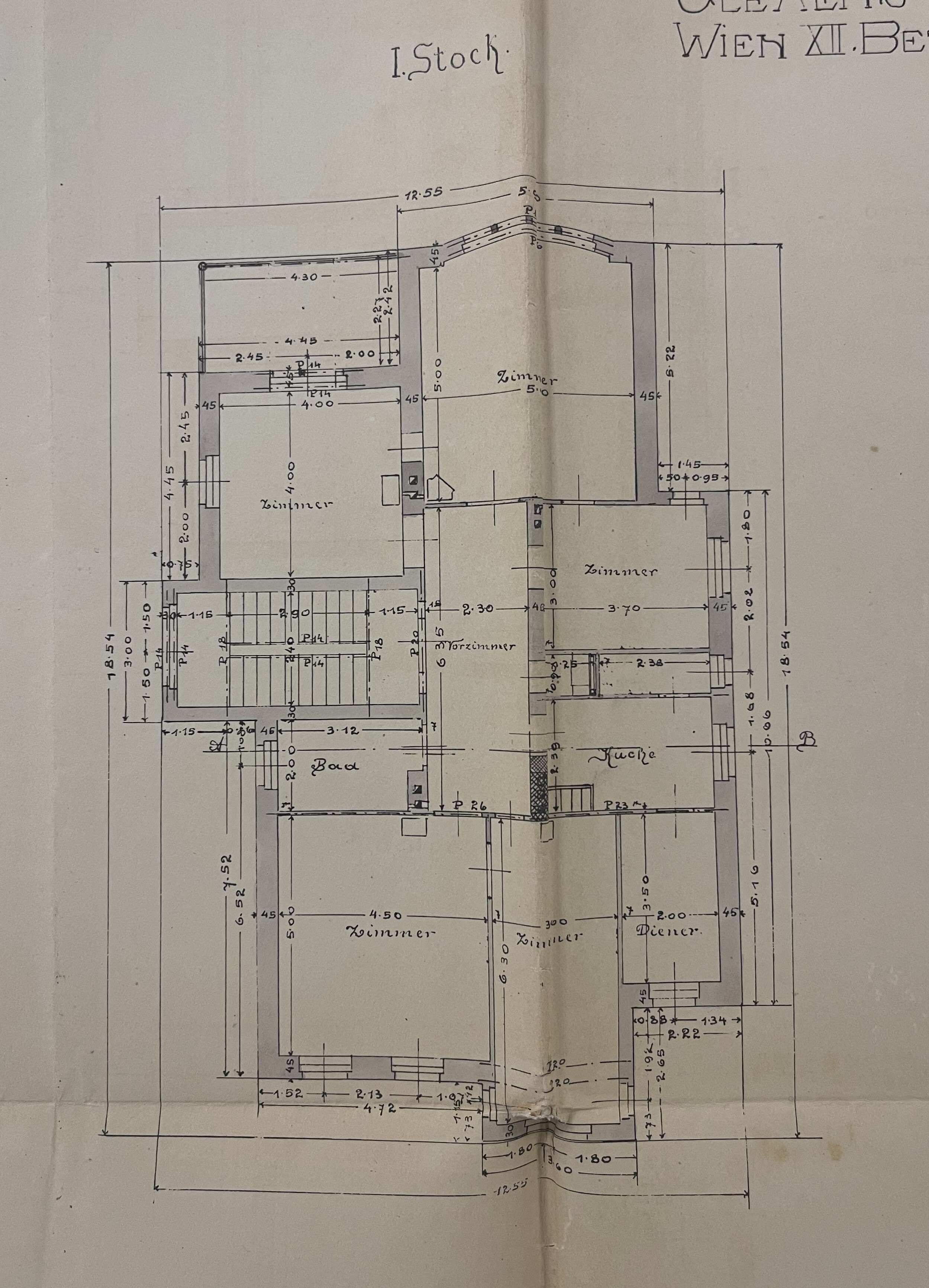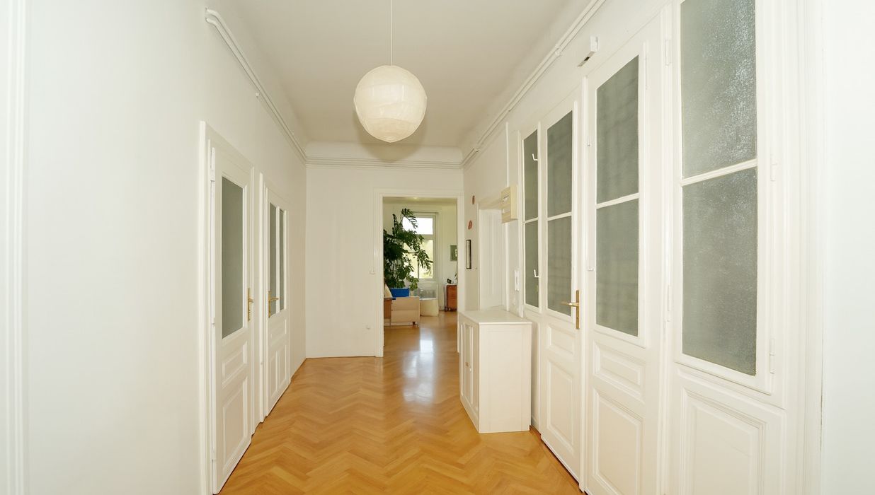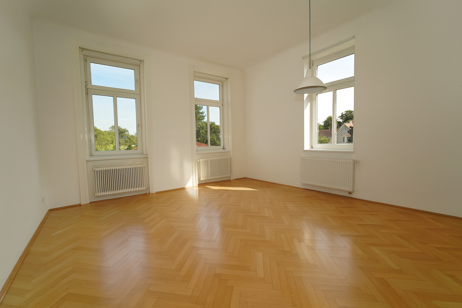 Die Villa erstreckt sich über zwei Wohnebenen (Hochparterre und 1. Obergeschoß) mit einer großzügigen Wohnfläche von ca. 282 m² und einer Gesamtnutzfläche von ca. 398 m². Sie verfügt über insgesamt 12 Zimmer, zwei Bäder, zwei separate WCs sowie mehrere Abstellräume. Im Keller, der 115 m² groß ist, stehen zusätzliche Lagerflächen zur Verfügung, darüber hinaus sind aber die Räume an zwei Seiten mit Fenster, also haben Tageslicht. Der Dachboden, ein Roh-Dachboden, ist ein nicht ausgebautes Geschoß. Klassische Altbaudetails, hohe Räume, Parkettböden, Doppelflügeltüren und eine gepflegte Ausstattung schaffen den unvergleichlich, klassischen Altbaustil und ein repräsentatives und zugleich wohnliches Ambiente.