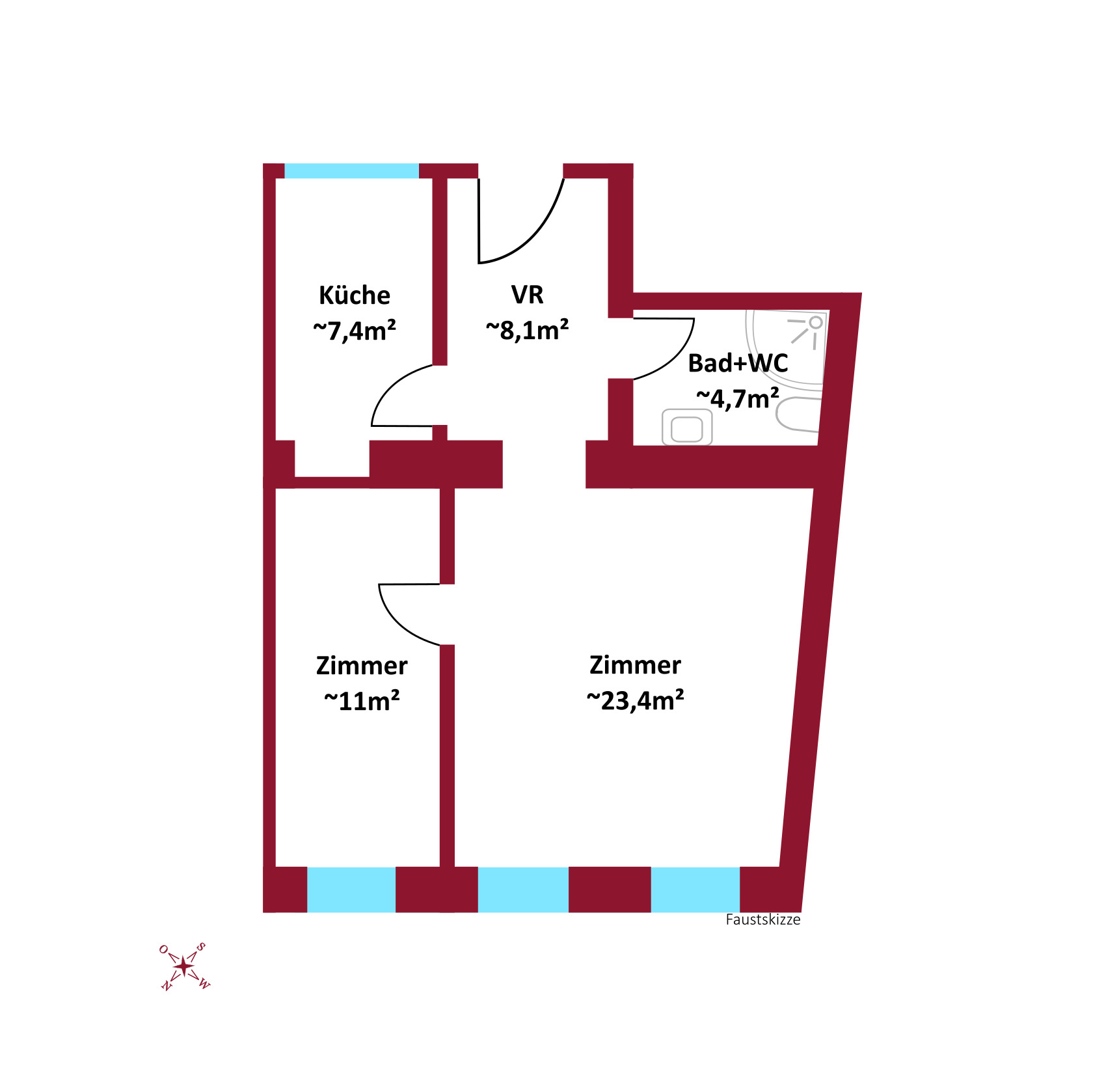 Mit einer Fläche von 54,5 m² und zwei hellen Zimmern plus Nebenräumen ist genügend Platz für ein Paar oder eine kleine Familie. Der durchdachte Grundriss sorgt für optimale Raumaufteilung und bietet Ihnen die Möglichkeit, sich ganz nach Ihren individuellen Bedürfnissen einzurichten. Optional können Sie aber auch die Möbel übernehmen, mit denen die Wohnung derzeit ausgestattet ist.