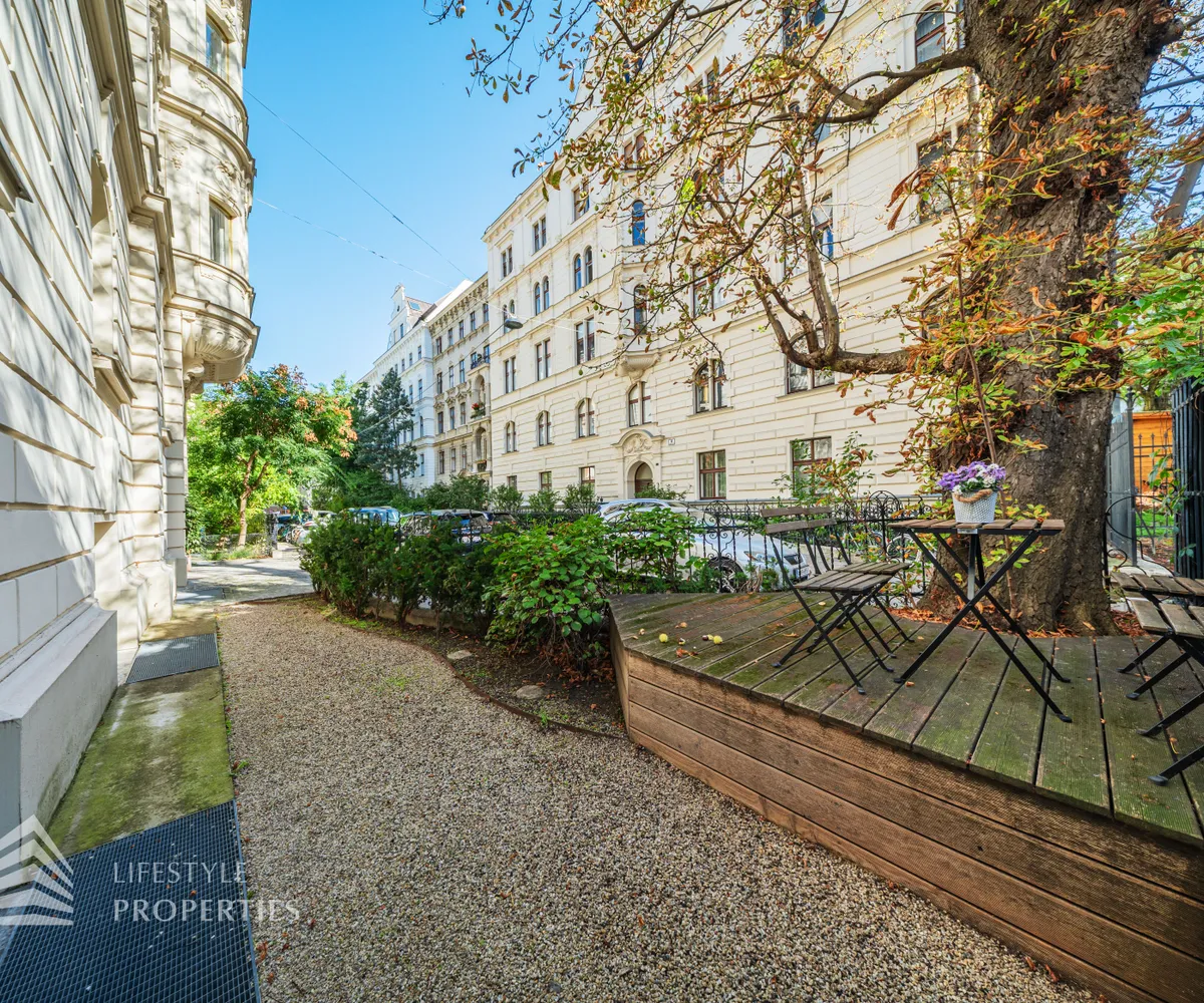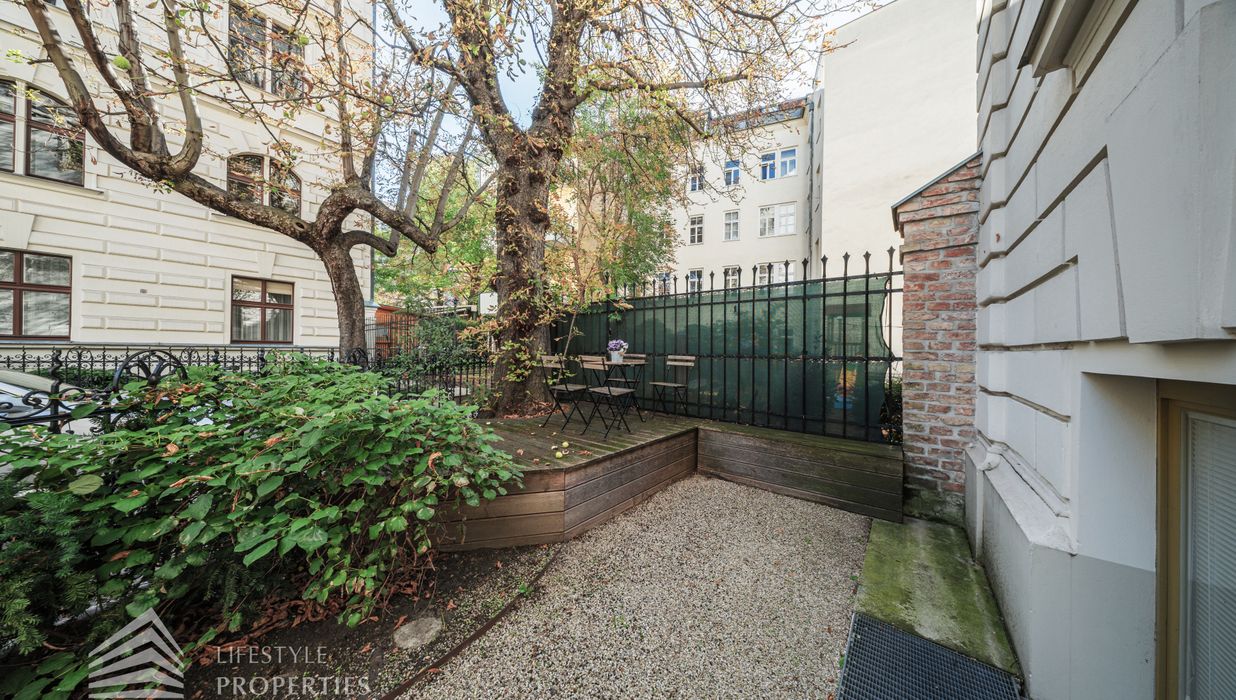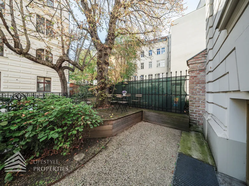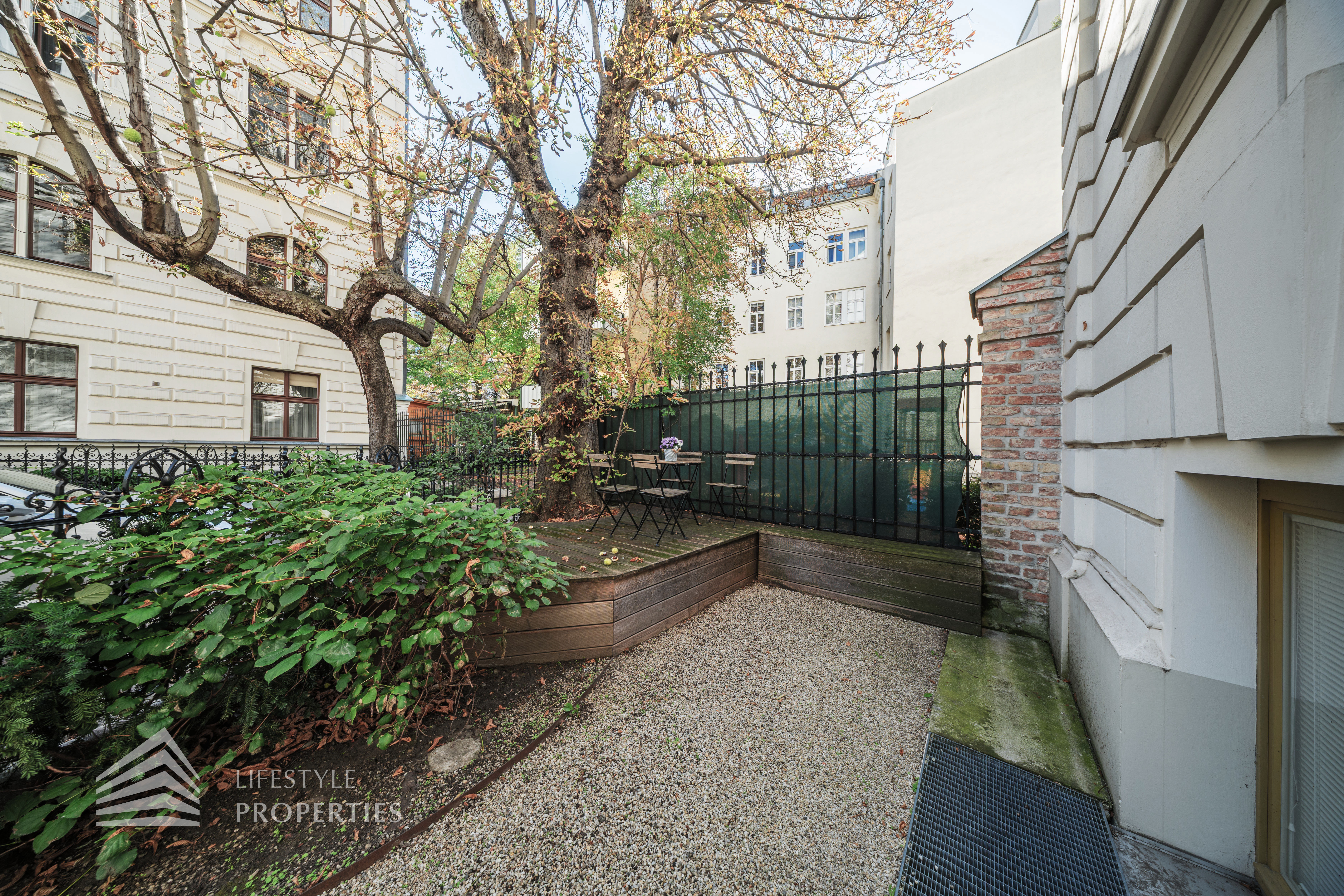 Beim Betreten der Wohnung empfängt Sie ein ca. 3 m² großer, einladender Vorraum, der einen praktischen Zugang zur separat gelegenen Toilette bietet. Linkerhand öffnet sich der Weg in die großzügige, lichtdurchflutete ca. 30 m² große Wohnküche, das Herzstück der Wohnung, das durch seine Helligkeit und Offenheit besticht. Von hier aus erreichen Sie sowohl das gemütliche Schlafzimmer als auch das stilvoll ausgestattete Badezimmer. Dieses verfügt neben einer Badewanne und einem eleganten Handwaschbecken über eine zweite Toilette – ideal für zusätzlichen Komfort. Ein besonderes Highlight dieser Wohnung ist der direkte Zugang zum eigenen ca. 33 m² großen Garten mit Terrasse mit erhöhter Sitzgelegenheit – ein idealer Ort zur Entspannung. Der ca. 100 Jahre alte Kastanienbaum bietet kühlenden Schatten mitten in der Stadt. Dank der ruhigen Lage am Ende der kleinen Einbahnstraße können Sie hier ungestört die Ruhe genießen.