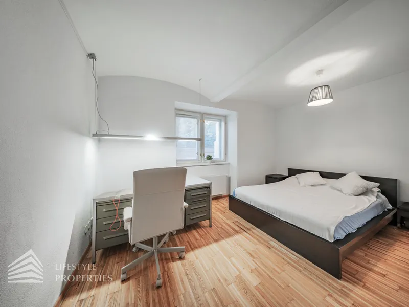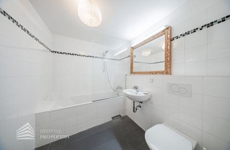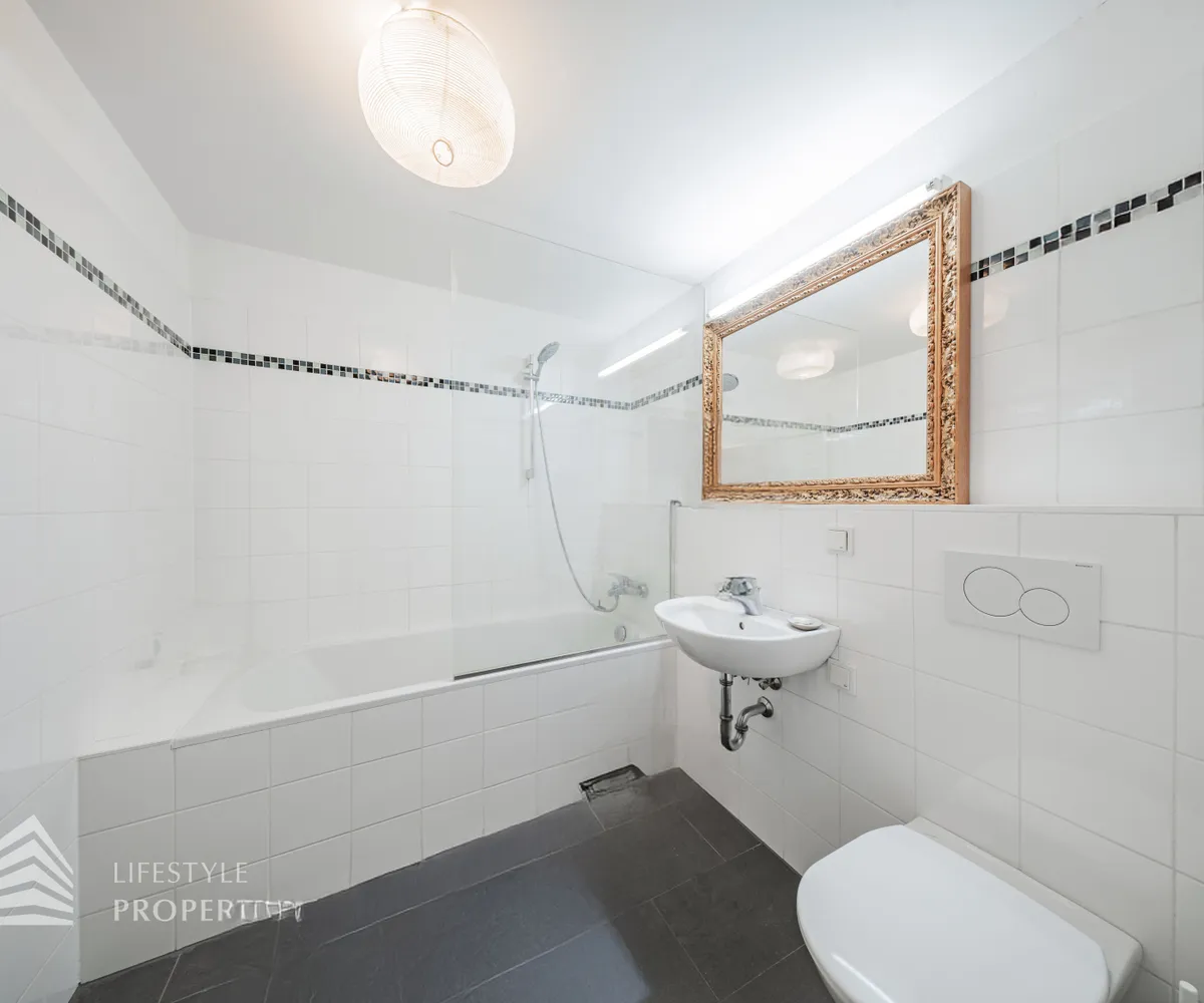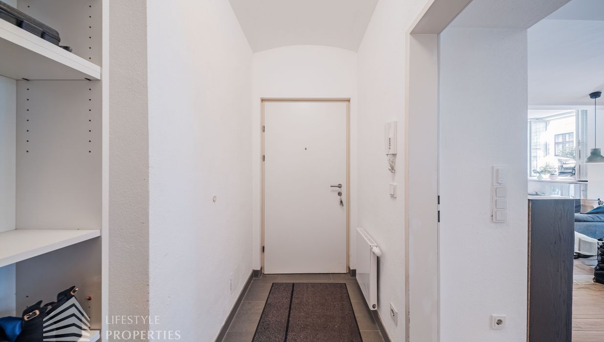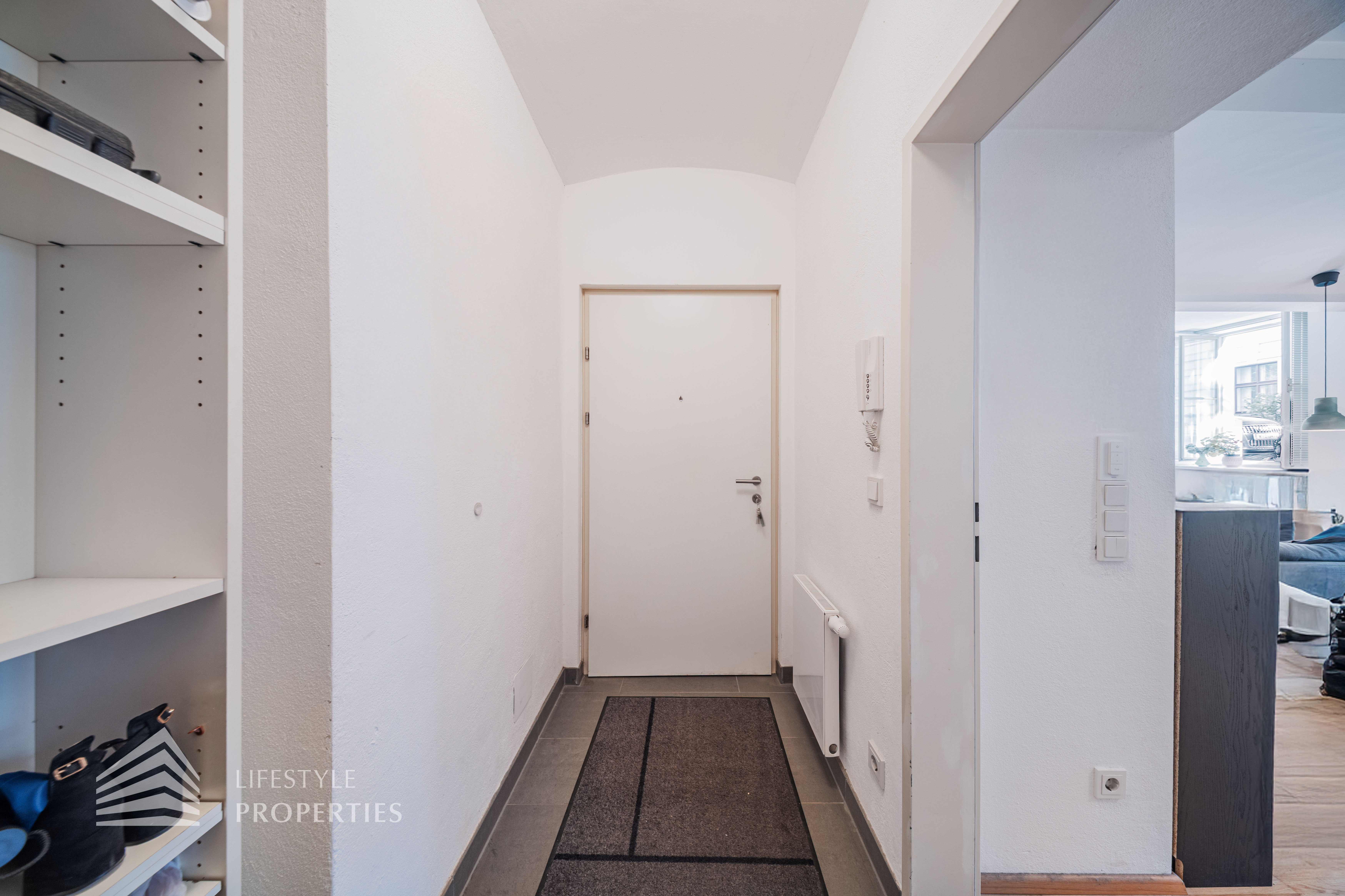 Beim Betreten der Wohnung empfängt Sie ein ca. 3 m² großer, einladender Vorraum, der einen praktischen Zugang zur separat gelegenen Toilette bietet. Linkerhand öffnet sich der Weg in die großzügige, lichtdurchflutete ca. 30 m² große Wohnküche, das Herzstück der Wohnung, das durch seine Helligkeit und Offenheit besticht. Von hier aus erreichen Sie sowohl das gemütliche Schlafzimmer als auch das stilvoll ausgestattete Badezimmer. Dieses verfügt neben einer Badewanne und einem eleganten Handwaschbecken über eine zweite Toilette – ideal für zusätzlichen Komfort. Ein besonderes Highlight dieser Wohnung ist der direkte Zugang zum eigenen ca. 33 m² großen Garten mit Terrasse mit erhöhter Sitzgelegenheit – ein idealer Ort zur Entspannung. Der ca. 100 Jahre alte Kastanienbaum bietet kühlenden Schatten mitten in der Stadt. Dank der ruhigen Lage am Ende der kleinen Einbahnstraße können Sie hier ungestört die Ruhe genießen.