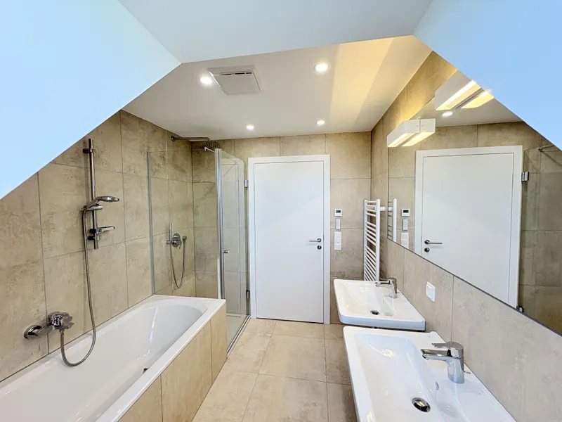 Die Wohnung verfügt über zwei Badezimmer, die sowohl mit einer Badewanne als auch einer Dusche ausgestattet sind. So können Sie sich nach einem langen Tag in Ihrem persönlichen Wellnessbereich zurückziehen. Zwei separate WCs bieten zusätzlichen Komfort für Sie und Ihre Gäste.