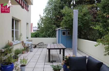 Ein Highlight der Wohnung ist die traumhafte Terrasse, die Ihnen einen unvergesslichen Ausblick auf die grüne Umgebung bietet. Stellen Sie sich vor, wie Sie morgens bei einer Tasse Kaffee den Sonnenaufgang genießen oder abends mit Freunden bei einem Glas Wein entspannen. Diese Oase der Ruhe wird schnell zum Herzstück Ihres neuen Zuhauses.