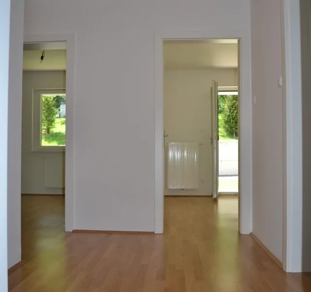 Über den Vorraum gelangt man in die 2 Zimmer, eines davon mit Terrassenausgang (Richtung Westen) und in das Gäste-WC, weiter in das großzügige Wohn/Esszimmer mit komplett eingerichteter Küche (Miele-Geräte) und Ausgang auf die zweite Terrasse (Richtung Osten) und in das großes Bad mit Wanne, Doppelwaschtisch und Waschmaschinenanschluß.