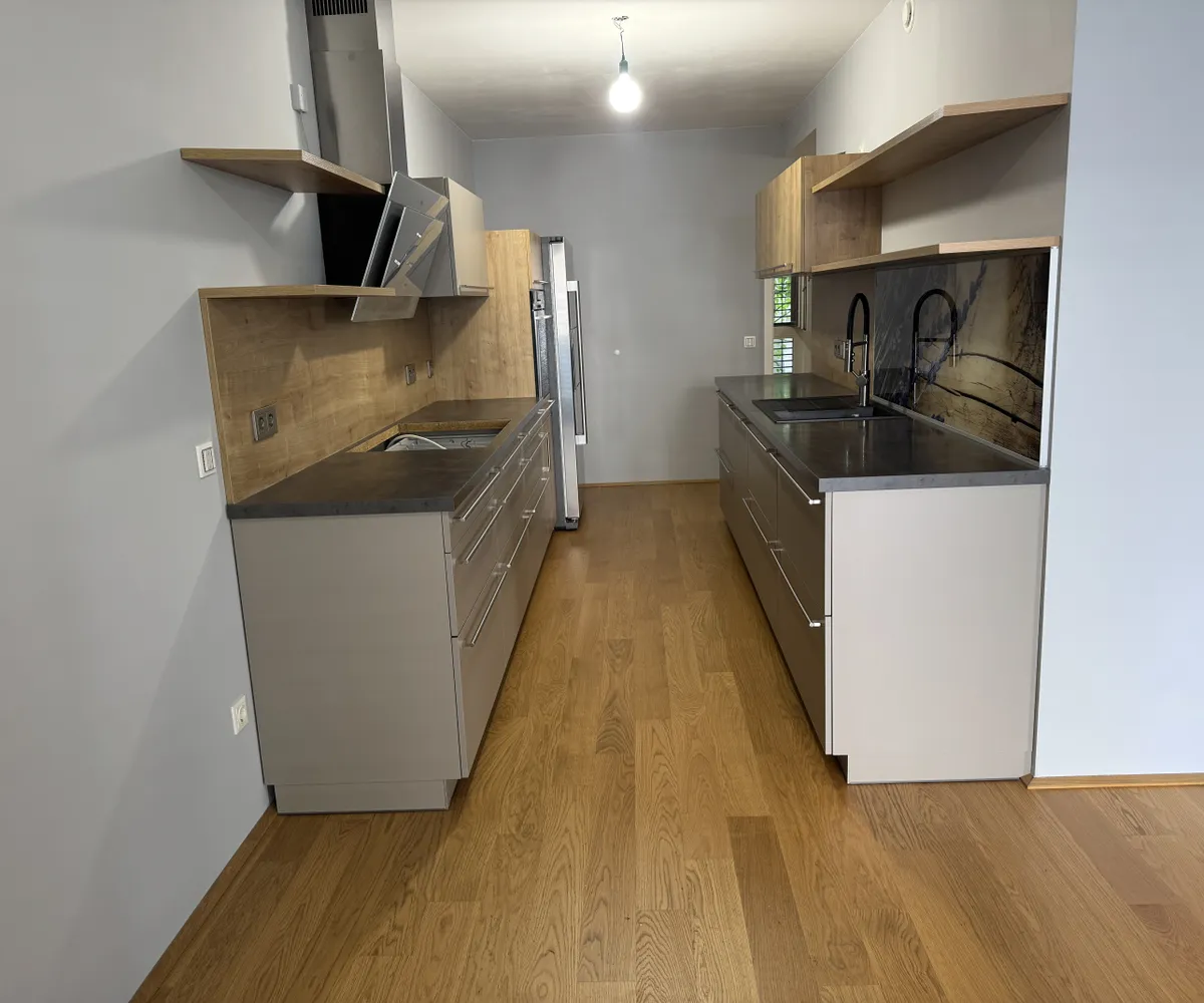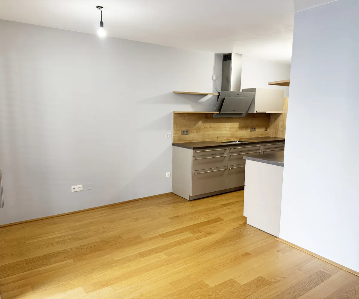 Die Wohnung bietet ein gemütliches Wohnzimmer mit direktem Zugang zur Loggia, zwei weitere Räume, die flexibel als Schlafzimmer, Büro oder Gästezimmer genutzt werden können, sowie ein elegantes Badezimmer mit Walk-in-Dusche. Die halb offene modern ausgestattete Küche integriert sich harmonisch in das Wohnkonzept und bietet Platz für kulinarische Entfaltung.