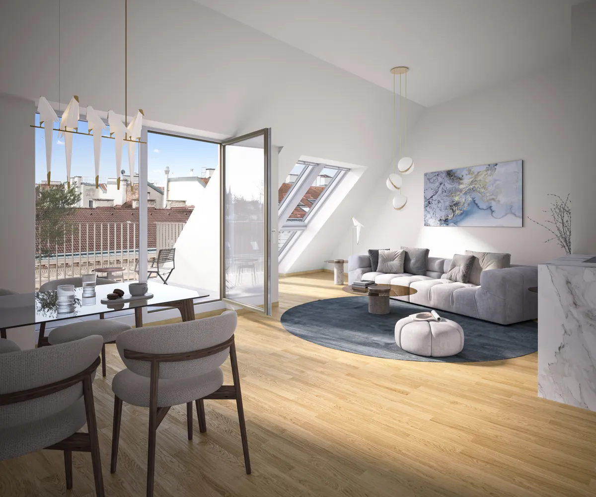 Im Herzen des 17. Bezirks entsteht ein modernes Wohnensemble mit 60 Eigentumswohnungen und einem Geschäftslokal, welches sich durch die ansprechende Architektur, hochwertige Ausstattung und perfekte Lage auszeichnet. Geplant sind 2-4 Zimmer-Wohnungen mit ca. 33m²-121m². Jeder Wohnung ist eine Freifläche zugeordnet. Ein Fassadenbegrünungskonzept und ein begrünter Innenhof setzen ein Zeichen für Nachhaltigkeit und stellen damit Lebensqualität in den Vordergrund. Diese Wohlfühloase verteilt sich über zwei Wohnhäuser und ein Townhouse und fügt sich perfekt in dieses urbane Grätzl ein.