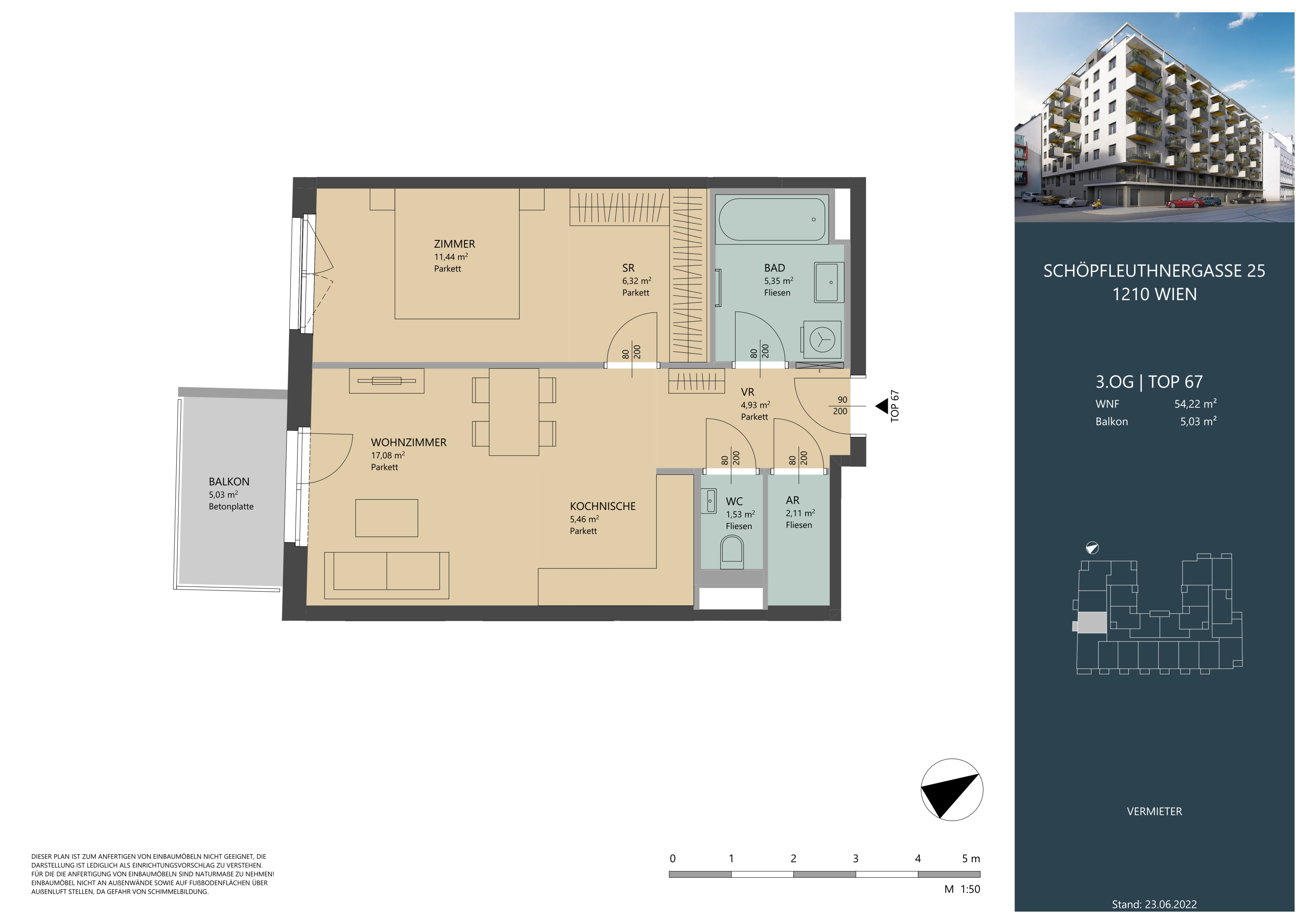Die Wohnung befindet sich im 3. Obergeschoss und verfügt über ein großzügiges Wohnzimmer mit Kochnische, welche eine vollausgestattete Einbauküche beinhaltet, ein Schlafzimmer, ein Badezimmer mit Badewanne und Waschmaschinenanschluss, ein separates WC, sowie einen Abstellraum und einen Vorraum. Der Balkon bietet einen geeigneten Platz, um sich an der frischen Luft zu entspannen.