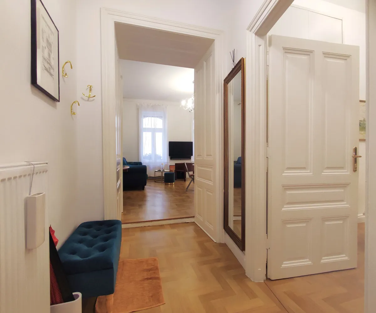 Über das elegante Entrée des stilvollen Gebäudes gelangen Sie in die gepflegte Wohnung im Hochparterre. Diese wurde mit viel Anspruch an Qualität vor zwei Jahren saniert und präsentiert sich in modernem, stilvollem Wohnambiente.