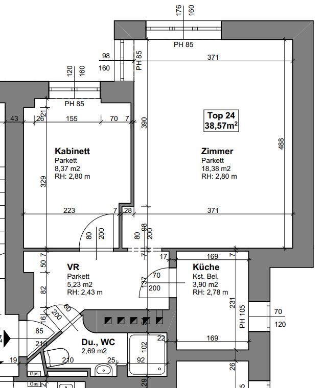 Das smarte Layout bietet bei einer Wohnfläche von rund 38,57 m² einen durchdachten Grundriss. Sämtliche Räume sind zentral begehbar und bereits beim Betreten der Wohnung überzeugen die Bodenfliesen in Betonoptik. Die Räume sind lichtdurchflutet und es erwartet Sie ein entspannter Ausblick in den Innenhof. Eine abgehängte Decke und Deckenspots im Vorraum werten die Wohnung zusätzlich auf.