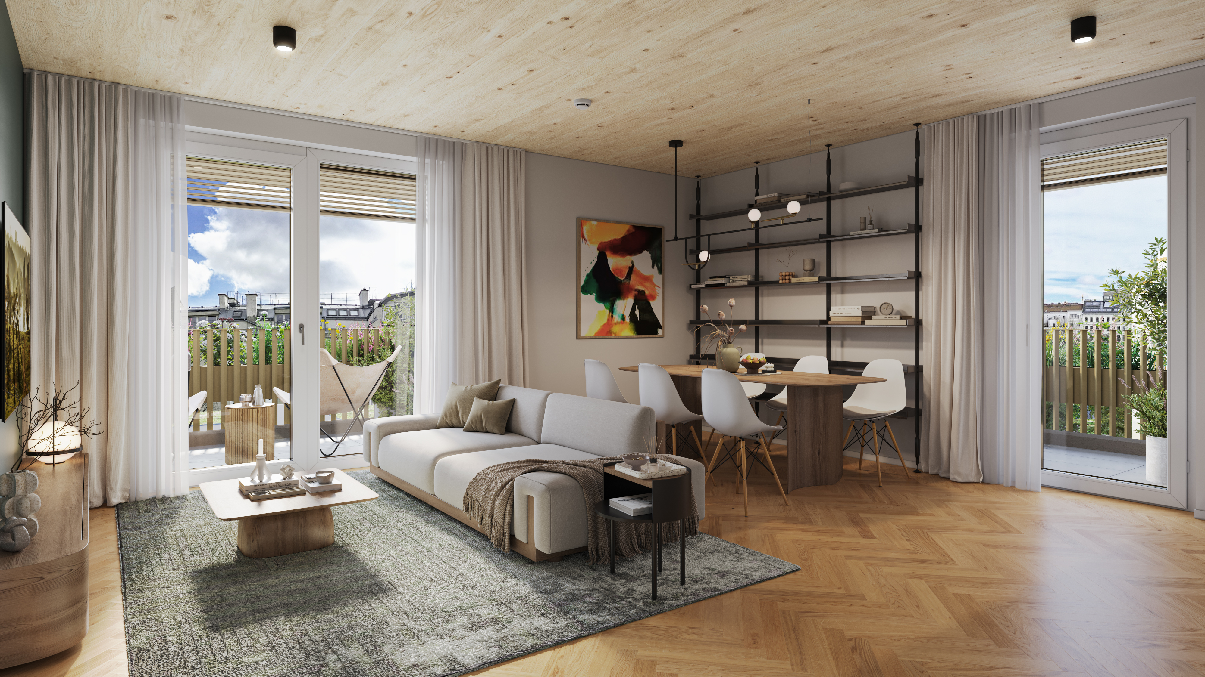 Die natürliche Materialität schafft ein gesundes Raumklima, kombiniert mit moderner Technik für maximalen Komfort.
