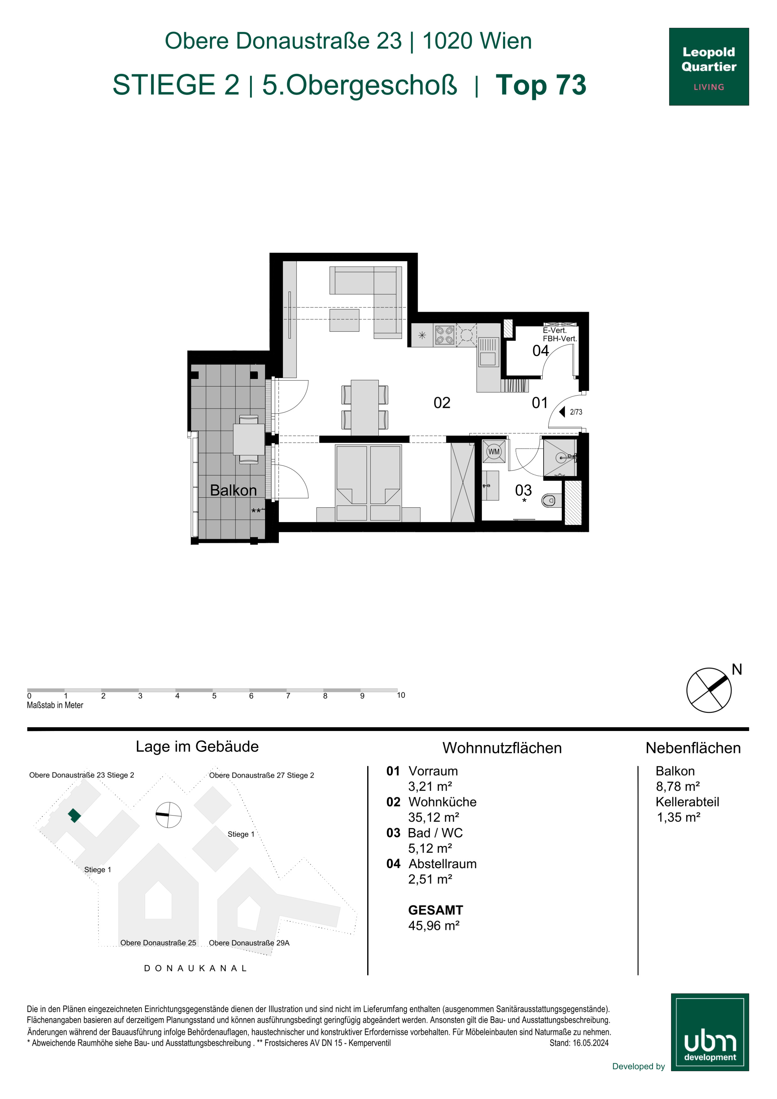 Eingebettet zwischen dem Donaukanal, dem grünen Augarten und dem pulsierenden 1. Wiener Gemeindebezirk vereint das LeopoldQuartier Natur, Urbanität und höchste Lebensqualität. Stephansdom, Kärntner Straße und die kulinarischen Hotspots des Servitenviertels sind fußläufig erreichbar.