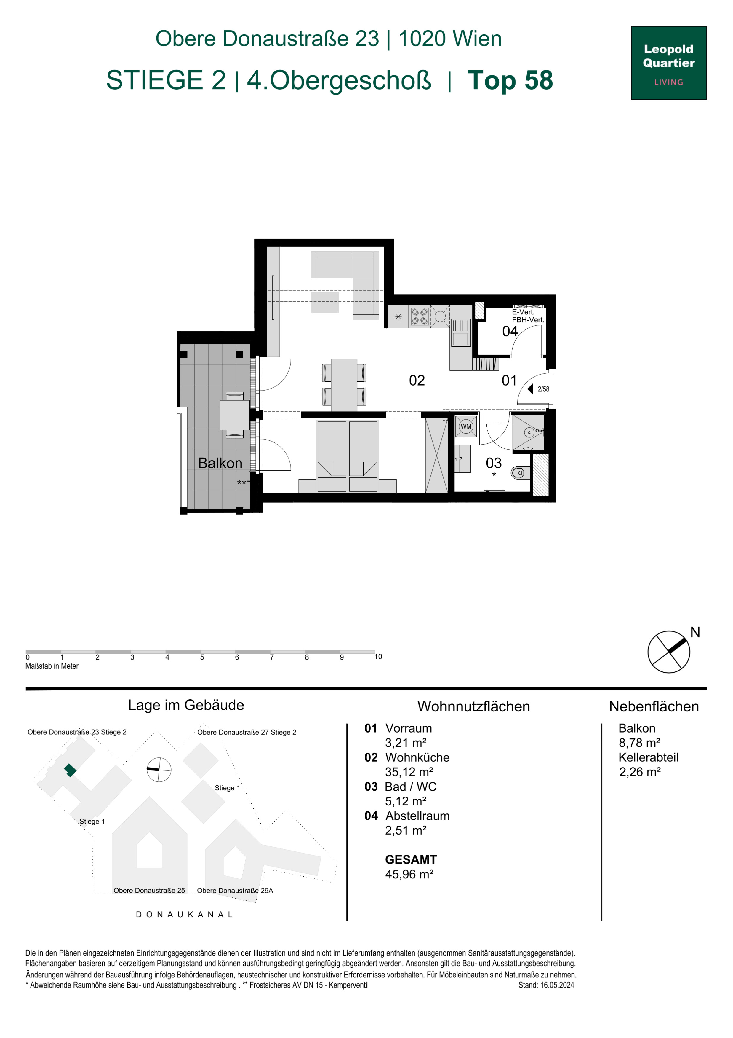 Eingebettet zwischen dem Donaukanal, dem grünen Augarten und dem pulsierenden 1. Wiener Gemeindebezirk vereint das LeopoldQuartier Natur, Urbanität und höchste Lebensqualität. Stephansdom, Kärntner Straße und die kulinarischen Hotspots des Servitenviertels sind fußläufig erreichbar.
