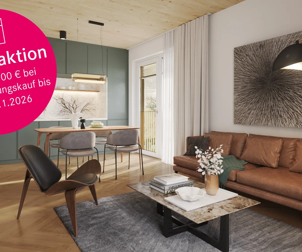 Beim Kauf einer 3- oder 4-Zimmerwohnung kann ein Kfz-Stellplatz in der hauseigenen Tiefgarage um € 44.000,- erworben werden.