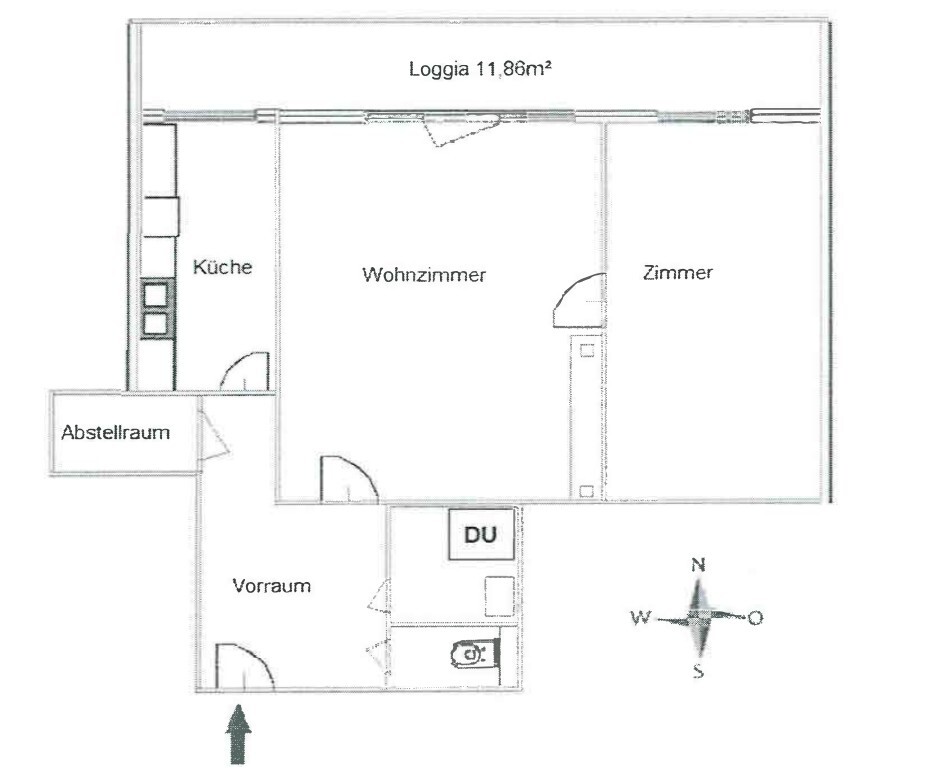 Die Wohnung befindet sich im 1. Stock mit Lift und vom Vorraum aus erreichen Sie die separate Toilette , das Badezimmer mit Dusche , sowie das Wohnzimmer und die Küche . Ein Abstellraum im Vorraum ergänzt das Raumangebot und zusätzlich steht ein Kellerabteil in der Liegenschaft zur Verfügung.