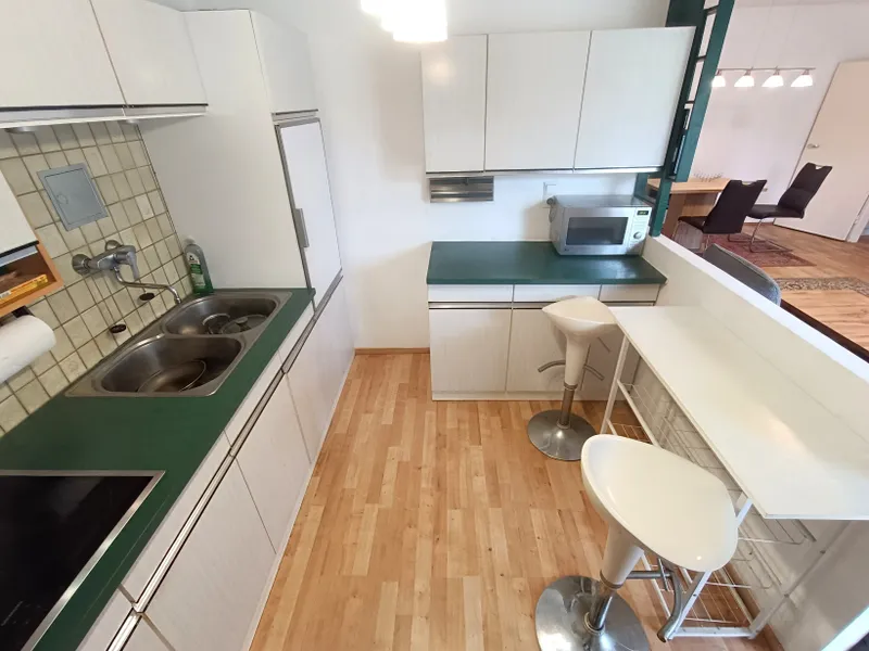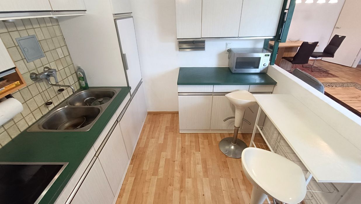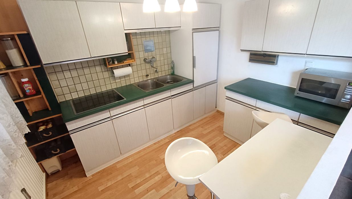 Die Wohnung wurde vom Eigentümer modernisiert, somit können Sie sofort einziehen. Sie verfügt über einen gut geschnittenen Wohnraum, der viel Platz für die persönliche Gestaltung und Einrichtung bietet. Das offene Raumkonzept mit Küche bietet ausreichend Platz für eine großzügige Couch und separaten Essbereich. Die Küche selbst verfügt über Alles was Sie für das entspannte Kochen benötigen - Ceran-Kochfeld, Kühlschrank mit Gefrierfach, Dunstabzug, was fehlt ist lediglich der Geschirrspüler (Anschlüsse vorhanden).