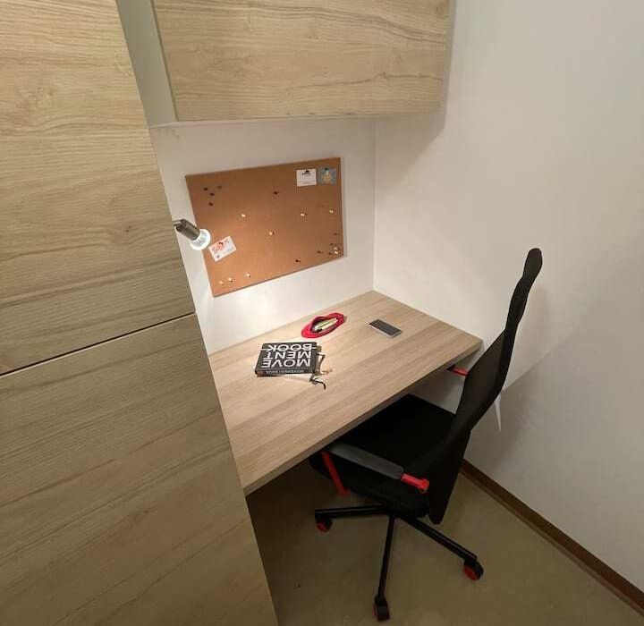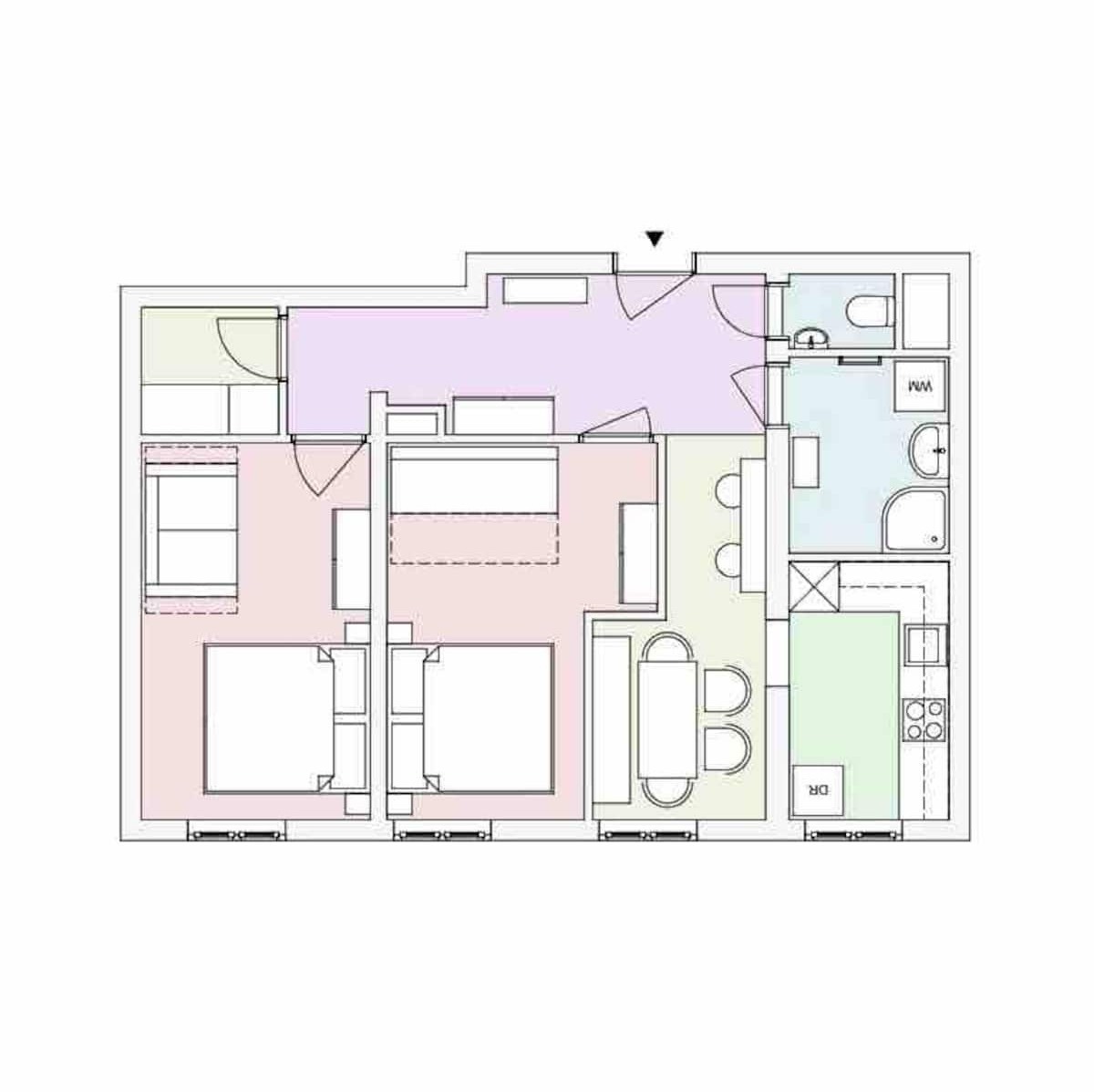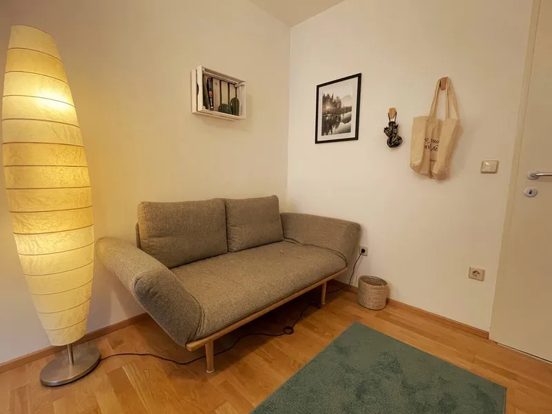 Die Abtrennung zwischen Koch/Essbereich wurde im Trockenbau ausgeführt und könnte einfach entfernt werden (ohne den Boden zu zerstören), sollten Sie kein zweites Schlafzimmer, sondern lieber ein größeres Wohn-Esszimmer benötigen. Lebensumstände ändern sich und diese Wohnung kann sich Ihren Gegebenheiten anpassen. Der kleine, bisher als "Büro" genützte Abstellraum, kann stattdessen natürlich auch als Stauraum benützt werden.