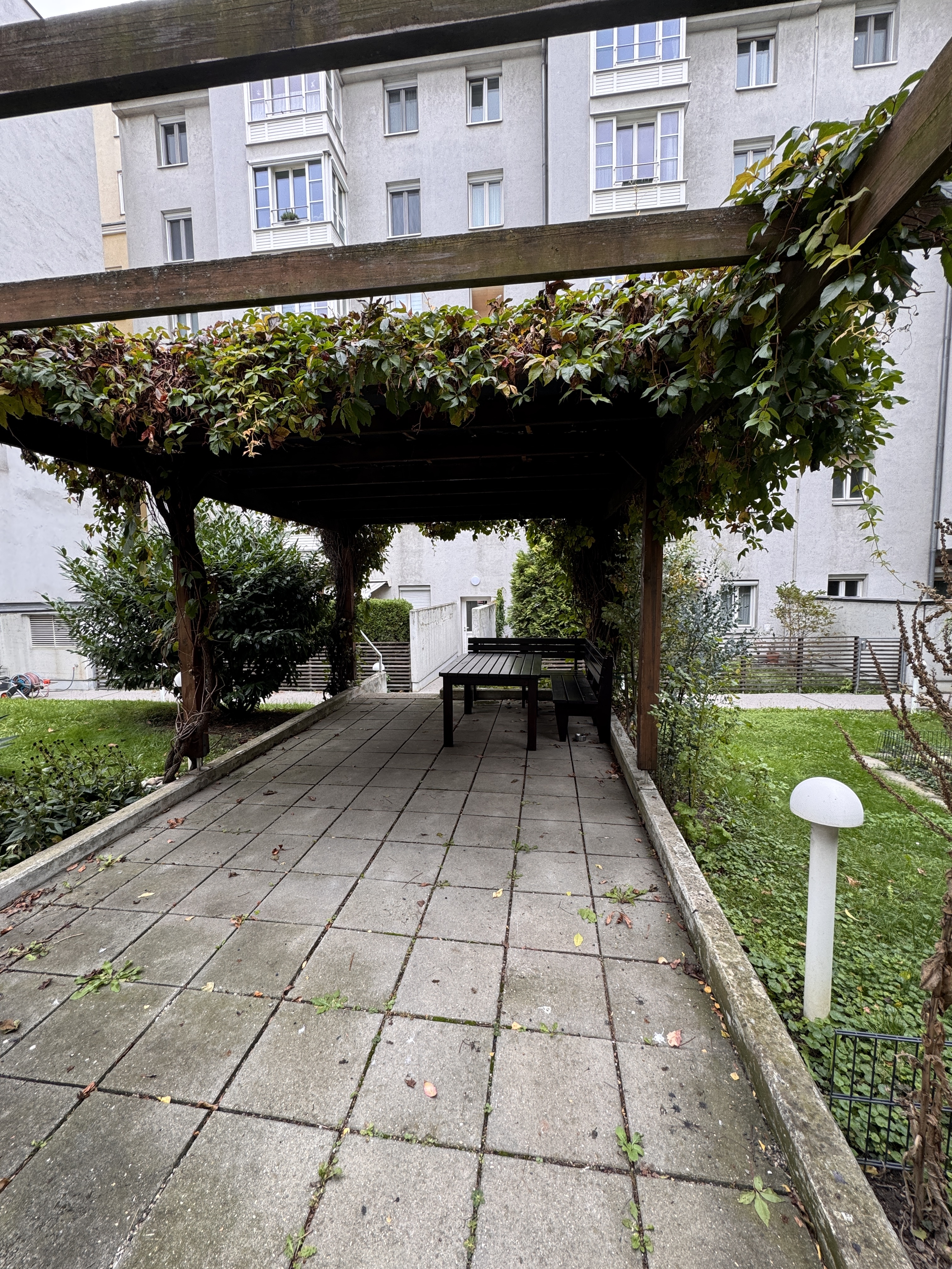 Das Haus wurde 1987 errichtet. Mehrere Stiegen umgeben einen entzückenden Innenhof und Gemeinschaftsgarten, wo die Bewohner die Sonne genießen oder in einer schattigen Laube sitzen können. Für kleine Kinder in der Anlage ist eine Sandkiste vorhanden. Um die Pflege der Gemeinschaftsanlagen kümmert sich eine Hausbetreuungsfirma.