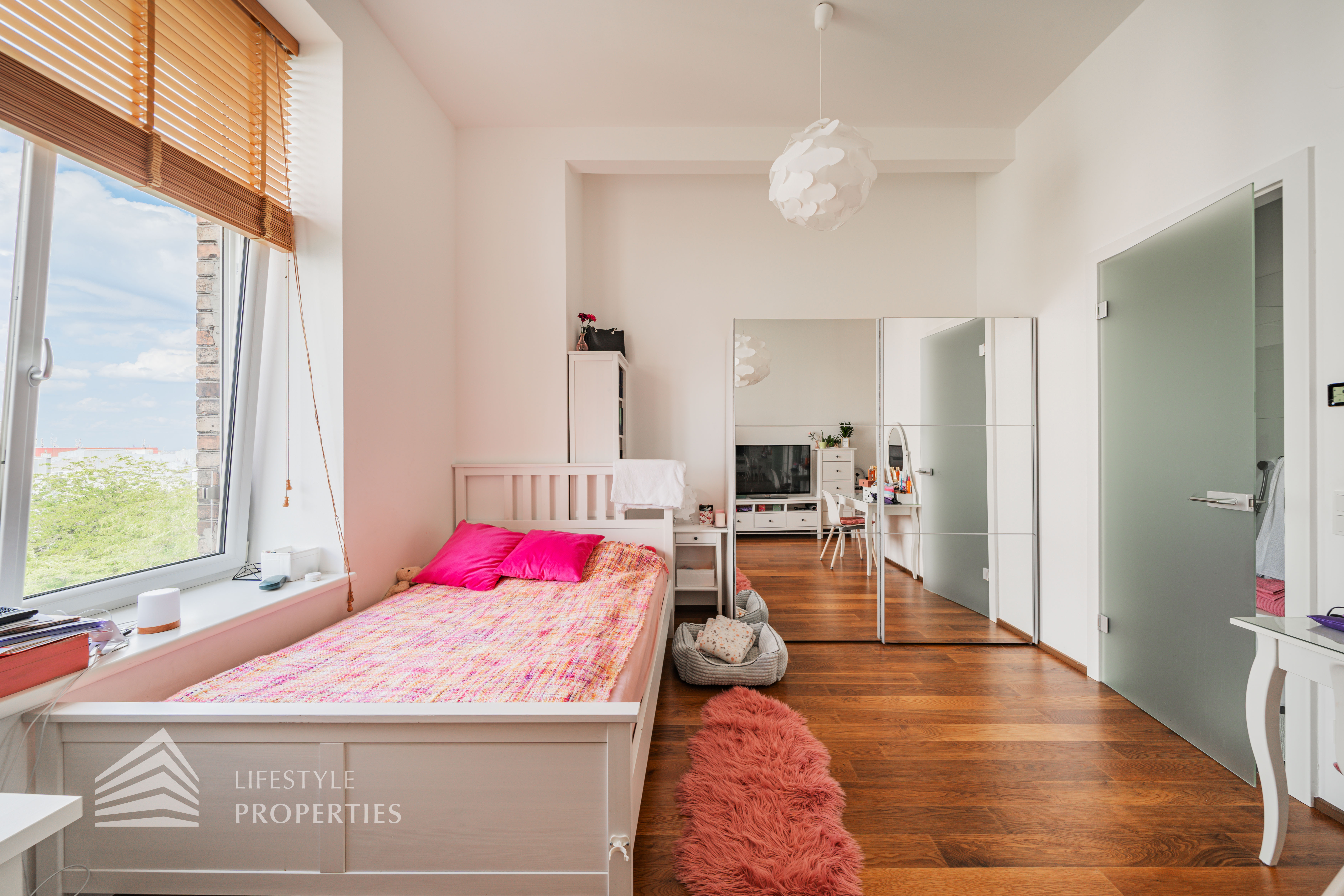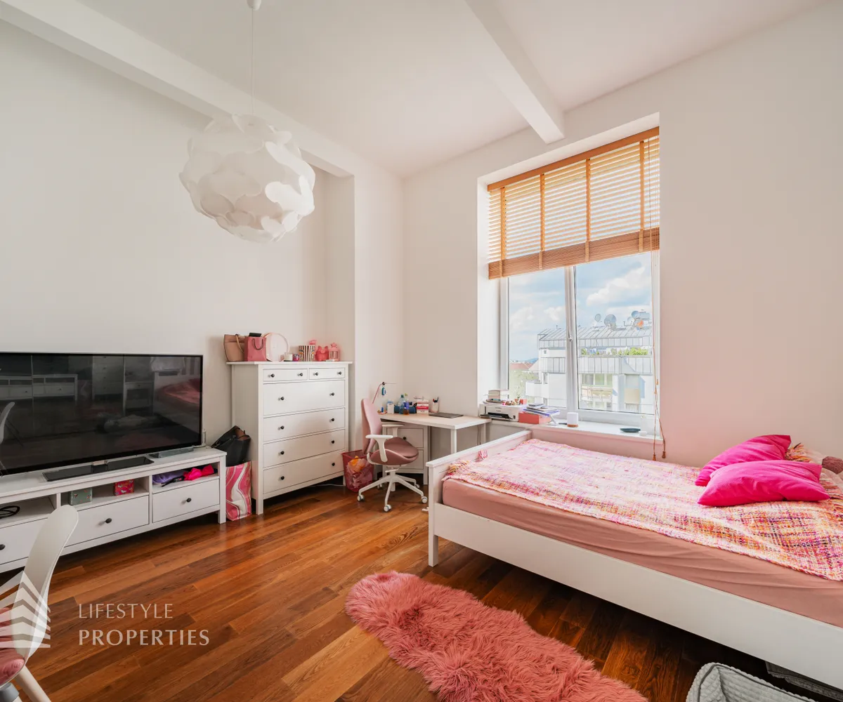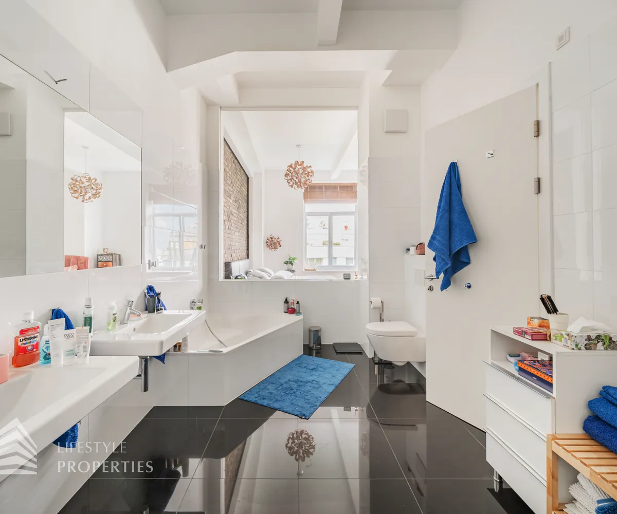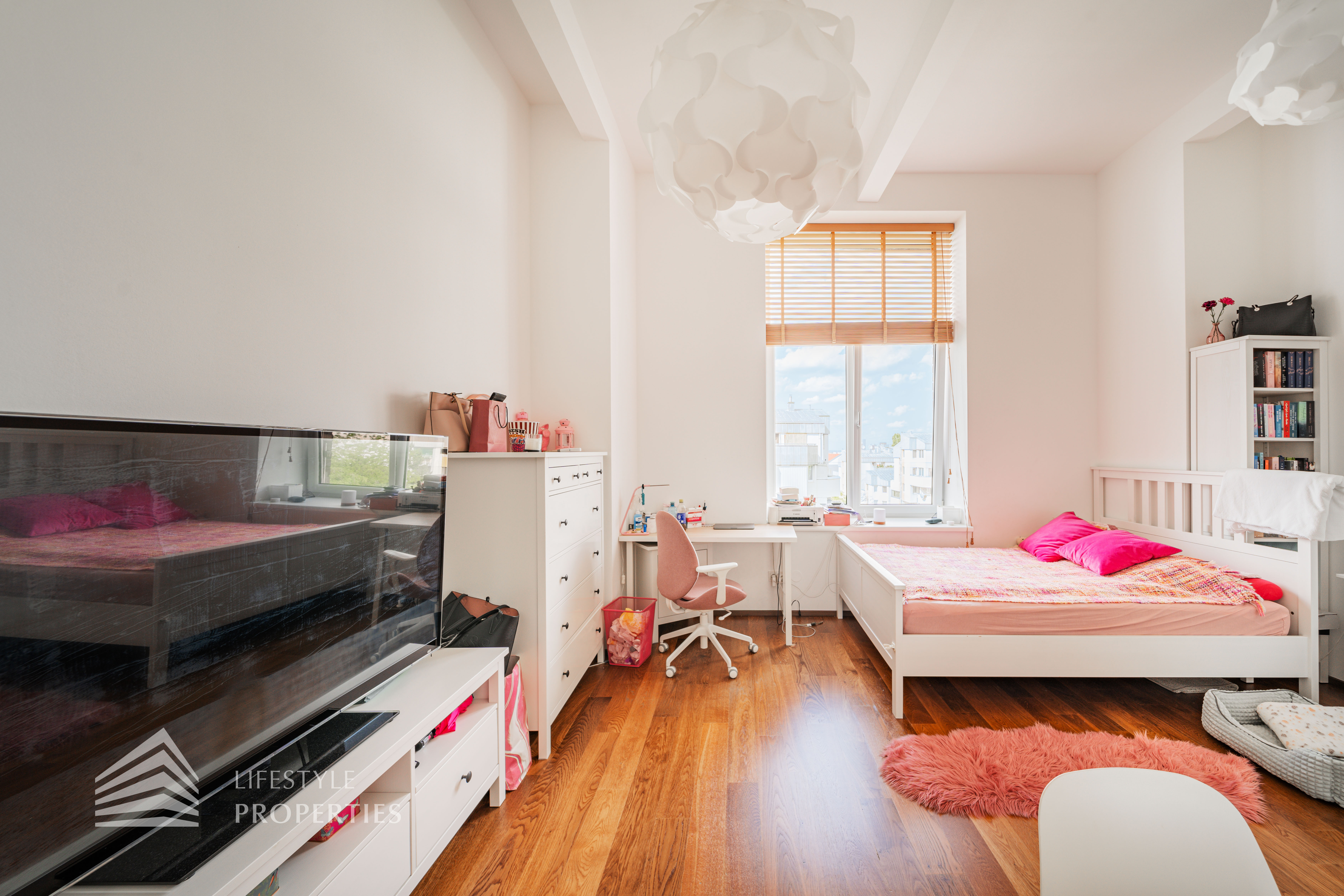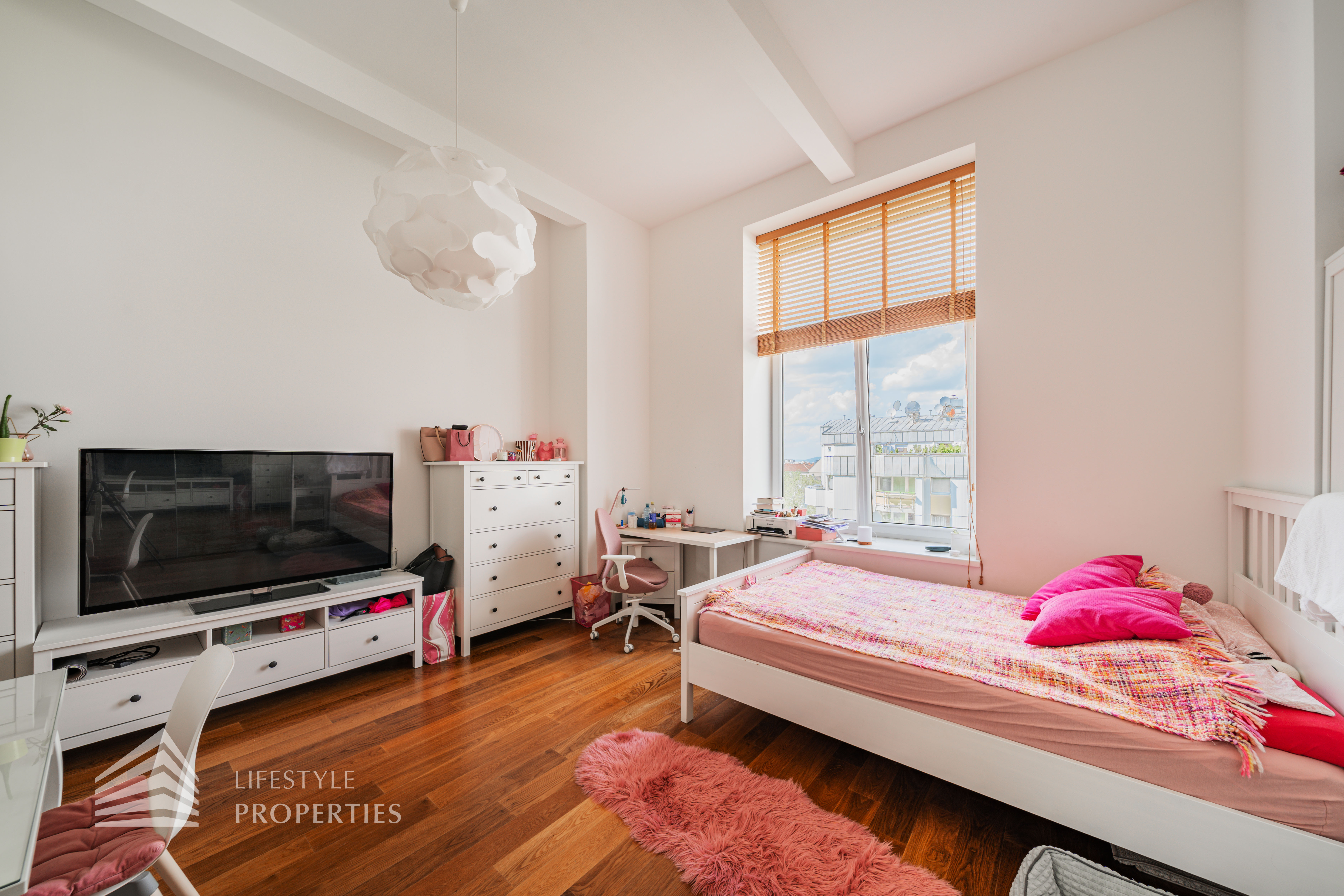 Die Wohnung befindet sich im 4. Liftstock eines im Jahr 1900 erbauten, gepflegten Gebäudes und bietet eine Wohnfläche von ca. 237 m². Sie teilt sich auf in einen Vorraum, eine Garderobe, einen großen Wohn-/Essbereich, zwei weitere Zimmer, zwei Bäder, ein Gäste-WC, einen begehbaren Kleiderschrank sowie einen Abstellraum. Die Haupträume der Immobilie sind mit hochwertigem Parkett ausgekleidet, die Nassräume sind gefliest. Das Highlight des Lofts sind zweifellos die offene Gestaltung der Räume, die Raumhöhe von bis zu ca. 4,2 m sowie der ca. 23 m² große Balkon. Zusätzlich sind dem Objekt ein Tiefgaragenstellplatz sowie ein ca. 6 m² großes Kellerabteil zugeordnet. Der Stellplatz ist im Kaufpreis bereits inbegriffen.