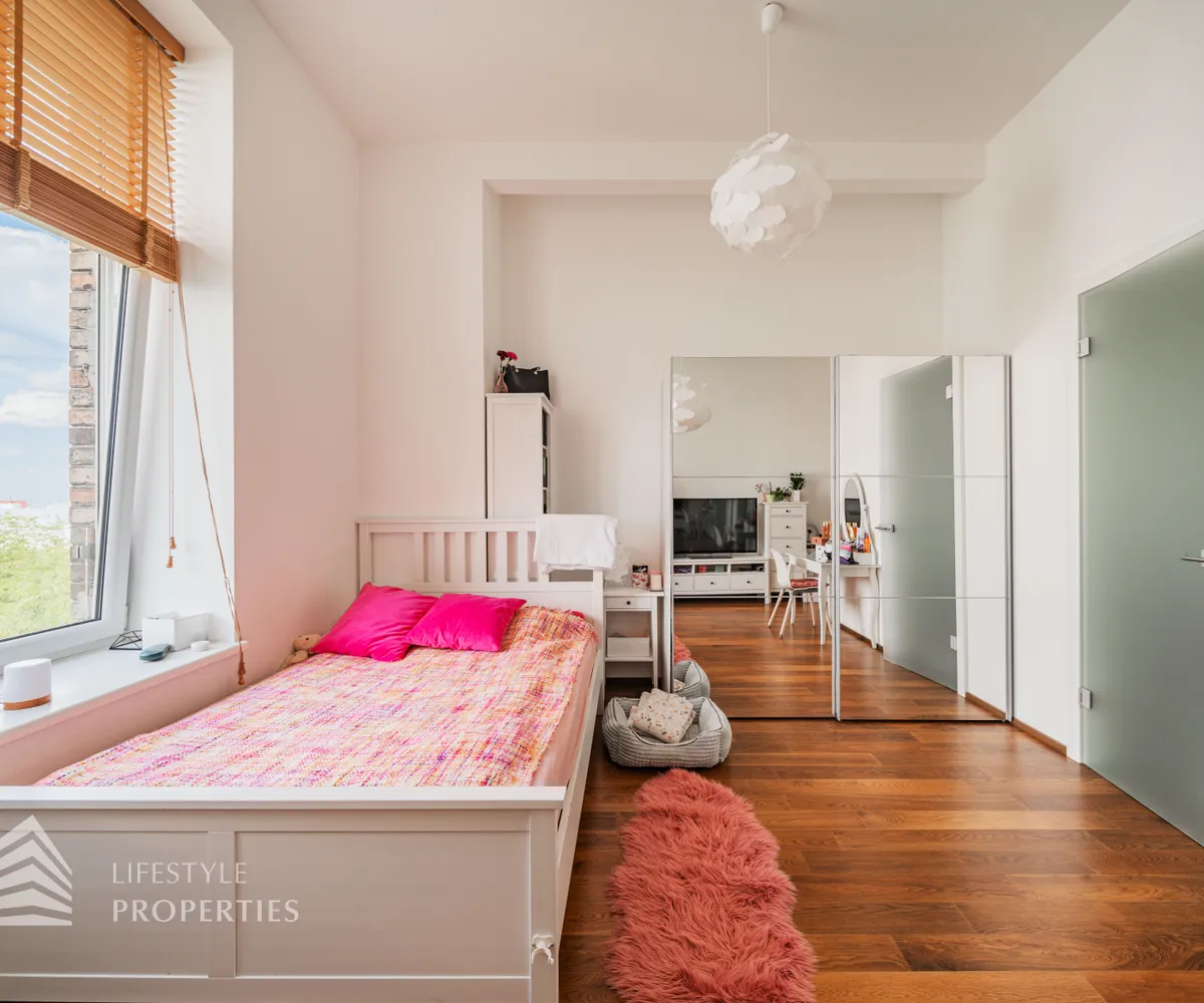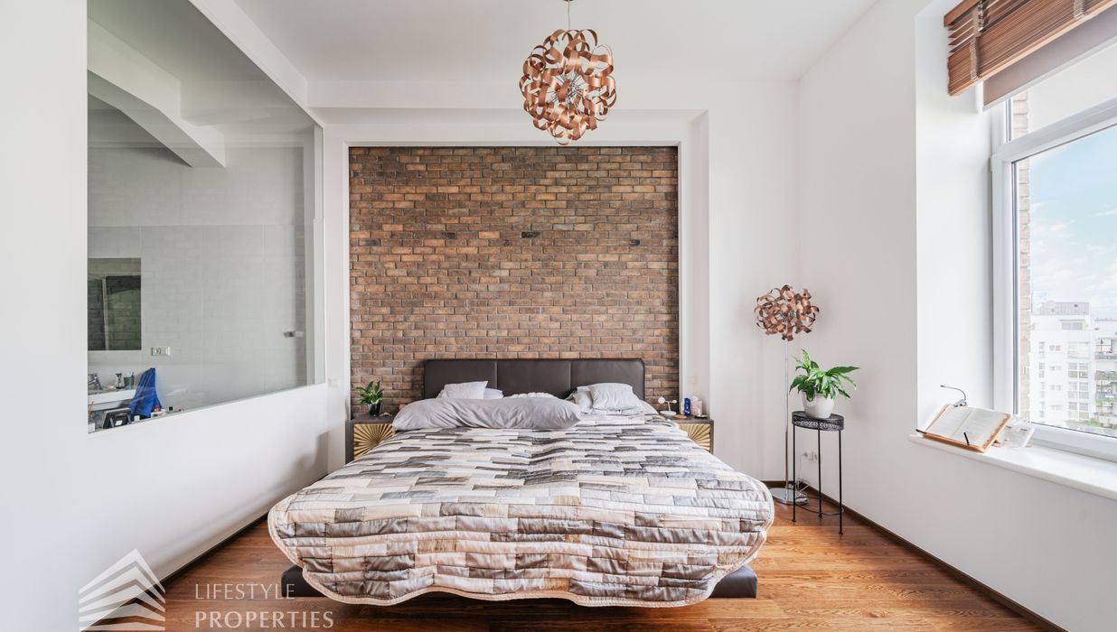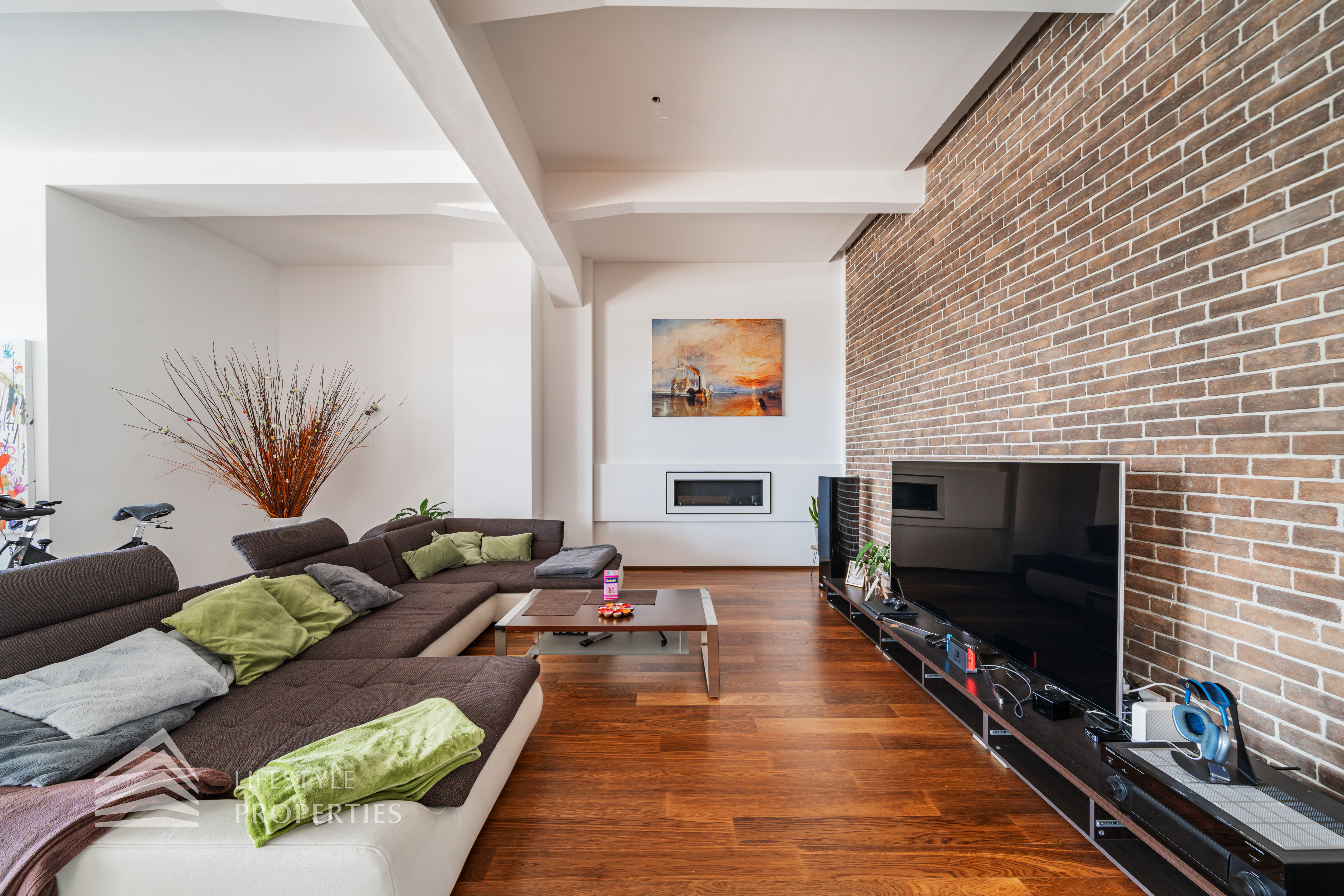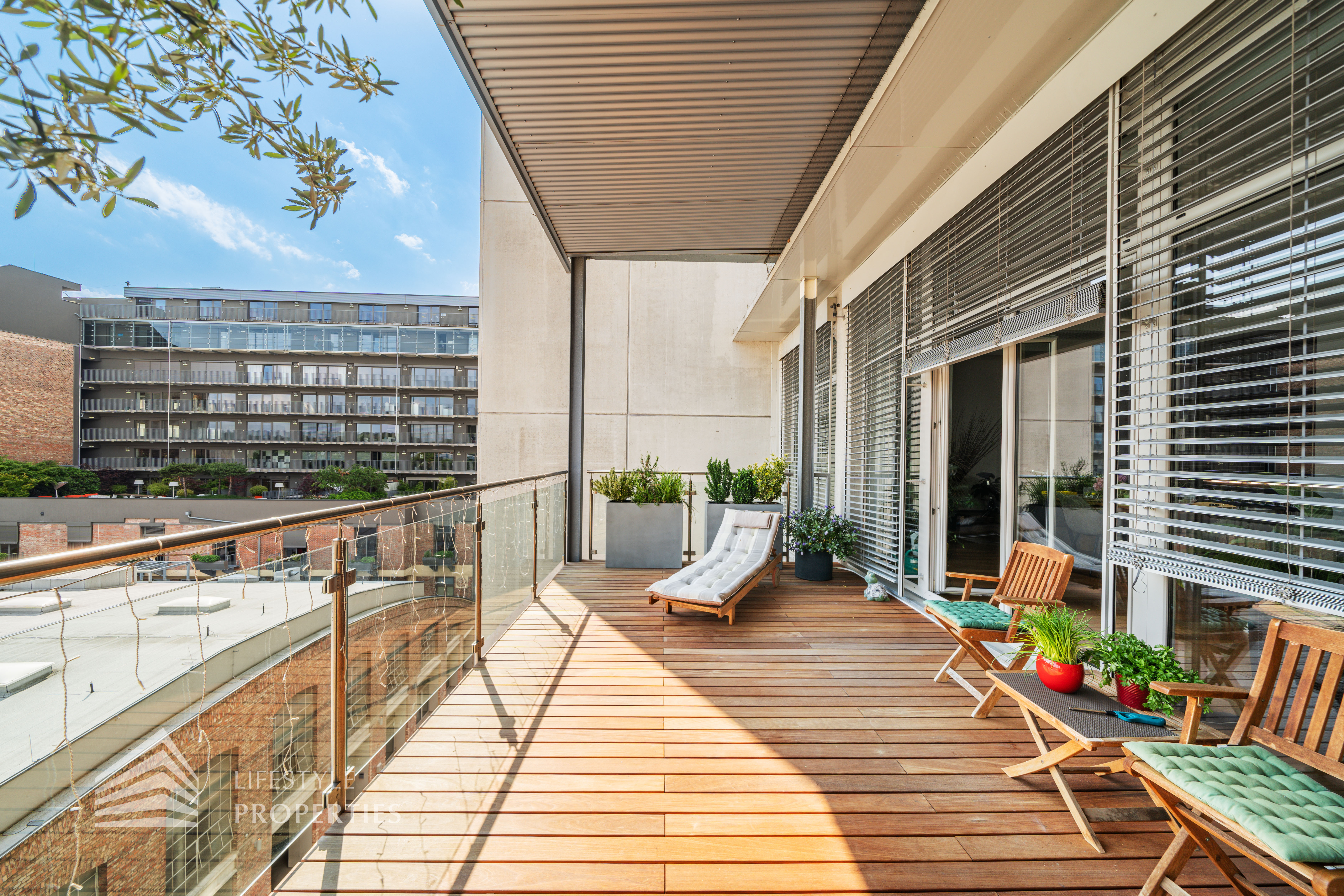 Bei Betreten der Wohnung gelangen Sie in einen kleinen Vorraum mit zusätzlicher Garderobe. Linkerhand erreichen Sie direkt den ca. 144 m² großen Wohn-/Essbereich, welcher durch die offene Raumgestaltung sowie die vielen Fensterfronten eine besonders einladende Atmosphäre schafft. Der Raum lässt sich ideal in einen Wohn- sowie einen Koch- und Essbereich unterteilen. Im Wohnbereich finden Sie einen Ethanol Kamin vor, welcher für besondere Gemütlichkeit sorgt. Die moderne Maßküche mit Kücheninsel und Granitstein ist mit hochwertigen Geräten der Marke Siemens sowie mit einem Induktionsherd ausgestattet. Vom Wohn-/Essbereich gelangen Sie auf den ca. 23 m² großen Balkon, welcher zum Verweilen an der frischen Luft einlädt. Außerdem führt Sie der Raum zu den beiden weiteren Zimmern. Den ca. 18 m² großen Master Bedroom erreichen Sie über einen ca. 7 m² großen, begehbaren Kleiderschrank. Nebenan, ebenfalls über den begehbaren Kleiderschrank betretbar, treffen Sie auf ein großzügiges Badezimmer mit zwei Waschbecken, einer Doppeldusche, einer Badewanne sowie einem separaten WC. Dieses bietet über eine Glaswand einen direkten Blick in den Schlafbereich. Das dritte, ca. 20 m² große Zimmer verfügt über ein Bad en Suite mit Waschbecken, Dusche und WC. Ein großes Fenster versorgt den Raum mit viel Tageslicht. Zusätzlich verfügt die Immobilie über einen ca. 10 m² großen Abstellraum sowie ein Gäste-WC mit Waschbecken, welche beide vom Wohn-/Essbereich aus betreten werden können.