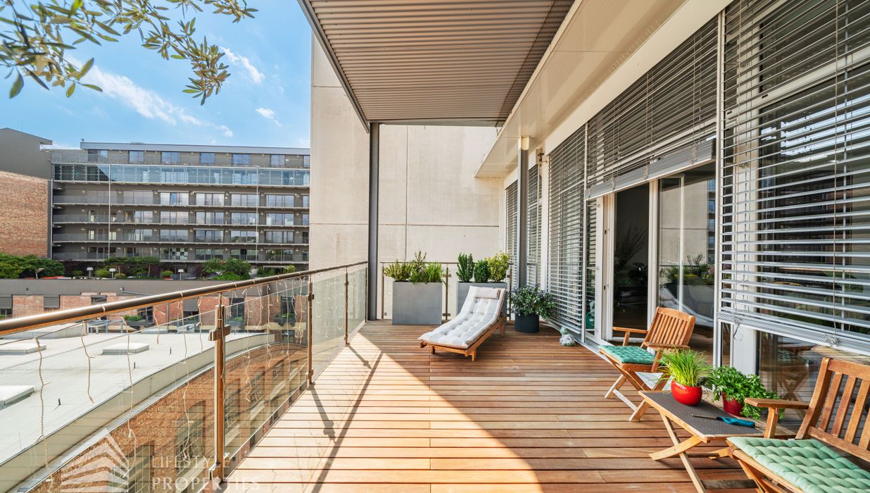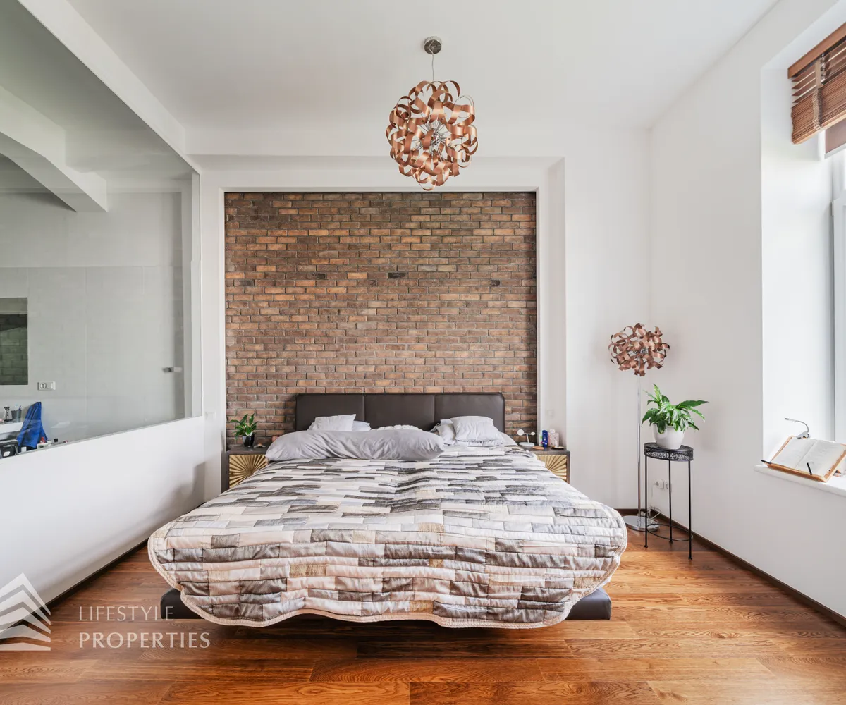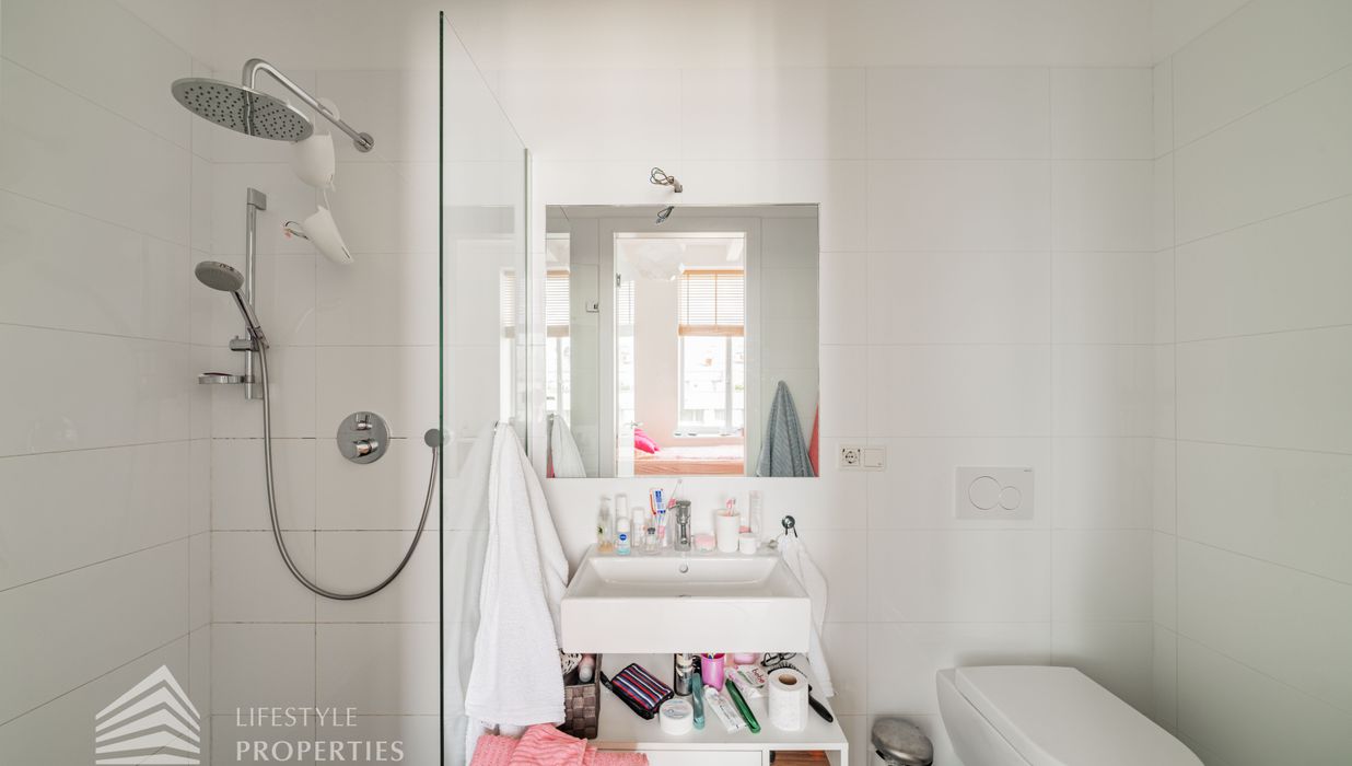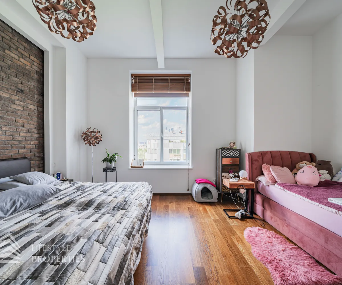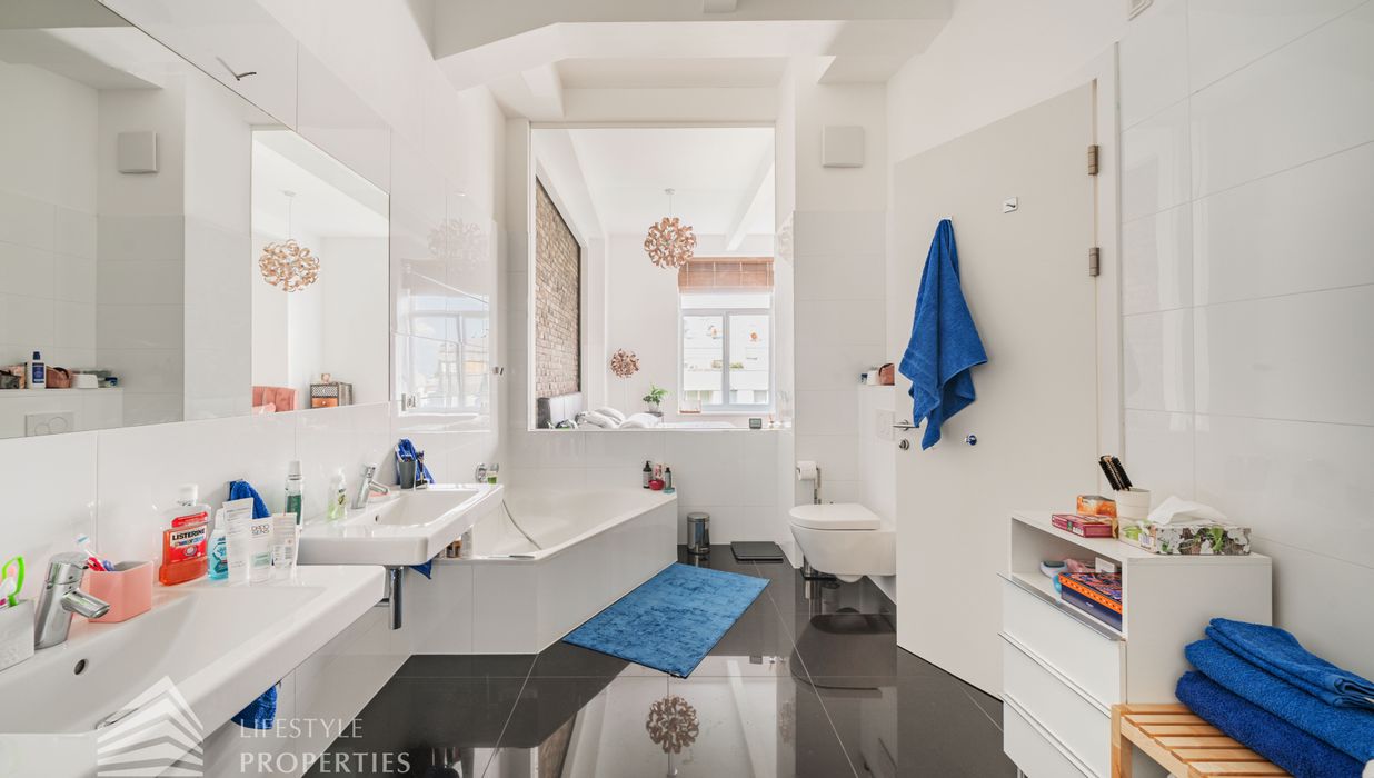 Bei Betreten der Wohnung gelangen Sie in einen kleinen Vorraum mit zusätzlicher Garderobe. Linkerhand erreichen Sie direkt den ca. 144 m² großen Wohn-/Essbereich, welcher durch die offene Raumgestaltung sowie die vielen Fensterfronten eine besonders einladende Atmosphäre schafft. Der Raum lässt sich ideal in einen Wohn- sowie einen Koch- und Essbereich unterteilen. Im Wohnbereich finden Sie einen Ethanol Kamin vor, welcher für besondere Gemütlichkeit sorgt. Die moderne Maßküche mit Kücheninsel und Granitstein ist mit hochwertigen Geräten der Marke Siemens sowie mit einem Induktionsherd ausgestattet. Vom Wohn-/Essbereich gelangen Sie auf den ca. 23 m² großen Balkon, welcher zum Verweilen an der frischen Luft einlädt. Außerdem führt Sie der Raum zu den beiden weiteren Zimmern. Den ca. 18 m² großen Master Bedroom erreichen Sie über einen ca. 7 m² großen, begehbaren Kleiderschrank. Nebenan, ebenfalls über den begehbaren Kleiderschrank betretbar, treffen Sie auf ein großzügiges Badezimmer mit zwei Waschbecken, einer Doppeldusche, einer Badewanne sowie einem separaten WC. Dieses bietet über eine Glaswand einen direkten Blick in den Schlafbereich. Das dritte, ca. 20 m² große Zimmer verfügt über ein Bad en Suite mit Waschbecken, Dusche und WC. Ein großes Fenster versorgt den Raum mit viel Tageslicht. Zusätzlich verfügt die Immobilie über einen ca. 10 m² großen Abstellraum sowie ein Gäste-WC mit Waschbecken, welche beide vom Wohn-/Essbereich aus betreten werden können.