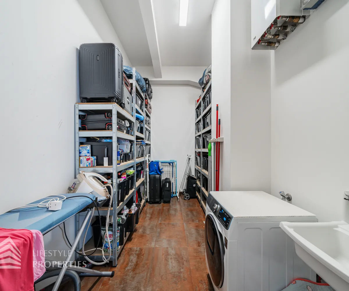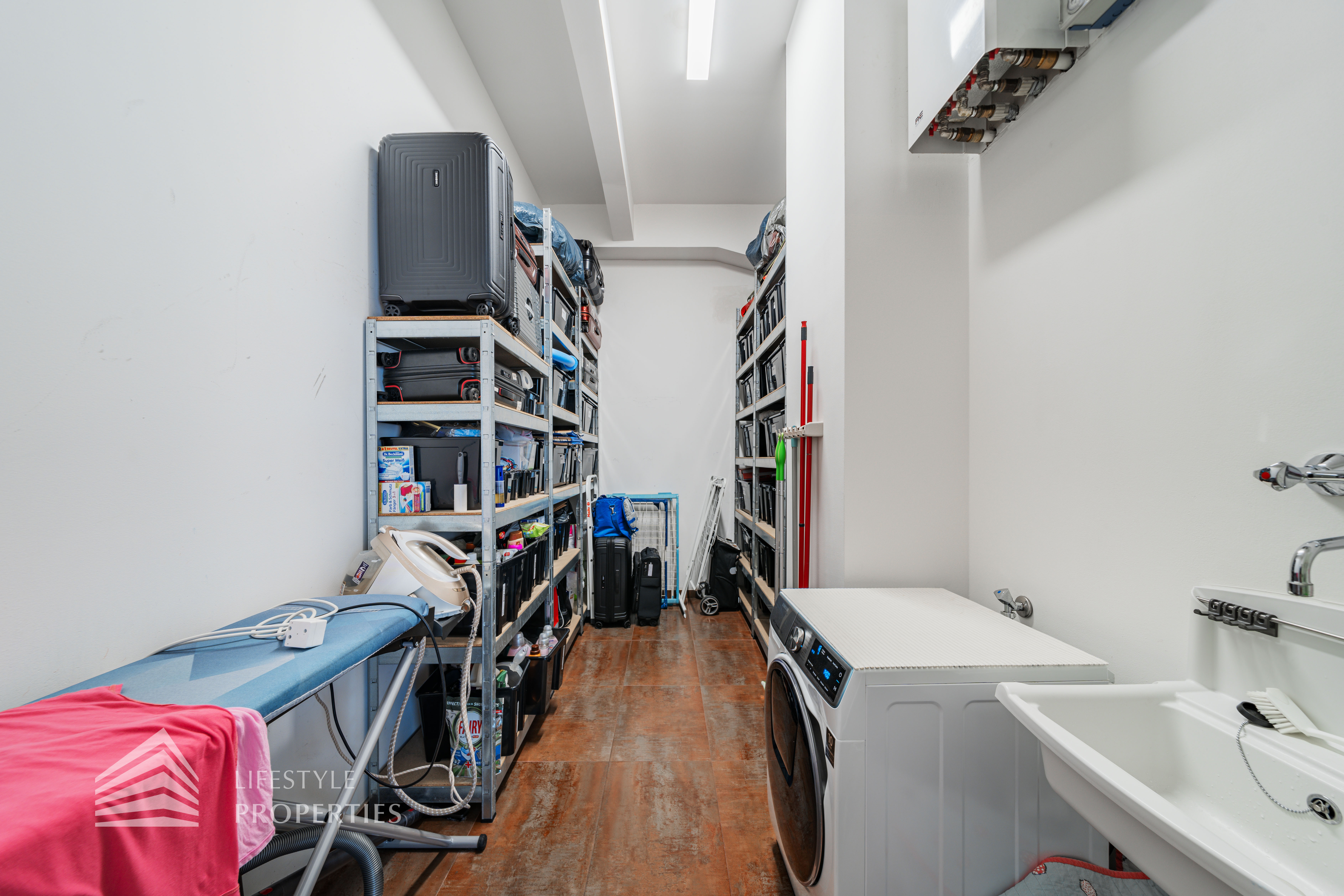 Beheizt wird die Immobilie mittels Fußbodenheizung. Für Abkühlung im Sommer sorgt eine Klimaanlage. Zur hochwertigen Ausstattung des Objekts zählen außerdem eine Alarmanlage, eine Sicherheitstüre, Smart Home sowie elektrische Außenjalousien. Die Wohnung verfügt zudem über zwei Eingänge.