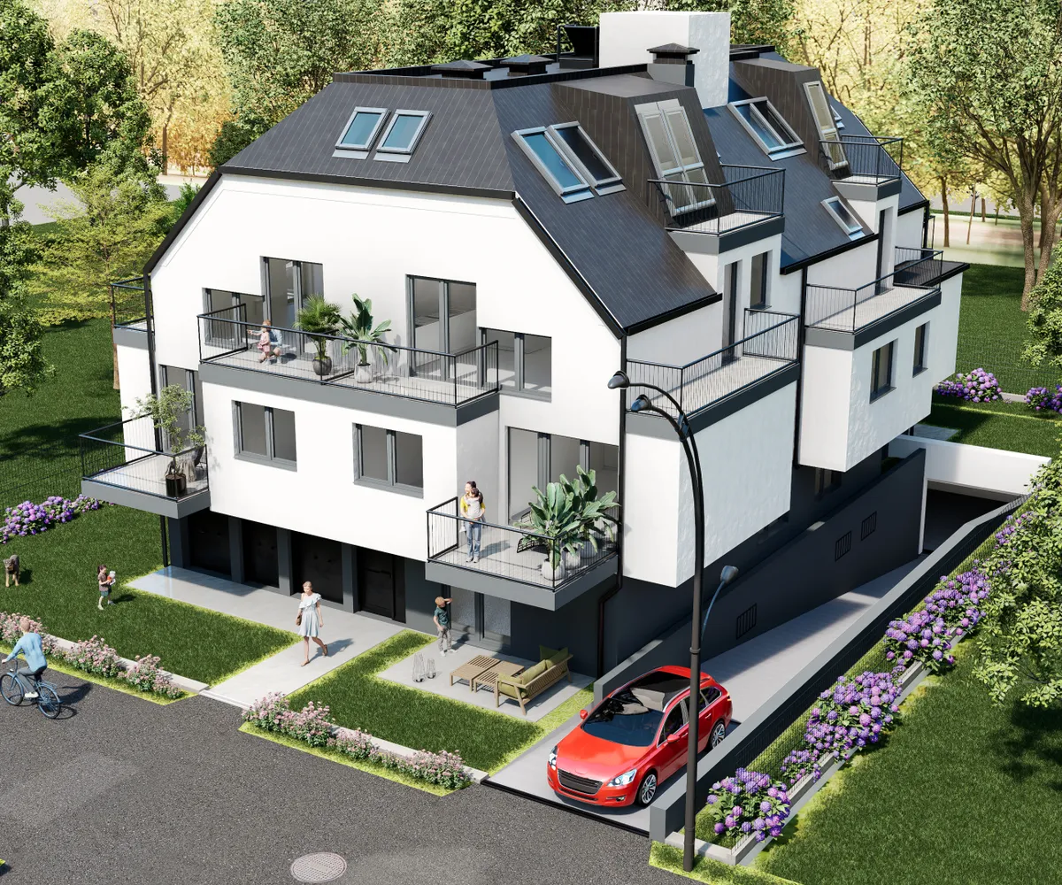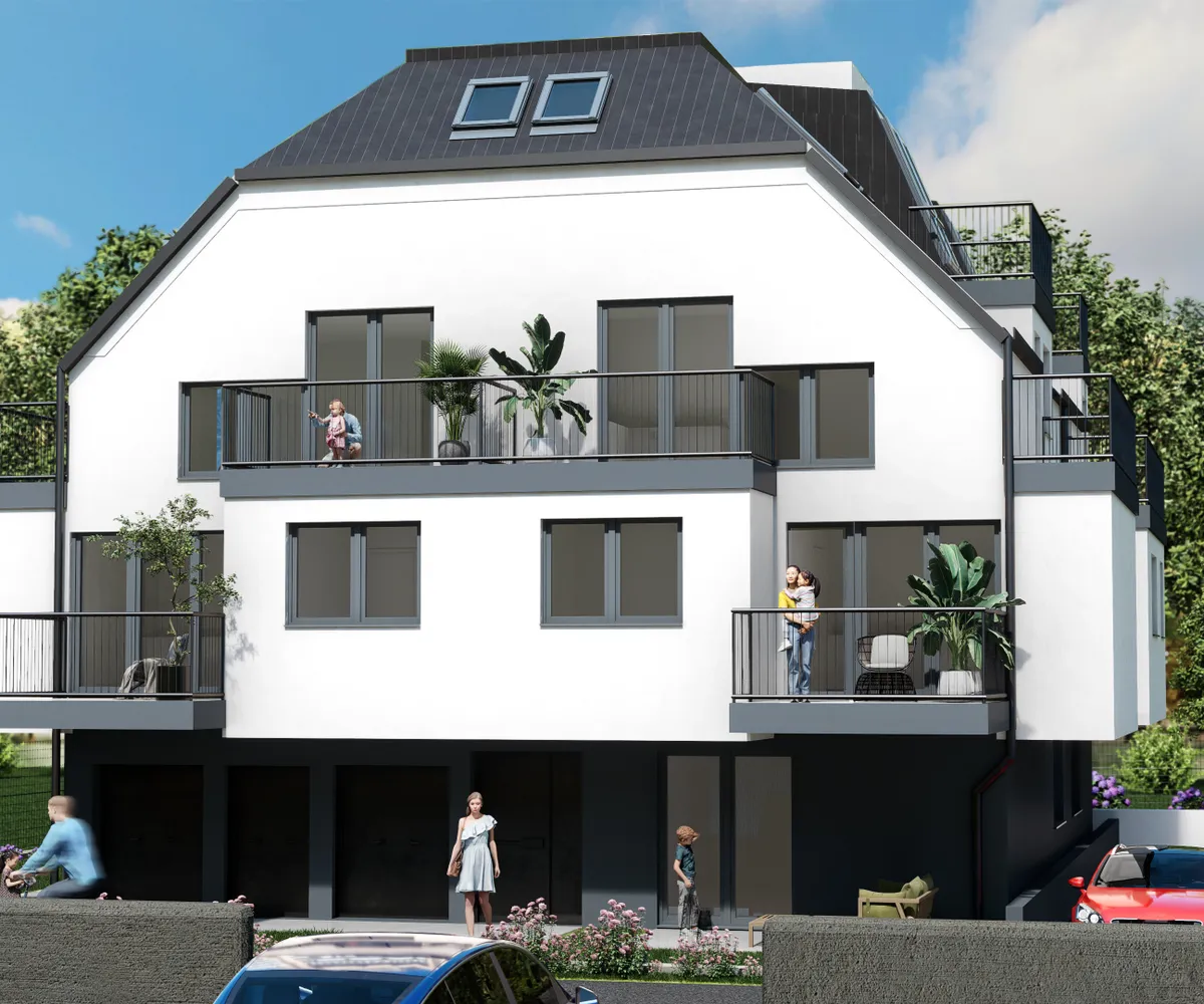 Die Wohnung befindet sich im ersten Stock, der bequem mit dem Aufzug erreichbar ist, und erstreckt sich über eine großzügige Wohnfläche von etwa 60 m². Sie gliedert sich in eine Wohnküche, zwei Zimmer, ein Bad mit WC und ein separates Gäste-WC. Zusätzlich verfügt die Wohnung über eine etwa 5 m² große Loggia und einen ca. 4 m² großen Balkon. Die Hauptbereiche der Wohnung sind mit hellem Parkettboden ausgestattet, während die Nassräume moderne Fliesen aufweisen. Die Beheizung erfolgt mittels einer Luftwärmepumpe. Fußbodenheizung, dreifach verglaste Kunststofffenster und Terrassentüren mit außenliegendem Sonnenschutz sind weitere Annehmlichkeiten. Das Objekt verfügt über 6 Garagenplätze, die zusätzlich zum Preis von 45.000 pro Platz erworben werden können.