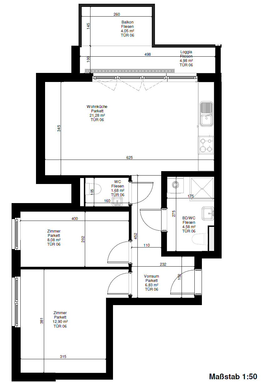 Zum Verkauf gelangt eine 3-Zimmer Wohnung mit Loggia und Balkon im 22. Wiener Gemeindebezirk in der Nähe des Oberen Mühlwassers.