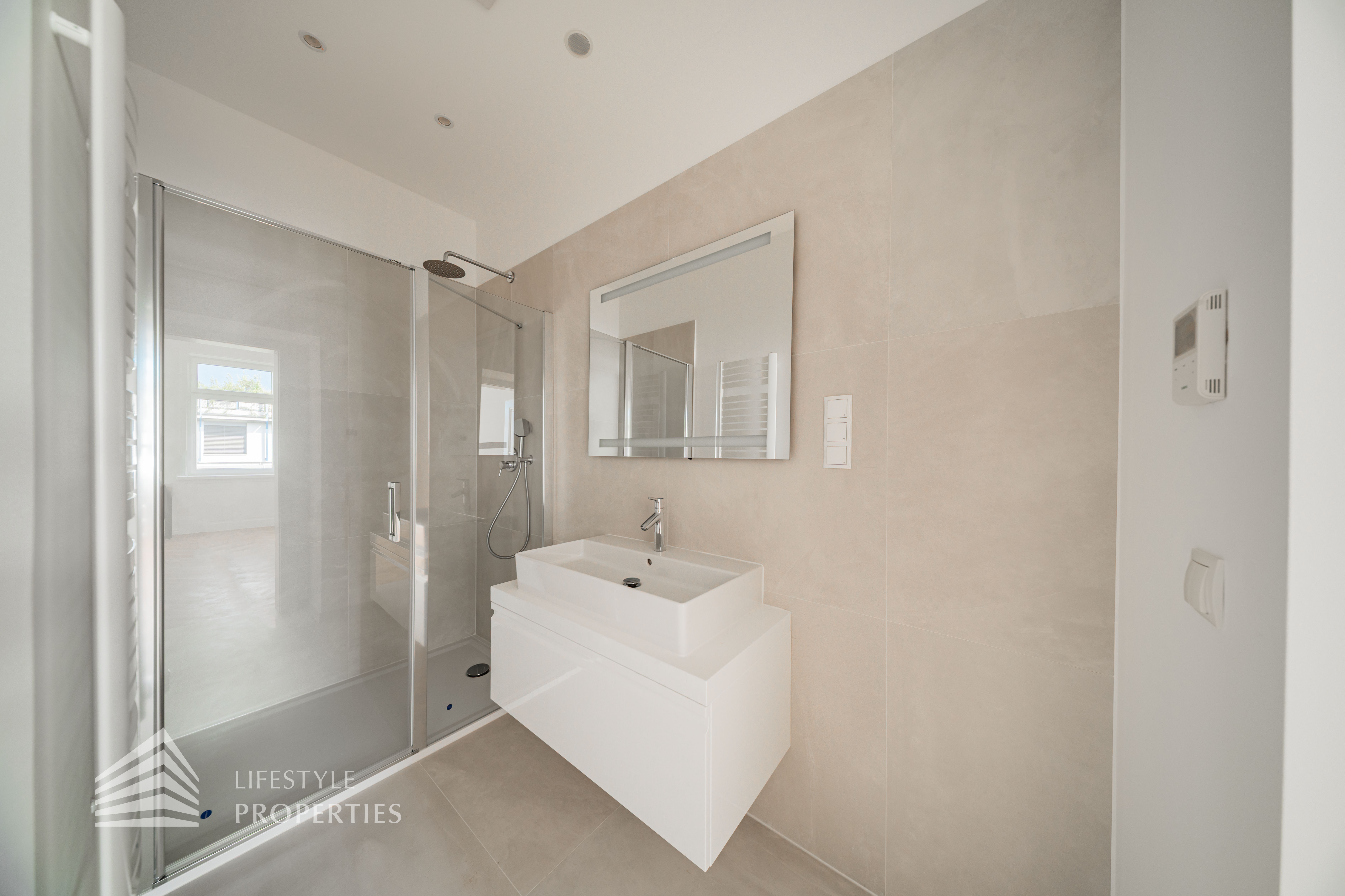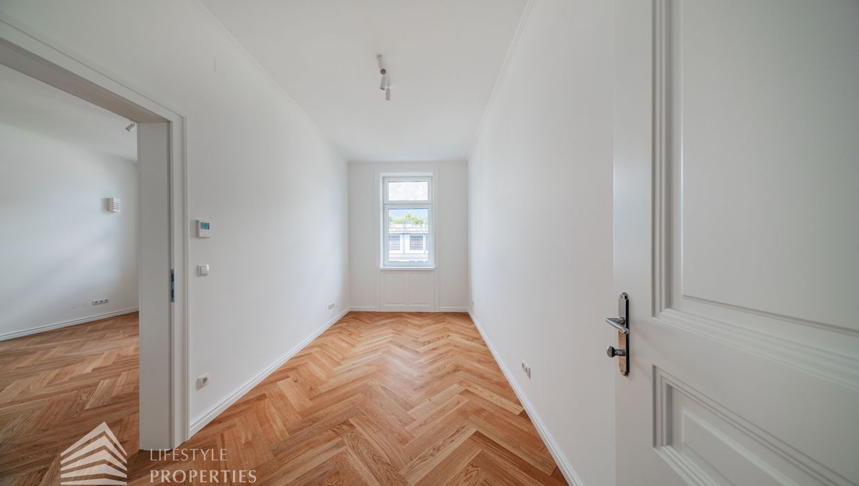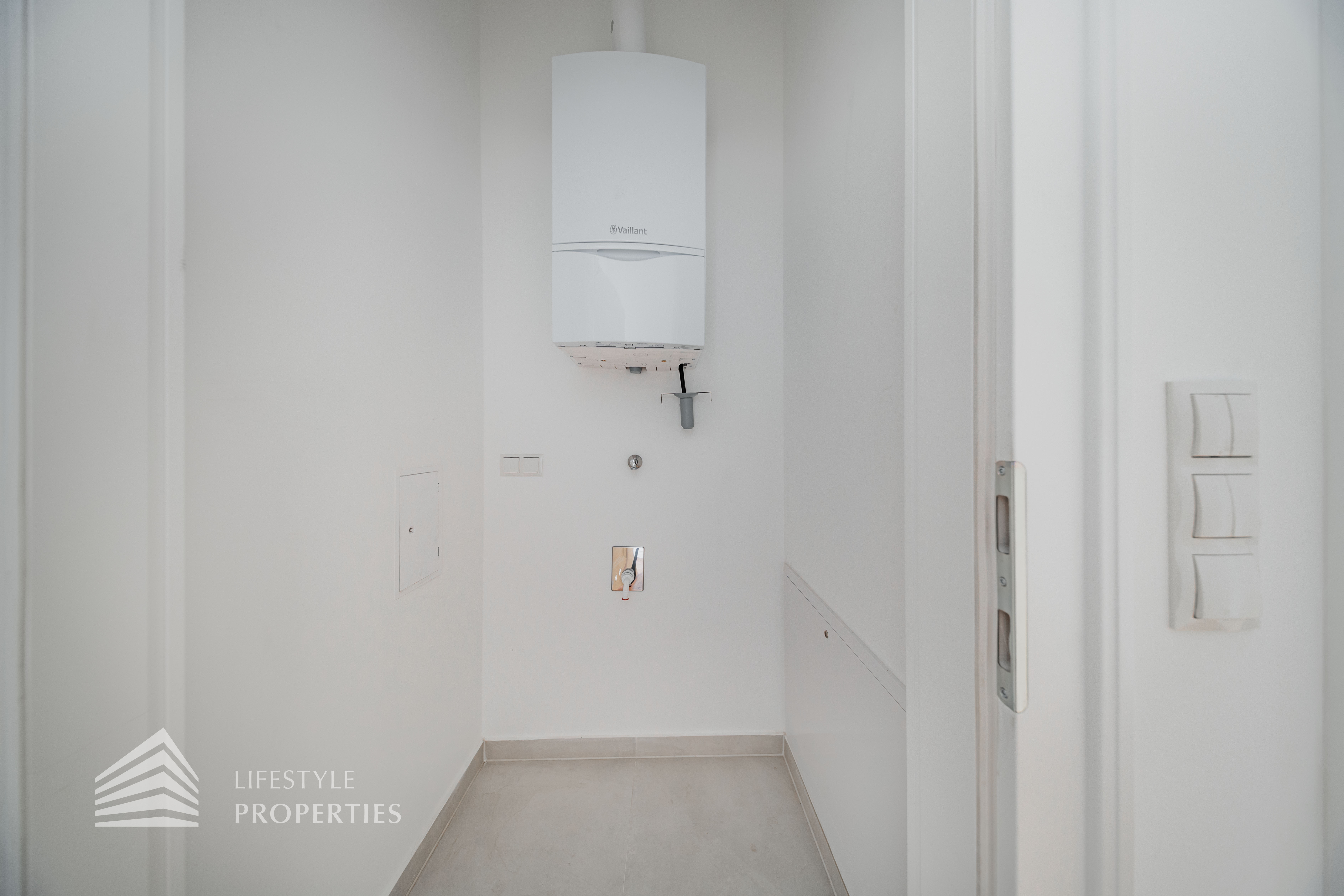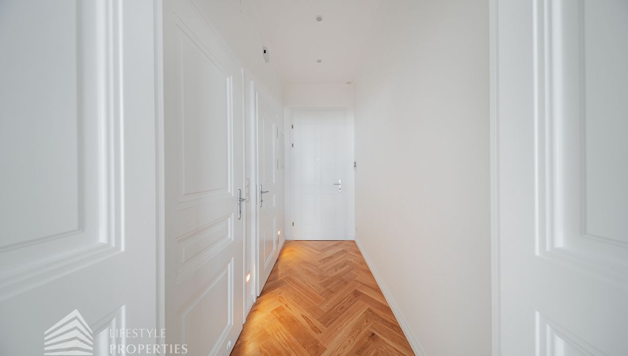 Die Wohnung befindet sich im 4. Stock eines traditionellen Altbaus aus dem Jahre 1900 und bietet eine Wohnfläche von ca. 47 m². Sie teilt sich in ein Schlafzimmer, eine Wohnküche, ein Badezimmer, einen Abstellraum und eine Toilette auf. Die Wohnräume sind mit elegantem Parkett ausgekleidet und die Nassräume mit modernen Fliesen verlegt. Die Wohnung wird mittels Fußbodenheizung beheizt.