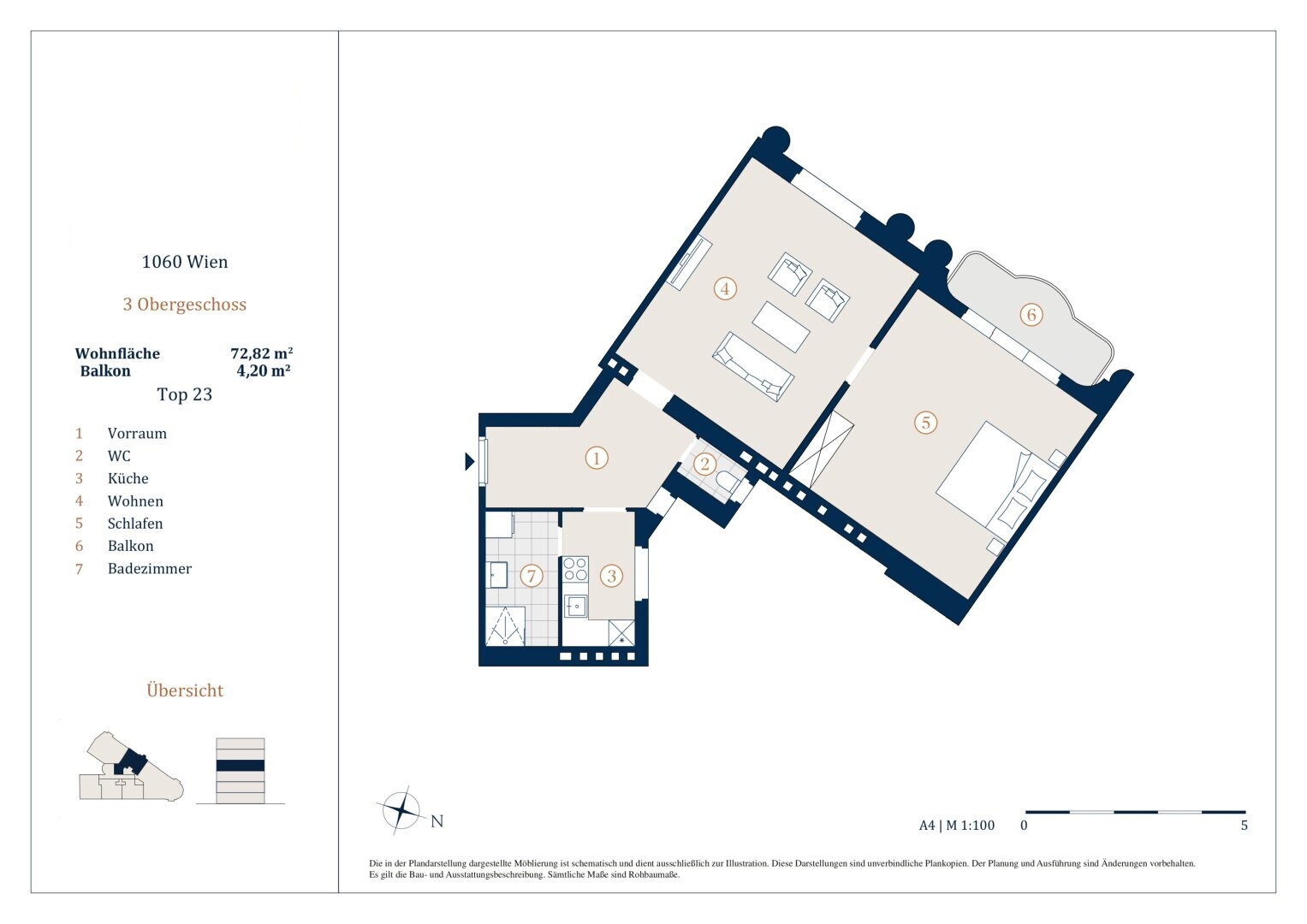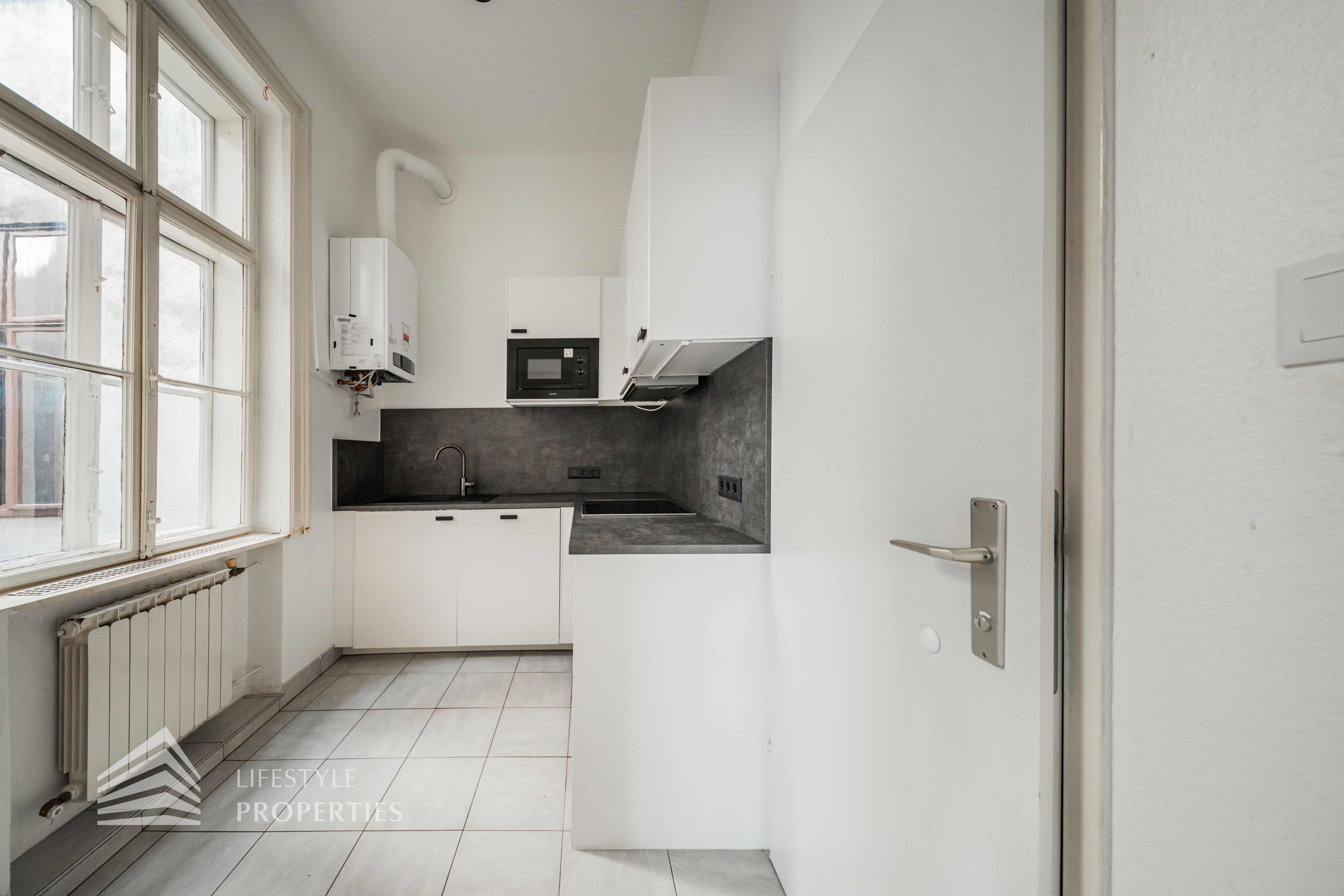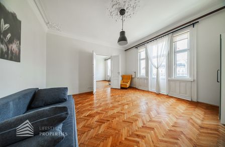 Die Wohnung befindet sich im 3. Stock eines schönen Stilaltbaus aus dem Jahr 1897 und gliedert sich in einen Vorraum, eine Küche, ein Wohnzimmer, ein Badezimmer und ein separates WC. Die Wohnung ist möbliert.