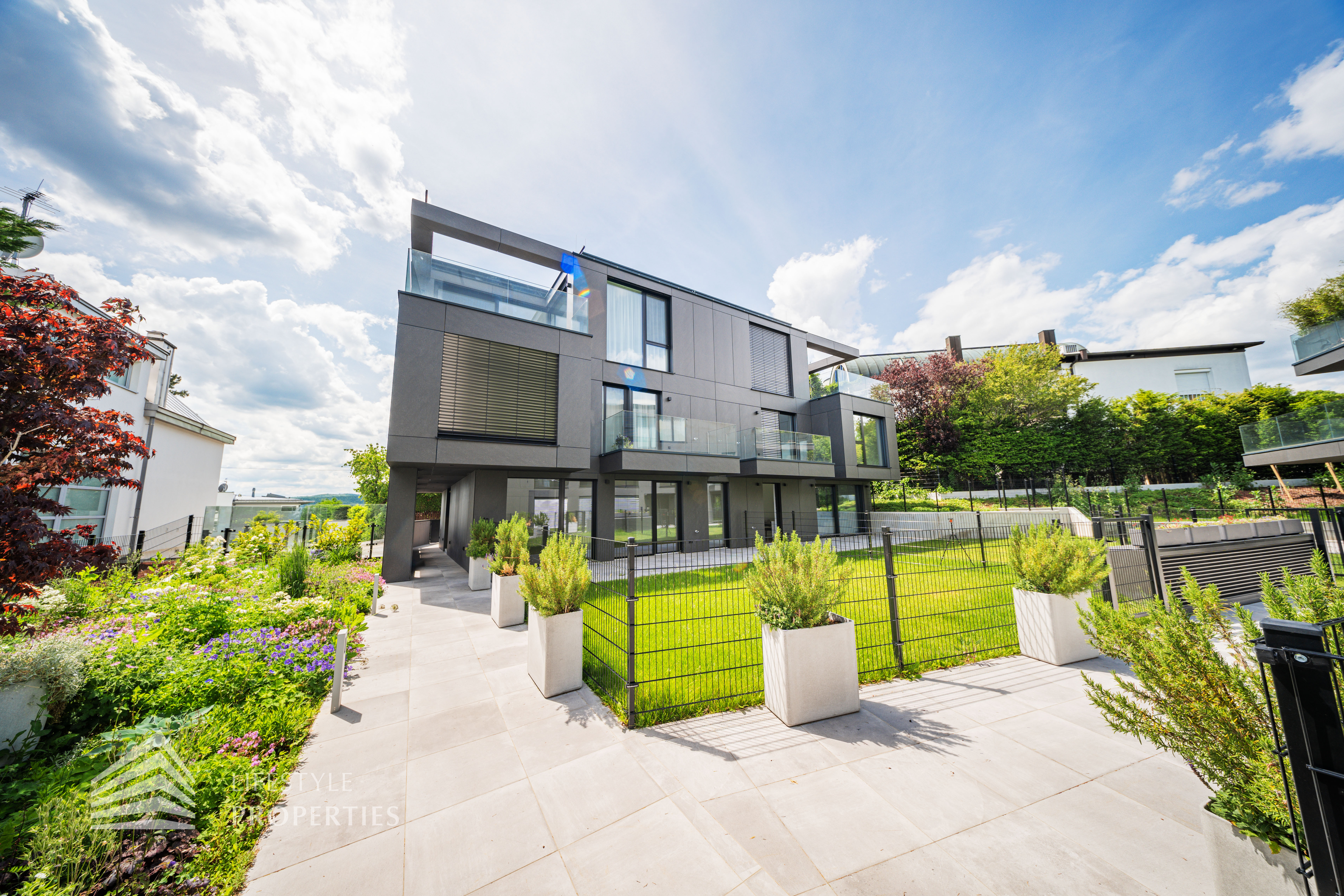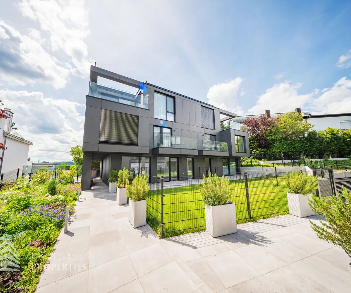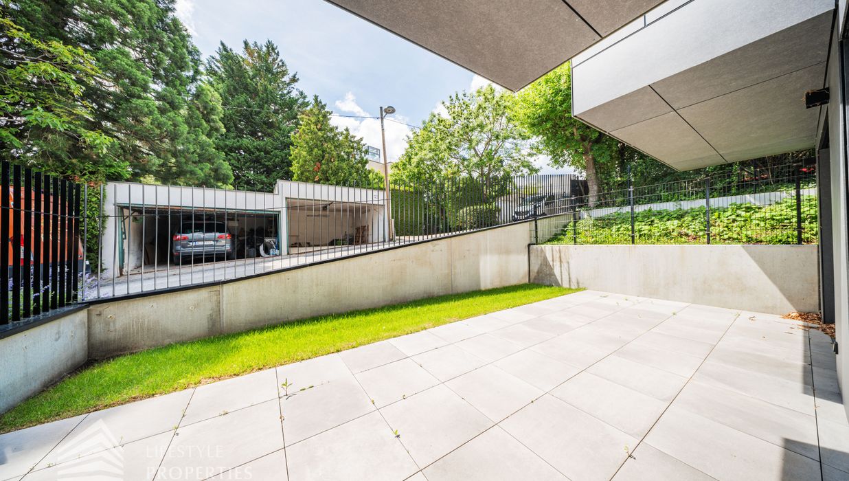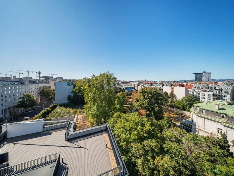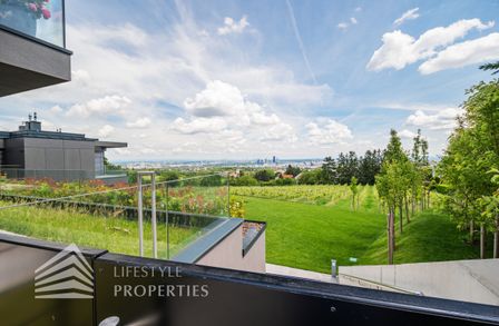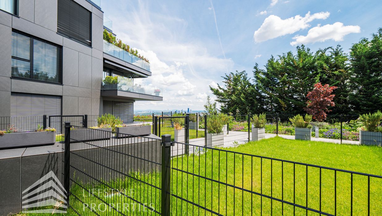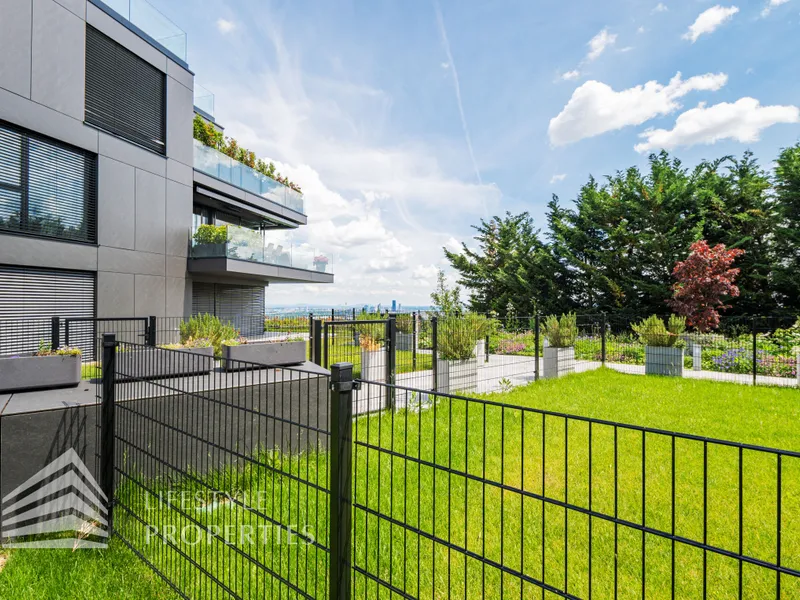 großen Garten, welcher Sie um die gesamte Wohnung führt. Hier haben Sie einen atemberaubenden Fernblick auf Wien.
