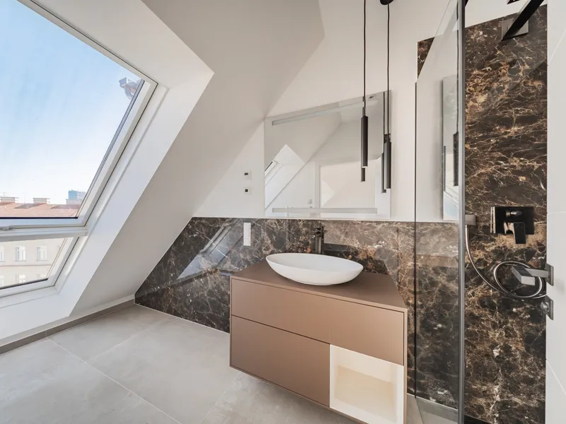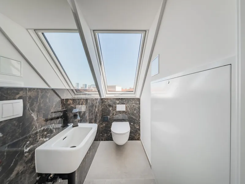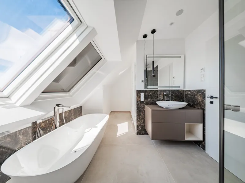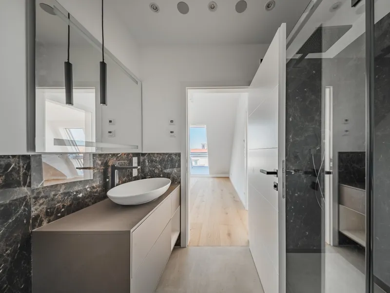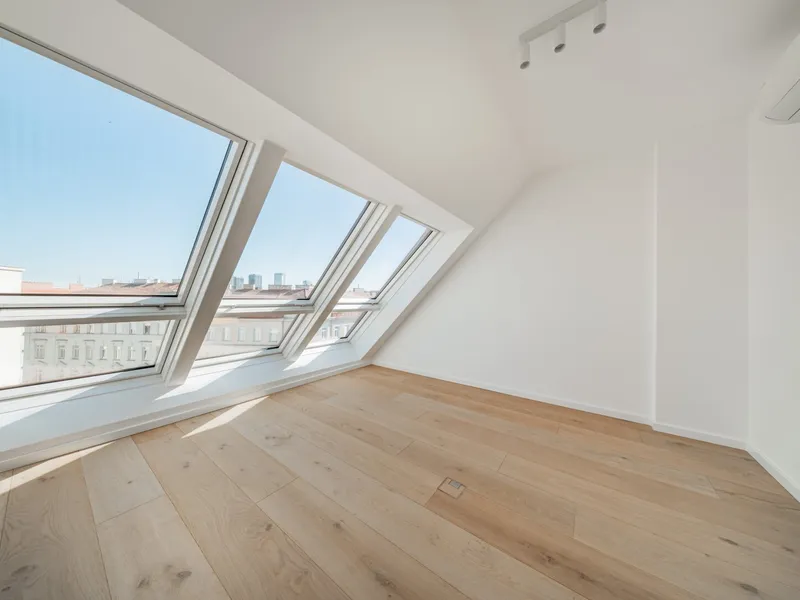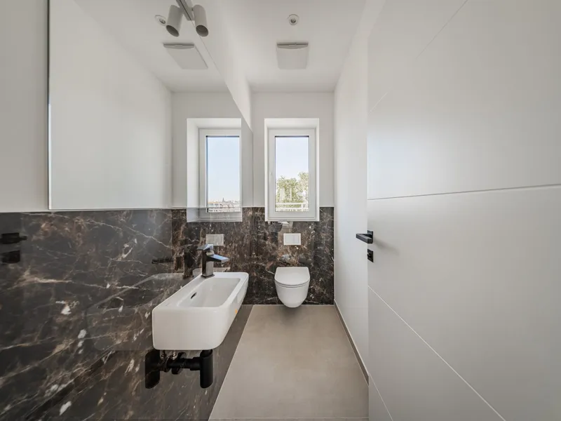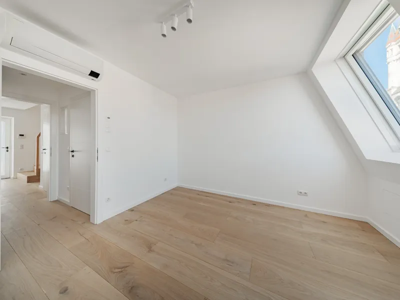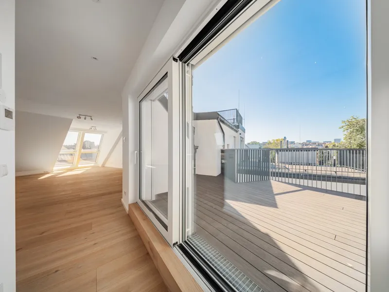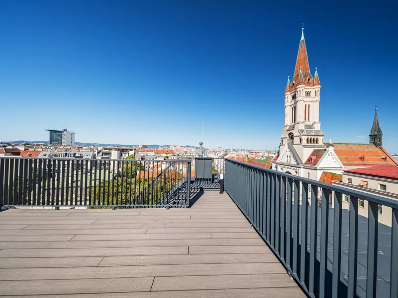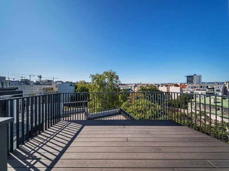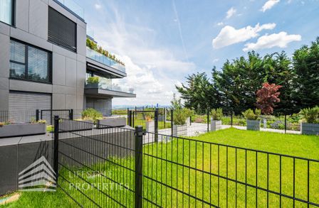 großen Garten, welcher Sie um die gesamte Wohnung führt. Hier haben Sie einen atemberaubenden Fernblick auf Wien.