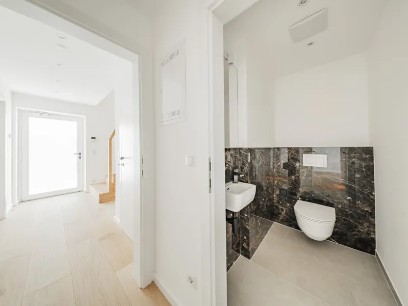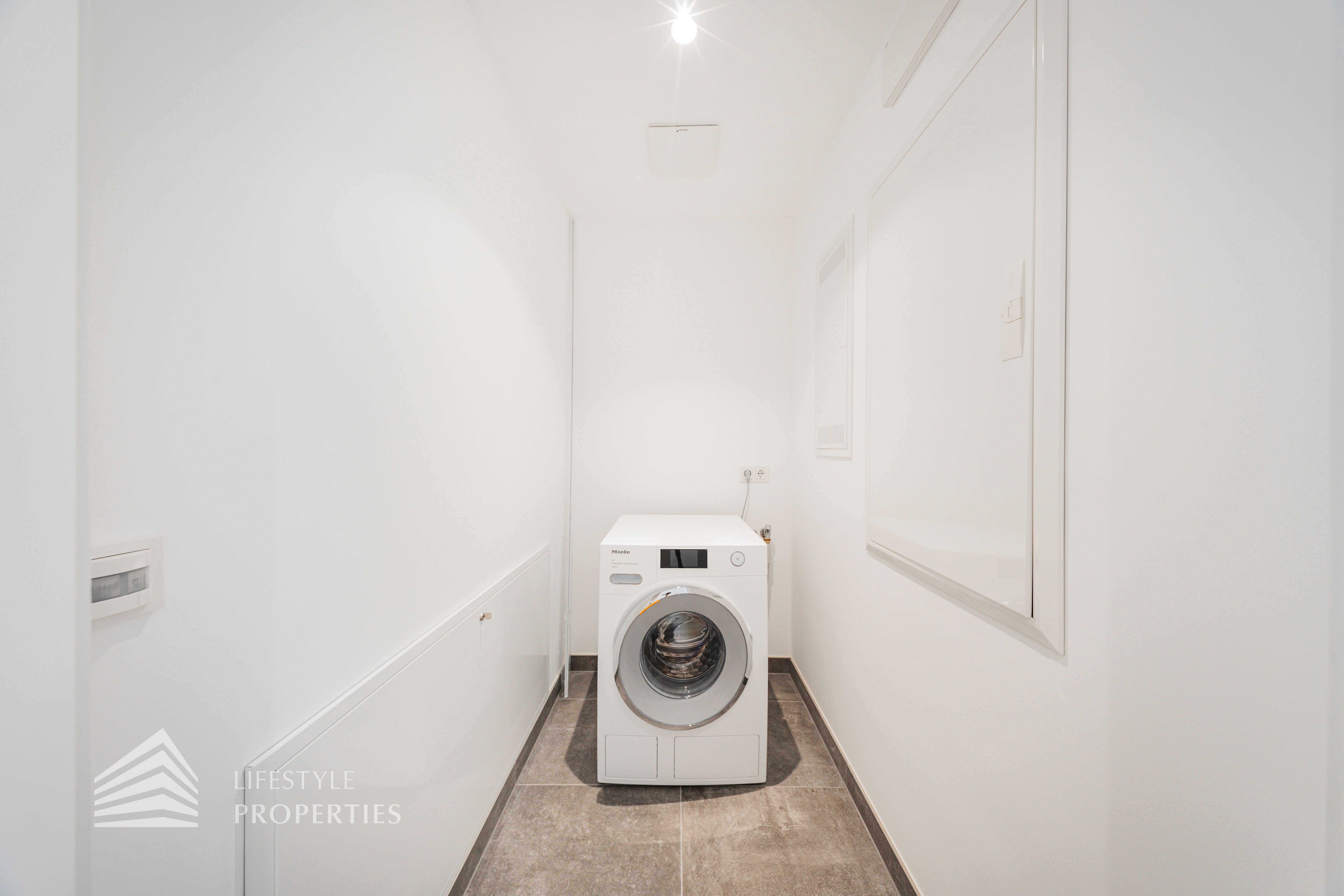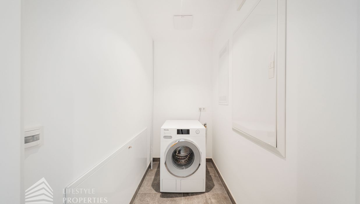 Über den Vorraum gelangt man in das zweite Badezimmer, den Abstellraum mit Waschmaschinenanschluss und ein weiteres WC.