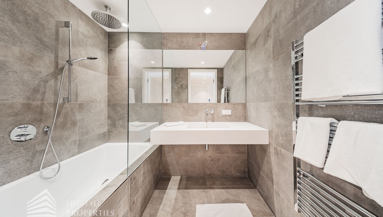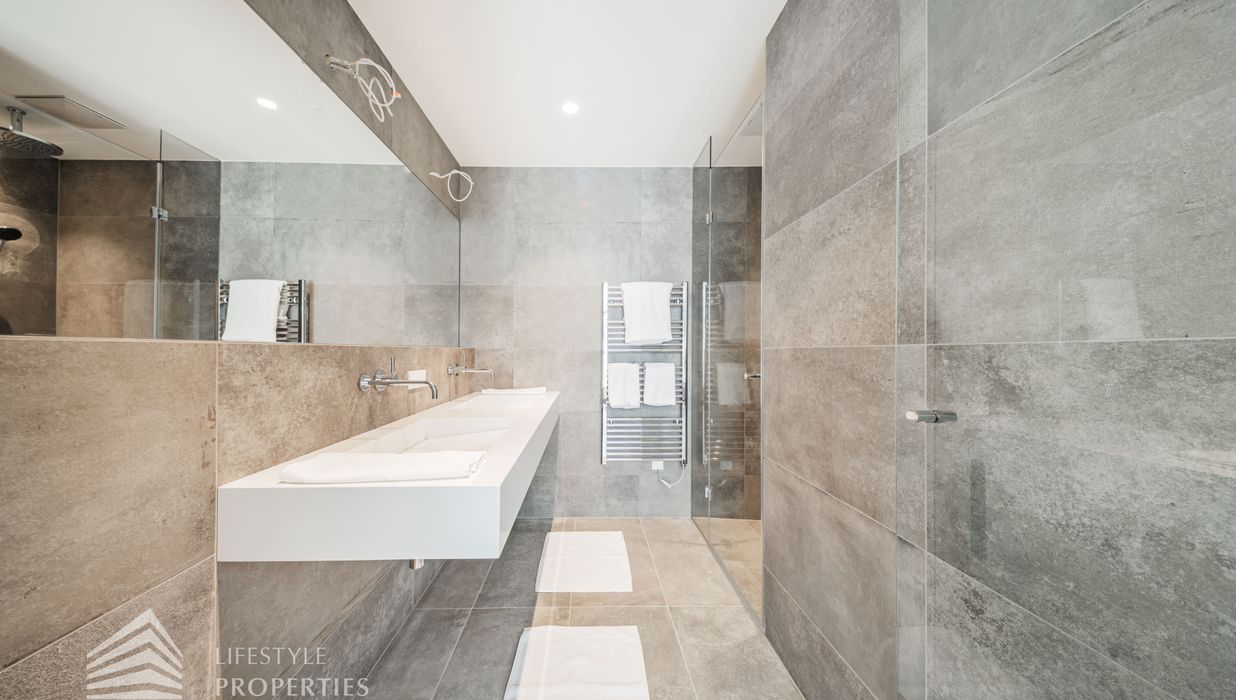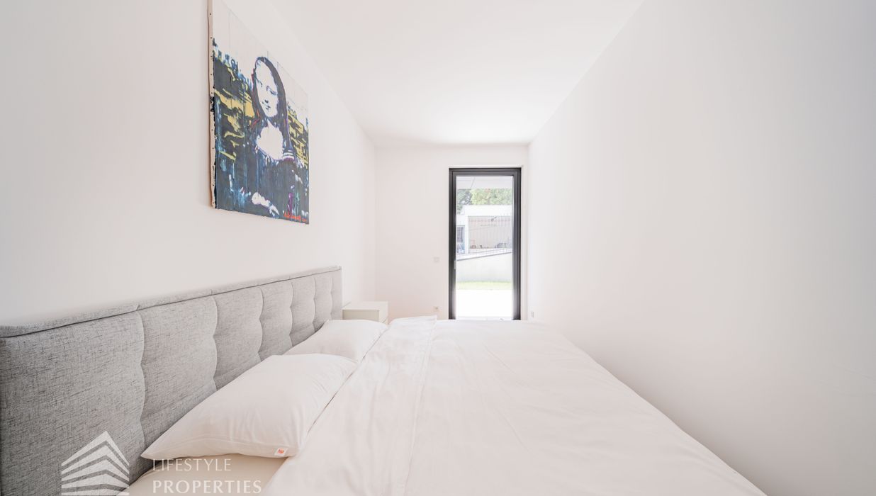 Linkerhand vom Eingangsbereich gelangen Sie in die privaten Räumlichkeiten. Hier befinden sich zwei kleinere Schlafzimmer, welche wunderbar als Kinder-, Gäste- oder Arbeitszimmer genutzt werden können, aber auch das Masterbedroom mit einem Ensuite Badezimmer und einem separatem WC. Dank der Terrassentüren in jedem Zimmer sind die Räume nicht nur unglaublich freundlich und hell, sondern man gelangt auch problemlos in den eigenen Garten.