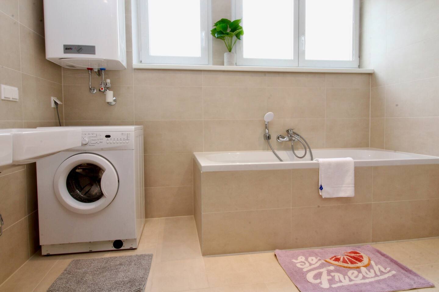 Auch die restlichen Zimmer der Wohnung sind mit viel Liebe zum Detail gestaltet. Hier finden Sie ebenfalls hochwertiges Parkett vor, das für ein angenehmes Wohngefühl sorgt. Das Badezimmer ist mit einer Badewanne und einem Fenster ausgestattet , was für ausreichend Tageslicht und Frischluft sorgt. Auch die Fliesen im Badezimmer sind modern und zeitlos gehalten.