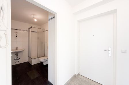 Vom Vorraum aus ist das Wohnzimmer sowie das Badezimmer begehbar.