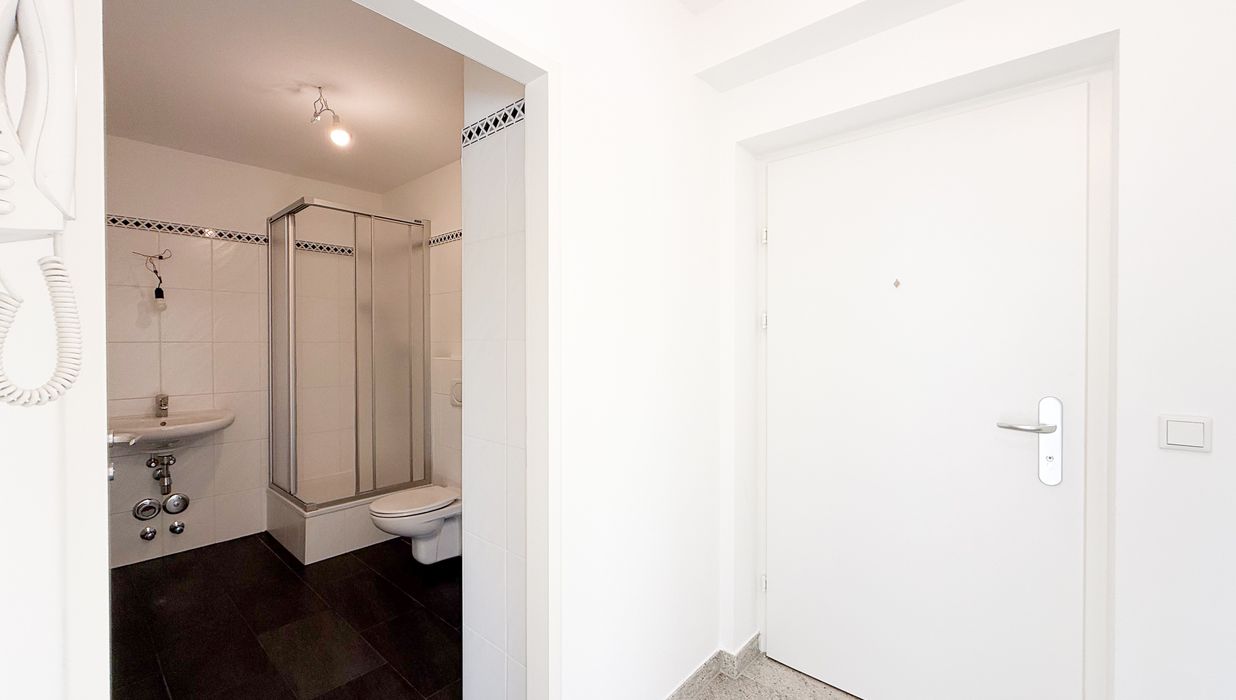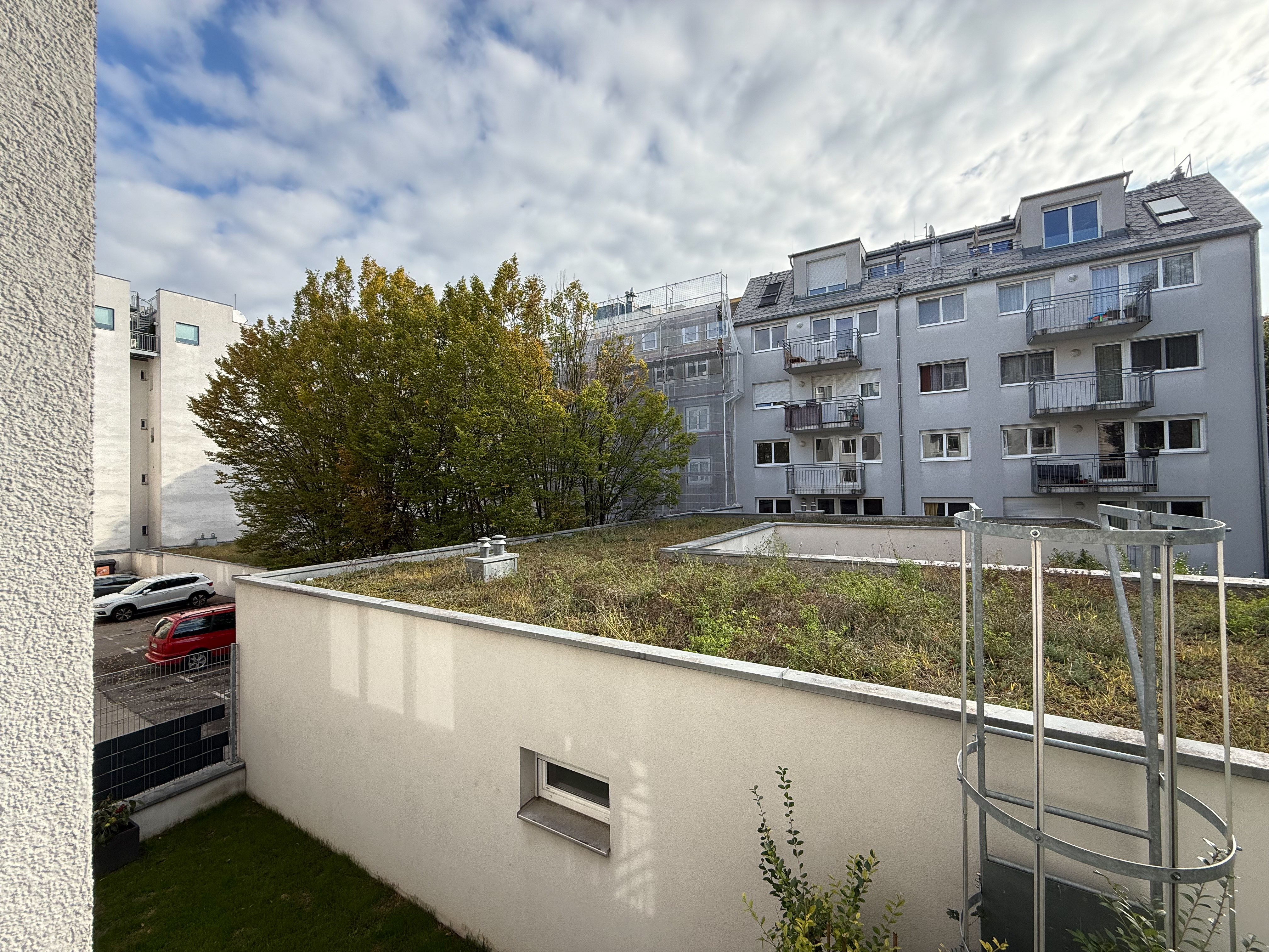 Die Wohnung liegt im 1.Obergeschoß eines 2008 errichteten Neubaus mit glatter Fassade und Personenaufzug.