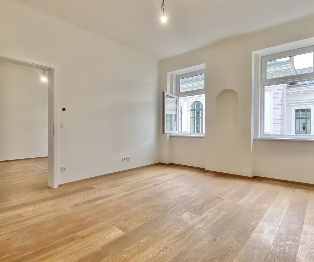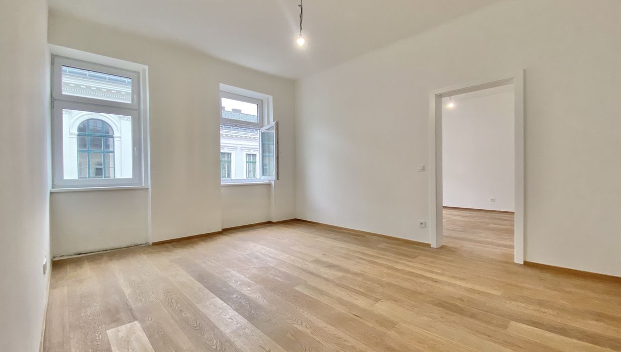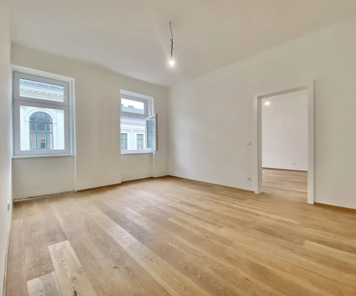 Die neu sanierte Altbauwohnung im 3. Liftstock, deren Fertigstellung kurz bevorsteht, verbindet auf ca. 98 m² klassischen Wiener Altbaustil mit zukunftsweisender Technik – ausgestattet mit einer Luftwärmepumpe und Fußbodenheizung, erwartet Sie hier ein komfortabler Erstbezug nach Kernsanierung.