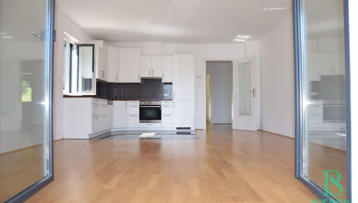 Im Erdgeschoss befindet sich diese ca. 85m² große 3-Zimmerwohnung mit 2 Terrassen. Über den Vorraum sind alle Räume getrennt zu begehen. Das große, helle und sonnige Wohnzimmer mit eleganter Küche und Ausgang zur Ost-Terrasse, ein Bad mit Wanne, Doppelwaschtisch, WM-Anschluß, ein Zimmer mit Ausgang auf die West-Terrasse, ein weiteres Zimmer und ein Duschbad mit WC sind Bestandteil der Wohnung.