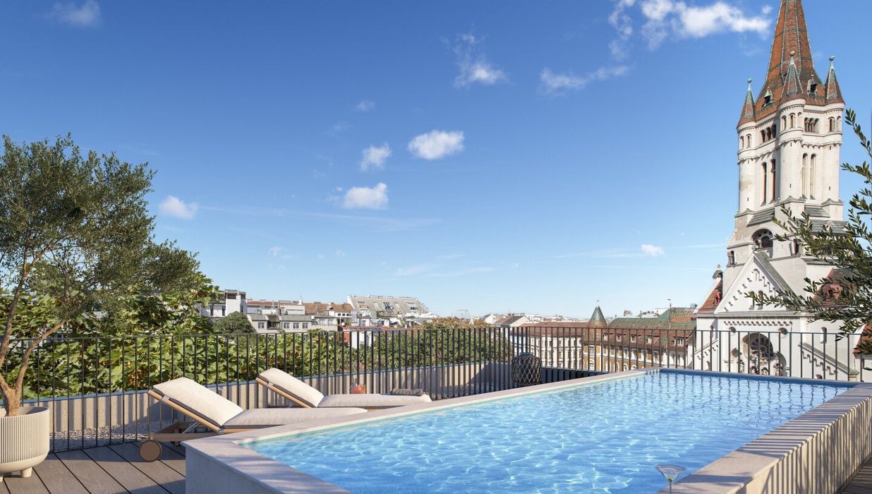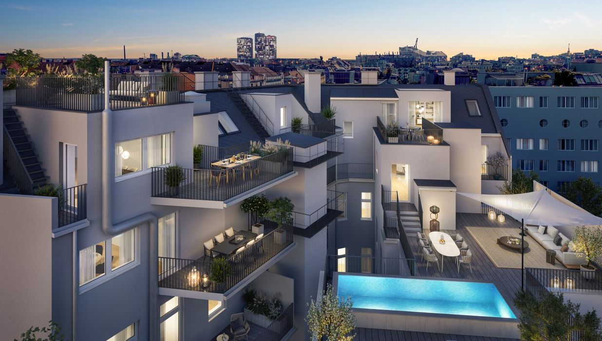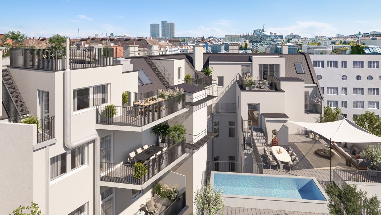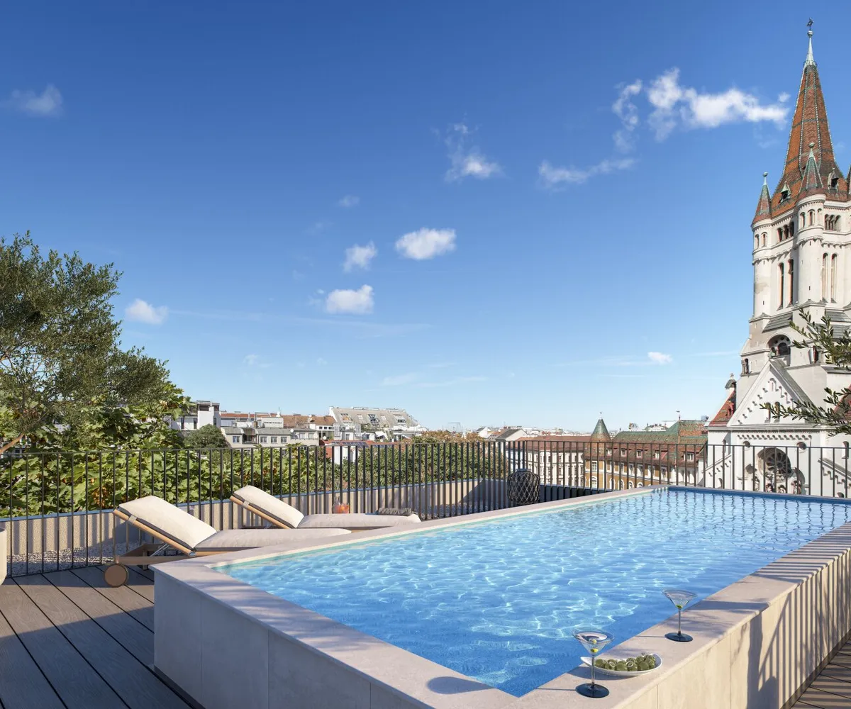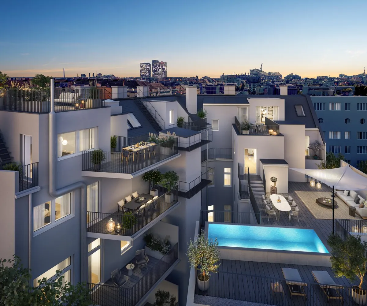 Im Herzen Wiens, wo Geschichte auf Exklusivität trifft, definiert The Legacy das ultimative Wohngefühl neu. Hoch über den Dächern von Wien präsentiert sich das Penthouse von The Legacy als der Inbegriff von Luxus und Exklusivität. Mit einer Wohnfläche von 195 m² und vier großzügig gestalteten Räumen setzt es architektonische und stilistische Maßstäbe. Ein privater Aufzug führt Sie direkt in den eleganten Wohnbereich. Der Master Bedroom, ein Refugium der Ruhe, überzeugt mit Ankleide und Bad en Suite. Technologische Höhepunkte wie das Smart-Home-System und die Split-Klimaanlage vereinen sich mit zeitlosem Design. Doch das wahre Highlight sind die drei Terrassen und der private Pool, welche auf exklusive Weise zum Relaxen und Ruhe suchen einladen. In The Legacy erlebt man Wohnkultur auf höchstem Niveau.