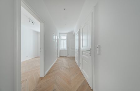 Die Residenzen in den 5 Regelgeschoßen von The Legacy sind ein lebendiges Denkmal der harmonischen Verschmelzung von Wiens prachtvoller Geschichte mit zeitgenössischer Eleganz. Im geschichtsträchtigen Eckhaus der Landstraßer Hauptstraße 144 verbindet jedes Zuhause das Gefühl der Großzügigkeit mit feinster handwerklicher Qualität. Das edle Fischgrätparkett aus Eiche bildet dabei das Fundament für diese außergewöhnliche Wohnatmosphäre. Unter den hohen, kunstvoll verzierten Decken spürt man die Seele des Hauses, die durch die gekonnte Renovierung bewahrt und in die Jetztzeit gehoben wurde. Leben Sie in einem historischen Ambiente, ergänzt durch modernste Annehmlichkeiten, und genießen Sie den Rhythmus der Stadt von Ihrem privaten Balkon oder Garten aus – eine einmalige Kombination von Eleganz und Komfort im Herzen des dritten Bezirks.