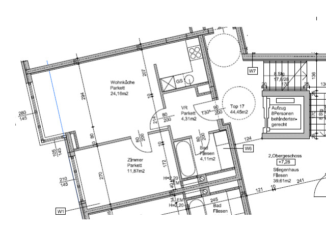 Hochwertiger Parkettboden in den Wohnräumen, Fliesen in den Nassräumen